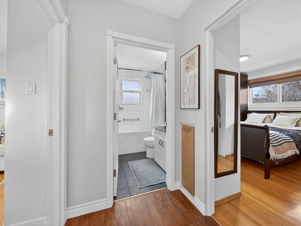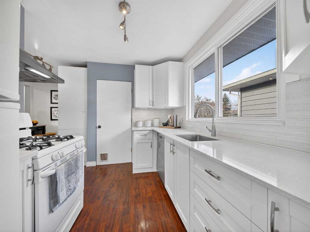 Renovated bungalow perfectly positioned on a sunny corner lot with alley access and picturesque park views. This home blends timeless charm with modern updates, offering versatility for families, investors, or those seeking additional income potential. The main floor features rich hardwood flooring, two spacious bedrooms plus a dedicated office, and a stylish 4-piece bathroom. The renovated kitchen is both functional and elegant, complete with quartz countertops, a gas stove, and ample cabinetry — ideal for everyday living and entertaining. A cozy wood-burning fireplace anchors the living space, adding warmth and character. Step outside to enjoy the brand-new front porch overlooking the park — the perfect spot for morning coffee. The property also includes a detached single-car garage with convenient alley access. Downstairs, the fully LEGAL basement suite offers a separate entrance, providing excellent rental potential or private space for extended family. An exceptional opportunity in a sought-after NW location.
