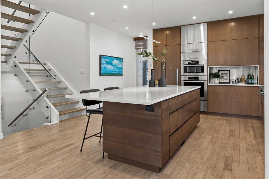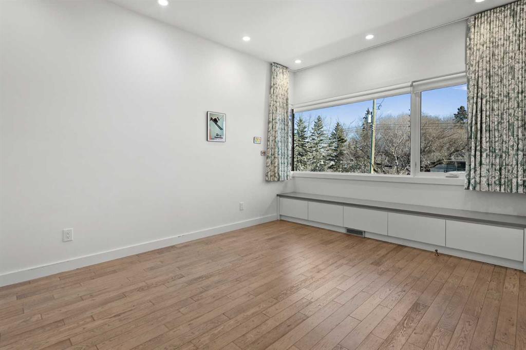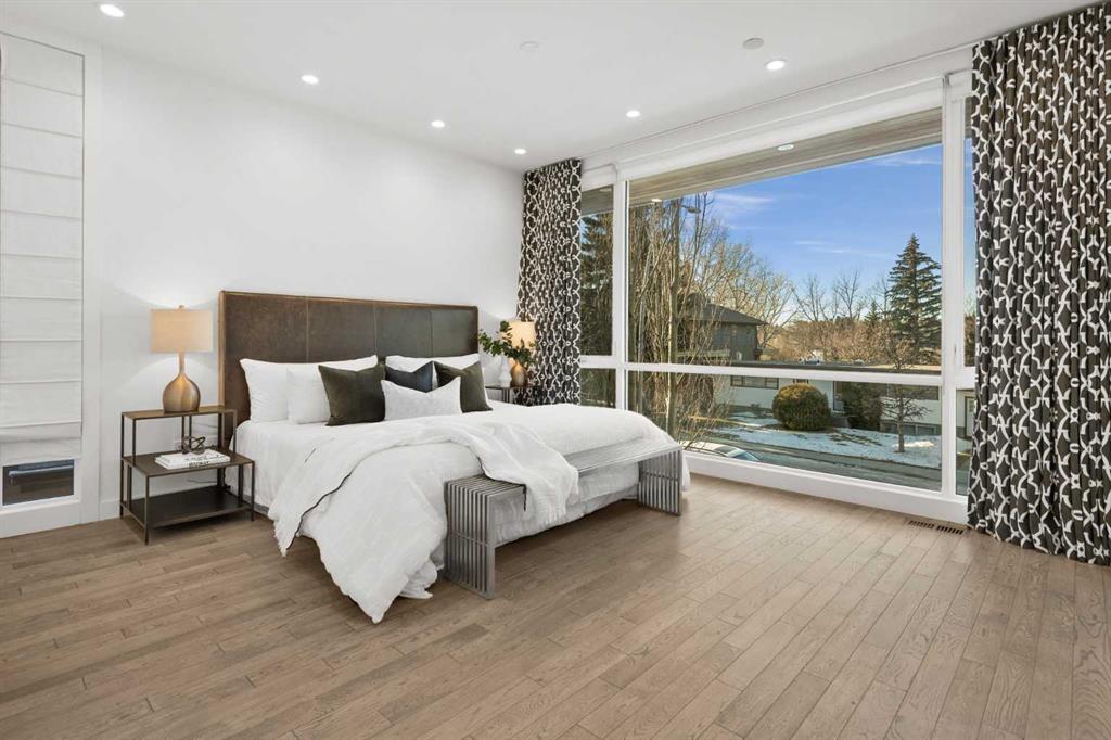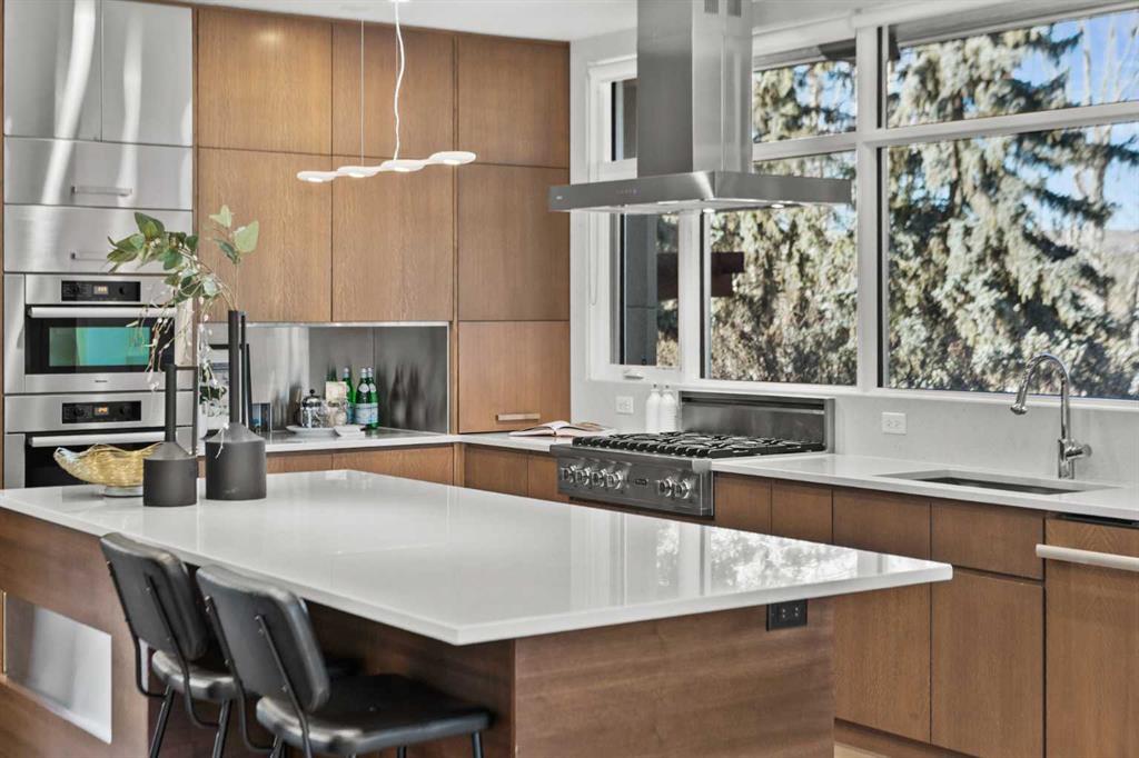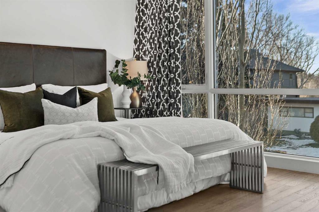 This custom Alloy architectural masterpiece offers over 4,500 sqft of thoughtfully designed living space on a prime 50’ x 120’ inner-city lot in the highly desirable community of Mount Pleasant. The home is ideally positioned at the end of a quiet street with west-facing views overlooking Confederation Park. Designed for both everyday living and elevated entertaining, the home blends exceptional architecture, premium construction, and seamless indoor–outdoor flow. The main level features an open-concept layout with 9’ ceilings, floor-to-ceiling windows, and expansive glazing that floods the living, dining, and kitchen spaces with natural light. A spectacular chef’s kitchen anchors the home, showcasing custom solid wood quarter-sawn cabinetry to the ceiling, Caesarstone backsplash and countertops, a large central island with seating for four, Viking 6-burner gas range, and Miele built-in appliances, complemented by a dedicated coffee station with filtered water hookup. The formal dining area opens to outdoor living spaces through two sets of French doors, while the great room is highlighted by custom built-ins and a double-sided gas fireplace with floating hearth and tile feature wall. A private home office or library overlooks Confederation Park and includes extensive built-ins and lockable file cabinetry. The main level is completed by a thoughtfully insulated powder room, generous storage, a functional mudroom with lockers and exterior-vented closet, and an oversized walk-in pantry with stand-up freezer and wine fridge provision. Upstairs, the primary retreat offers stunning park views, his-and-hers walk-in closets, and a spa-inspired ensuite fully tiled throughout, featuring heated floors, a glass-enclosed walk-in shower, double vanity, heated towel rack, and a four-person cedar sauna. Two additional bedrooms include window seats with storage and custom closets, while a large bonus room with built-in desk offers flexibility as a media space, homework hub, or future bedroom. Upper-level laundry, heated bathroom floors, and rockwool sound insulation enhance comfort and privacy. The lower level is equally impressive, with a large media room with surround sound, dedicated fitness room, large flex space, stand-alone gas fireplace, cork flooring with in-floor hydronic heating, oversized fourth bedroom, full bath, and a generous mechanical/storage room with integrated A/V tower. Outdoor living is exceptional with nearly 700 sqft of poured concrete patio space on piles, 2 natural gas hook-ups, outdoor speakers, mature trees, professional landscaping, a multi-zone irrigation system, and a children’s play structure (convertible to additional parking). Completing the property is a detached heated triple garage, built-in storage, workbench, EV-ready electrical panel, A/V connectivity, underground conduit, and a paved back lane. A rare offering combining architectural integrity, park-side living, and enduring quality.