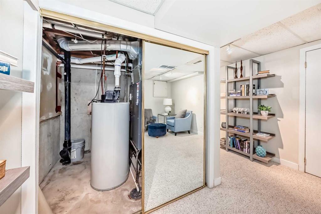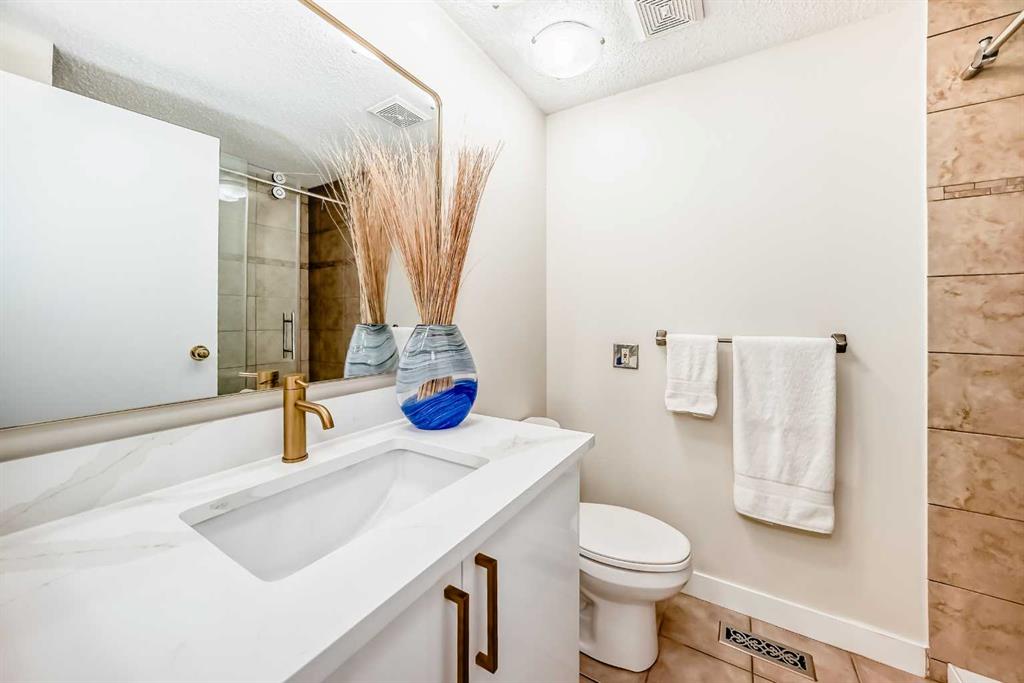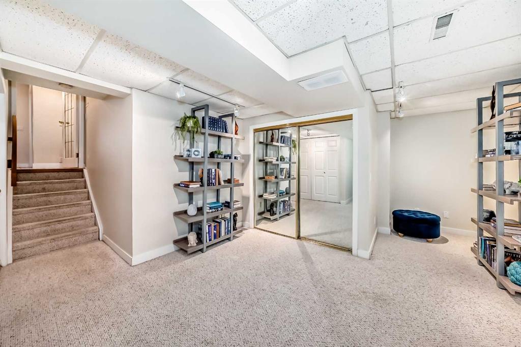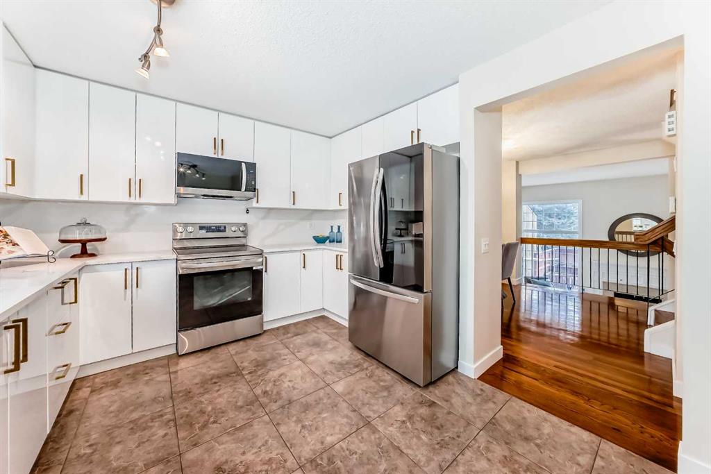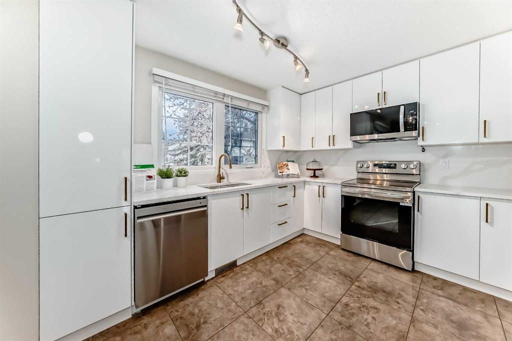 Warm elegance and natural light infuse this gorgeous Point McKay townhome with sunshine and style. Featuring beautiful design and tasteful renovations, this stunning, move-in-ready home is sure to impress. A spacious foyer invites you inside, shared with the entry from the single-attached garage. As you step into the living room, full-height windows face east give the area an extraordinarily bright and airy feel. The original wood fireplace was sealed, yet it remains a cozy decorative focal point. Glass-paned doors step out to the deck, merging your indoor and outdoor living spaces. As the vaulted ceilings draw your eye up, the open architecture and wood railings evoke loft vibes as you head to the dining area, giving you a bird’s eye view of the entire level. Updated lighting elevates the aesthetic, and rich-toned hardwood adds depth. In the remodelled kitchen, sleek white cabinetry and quartz counters pair with new stainless steel appliances and chic gold accents for an upscale ambiance sure to inspire your culinary ideas. A breakfast nook has west-facing windows that take in the sunset skies. The powder room was refreshed in the same high-end materials as the kitchen. Upstairs, the primary retreat is peaceful and generously appointed. Dual closets are ideal for a couple, and the ensuite has been luxuriously redone. Quartz and gold in the vanity, and attractive tilework in the shower bring the sophisticated tone into your personal space. This storey includes two more large bedrooms, and the main bathroom has also had a makeover. Downstairs, the finished basement is great for your library, home gym, or office. In a clever use of space, one closet holds the new laundry machines, one has cold storage, and the third has a tidy utility area. Outside, the deck offers plenty of room to grill, dine, and lounge, and the paved yard is set with raised planters, making it both low-maintenance and lush during the growing season. The gate opens into a green space edged with mature trees, and the local tennis courts. The river pathway is also in sight, providing a setting for your active lifestyle right at your doorstep. Cyclists can be downtown in about the same time as car commuters, which isn’t long,g as this area is quite central. The community attracts medical professionals and educators due to the proximity to both Foothills and the Children’s Hospital, as well as the University of Calgary. Nearby amenities include the Riverside Club and Riverside Spa; within walking distanc,e you can also head to some area favourite eateries, like the Lazy Loaf and Kettle or LICS Ice Cream. Trendy Kensington is only a short drive for some of the top restaurants in Calgary, and primary routes give you easy access to any area of the city. Plus, the location of this neighbourhood also gives you a quick escape should you want to head west into the mountains for camping, hiking, and snow sports.