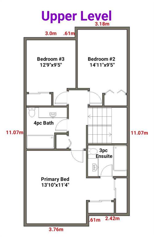 | 3pc Ensuite bath | Upper | |