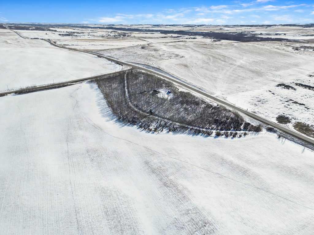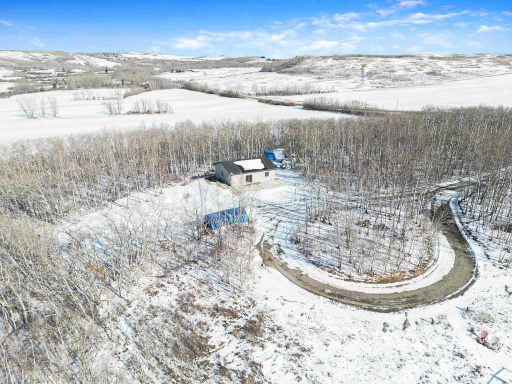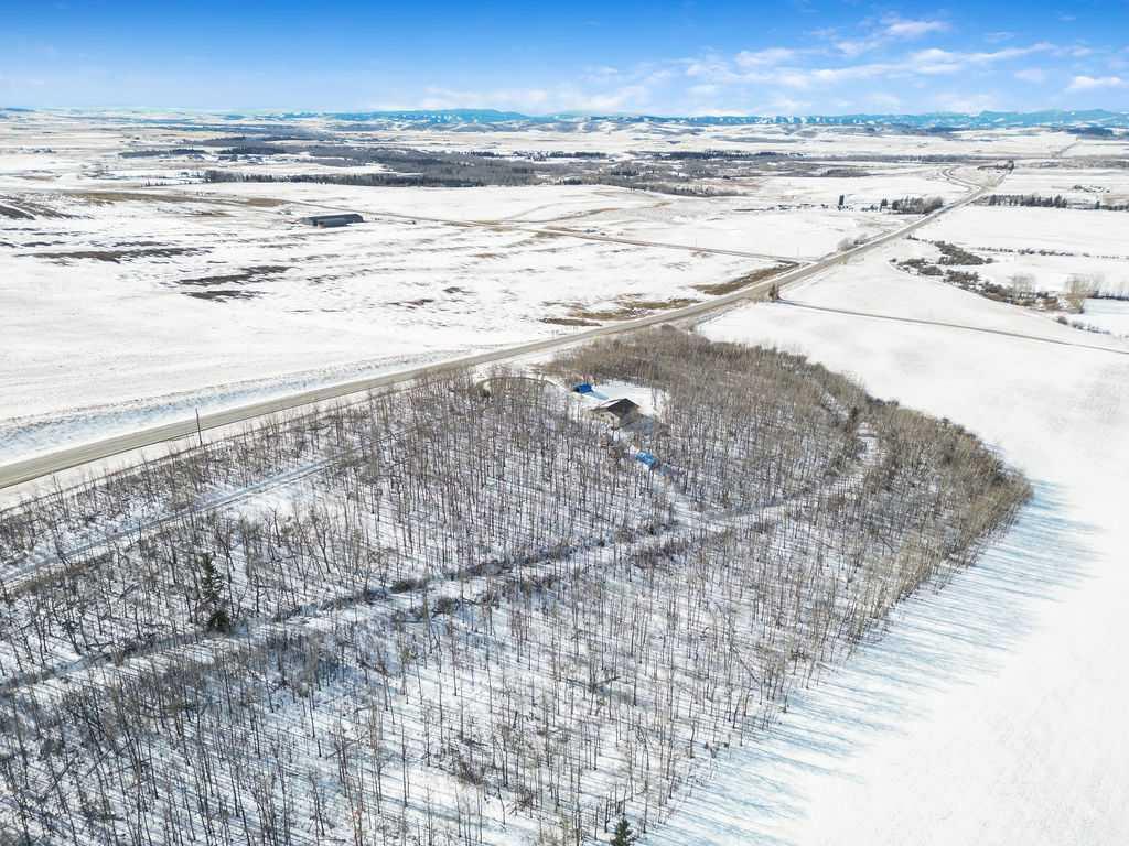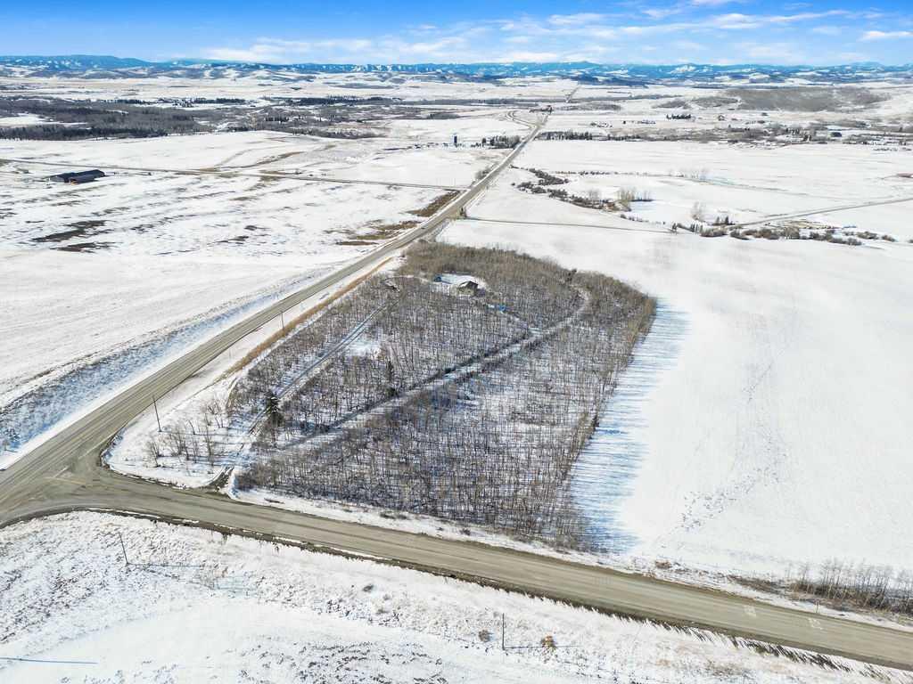 Discover an extraordinary opportunity to own 15.86 acres of incredible privacy, tucked away in the forest yet showcasing some of the prettiest Rocky Mountain views Alberta has to offer. Located just a short drive to both Okotoks and Calgary, this property offers the perfect balance of seclusion and convenience. Enter through the treelined circular driveway and feel the world slow down. The land is a beautiful blend of mature trees and open clearings, complete with walking paths that invite you to explore your own private retreat. Whether you envision quiet mornings with coffee overlooking the mountains or evenings spent watching wildlife wander through, this setting is truly special. The existing home was originally intended to become a triple car garage once a larger dream home was built. Today, it fully functions as comfortable living quarters featuring a full kitchen, full bathroom, living room and bedroom. There is also the potential for a second bedroom by converting the current storage area. In floor heat runs throughout, and the home includes a washer and dryer for everyday convenience. One of the most attractive aspects of this property is that it is ready for your future plans. The septic tank and field are already installed, the well is connected to the current home, and a propane tank is in place should you wish to continue using it for heat or explore bringing in natural gas. Much of the groundwork has been completed, making the process of building your dream home that much easier. This property would make an incredible weekend getaway, a peaceful full time residence for a single person or couple, or a spectacular canvas for a custom estate home surrounded by nature. If privacy, natural beauty and proximity to the city are high on your list, opportunities like this are rare.