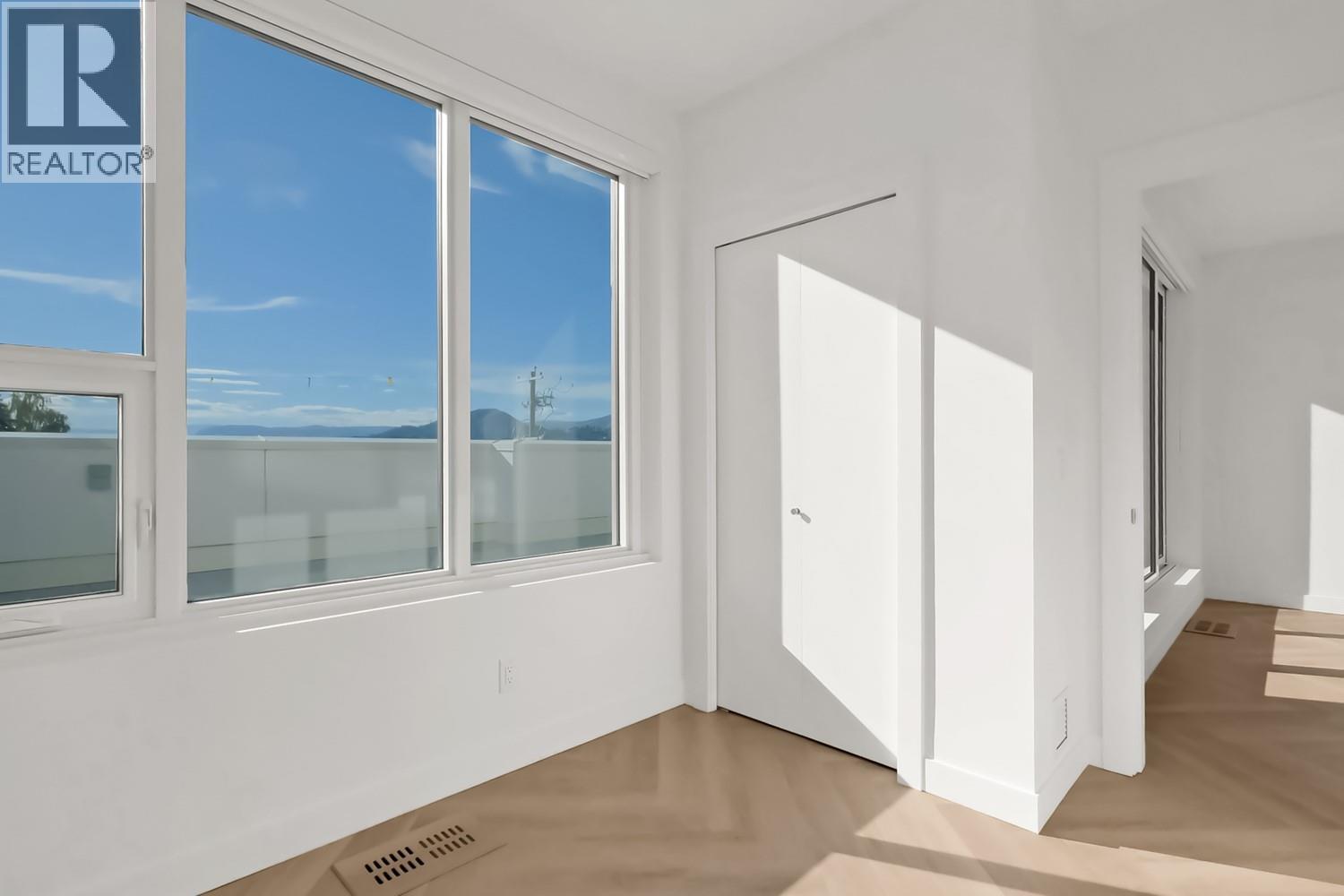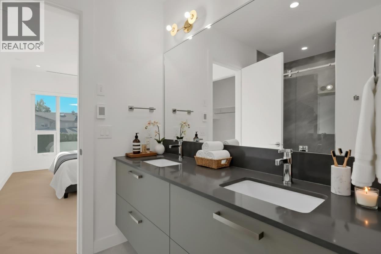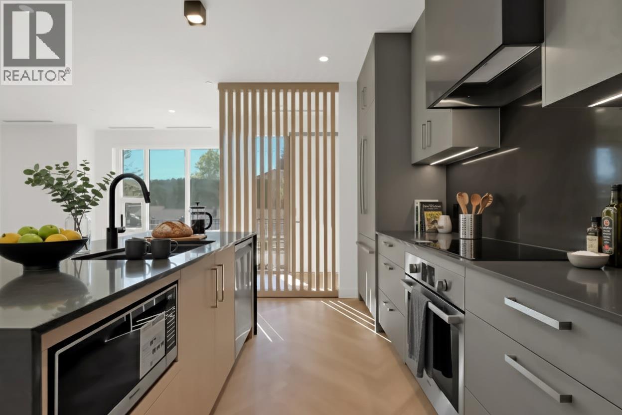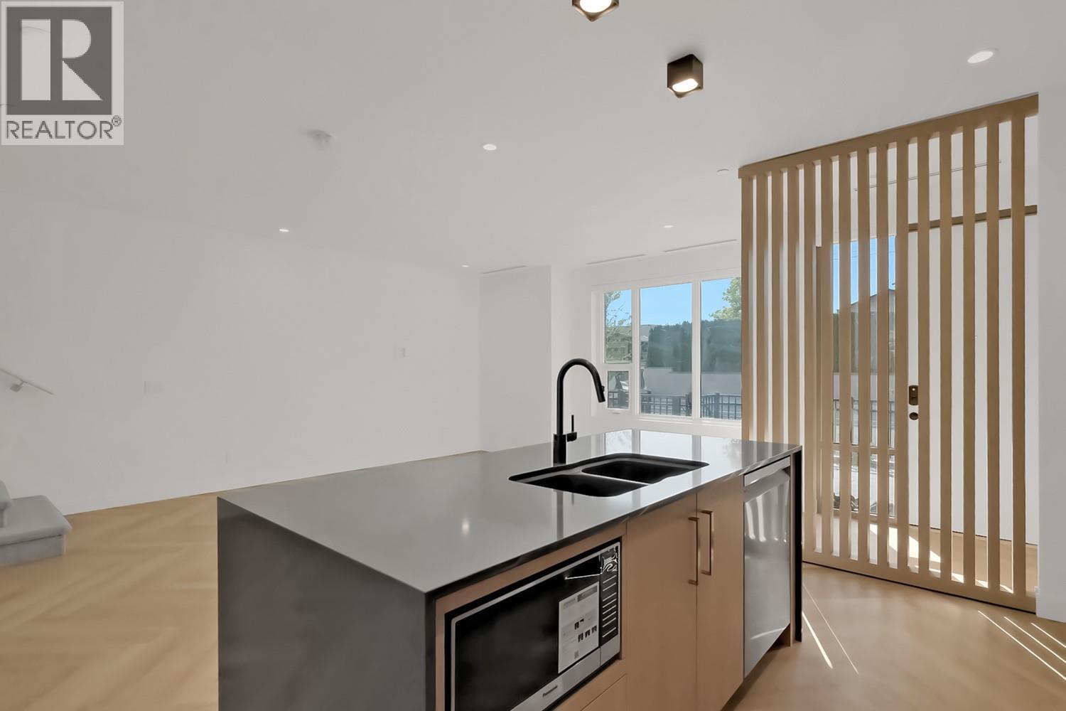 Luxury & Sophistication at Movala – Experience the pinnacle of modern living in this stunning 1,959 sq ft, 3 bedroom, 2.5 bathroom townhome nestled beside Kelowna’s beloved Gyro Beach. Every detail has been thoughtfully designed, from the herringbone hardwood floors and Hunter Douglas remote blinds to the soaring 9-foot ceilings and expansive outdoor balconies. The gourmet kitchen showcases modern flat chelsea grey cabinetry with brushed nickel hardware, quartz countertops with a waterfall edge island, premium appliance package including an induction cooktop, convection wall oven and a built-in beverage centre including a wine fridge. Bathrooms offer a spa-like retreat with polished porcelain tile showers, heated ensuite floors, elegant undermount sinks, and refined finishes. Enjoy the expansive private 3rd-floor terrace featuring breathtaking lake and mountain views, wired for a hot tub. The home comes with 2 secure parking stalls and a storage locker. Movala offers unmatched resort-style amenities, including a pool, hot tub, cabanas, fire bowls, outdoor dining and BBQs, plus indoor luxuries like a fitness centre, yoga studio, games lounge, library, private dining, work hubs, guest suites, and more. Located in the vibrant South Pandosy neighbourhood, this home offers incredible walkability to restaurants, shops, and all of life’s essentials – the perfect blend of sophistication, functionality, and timeless elegance.