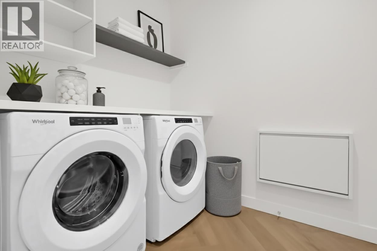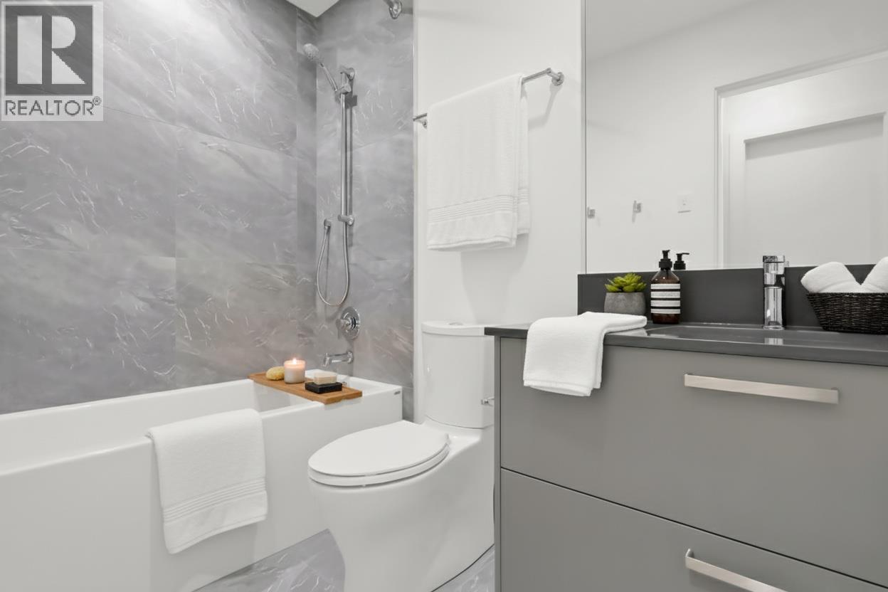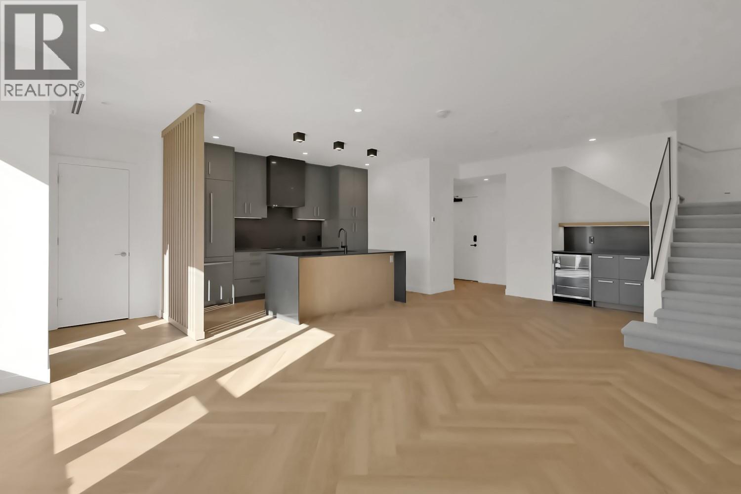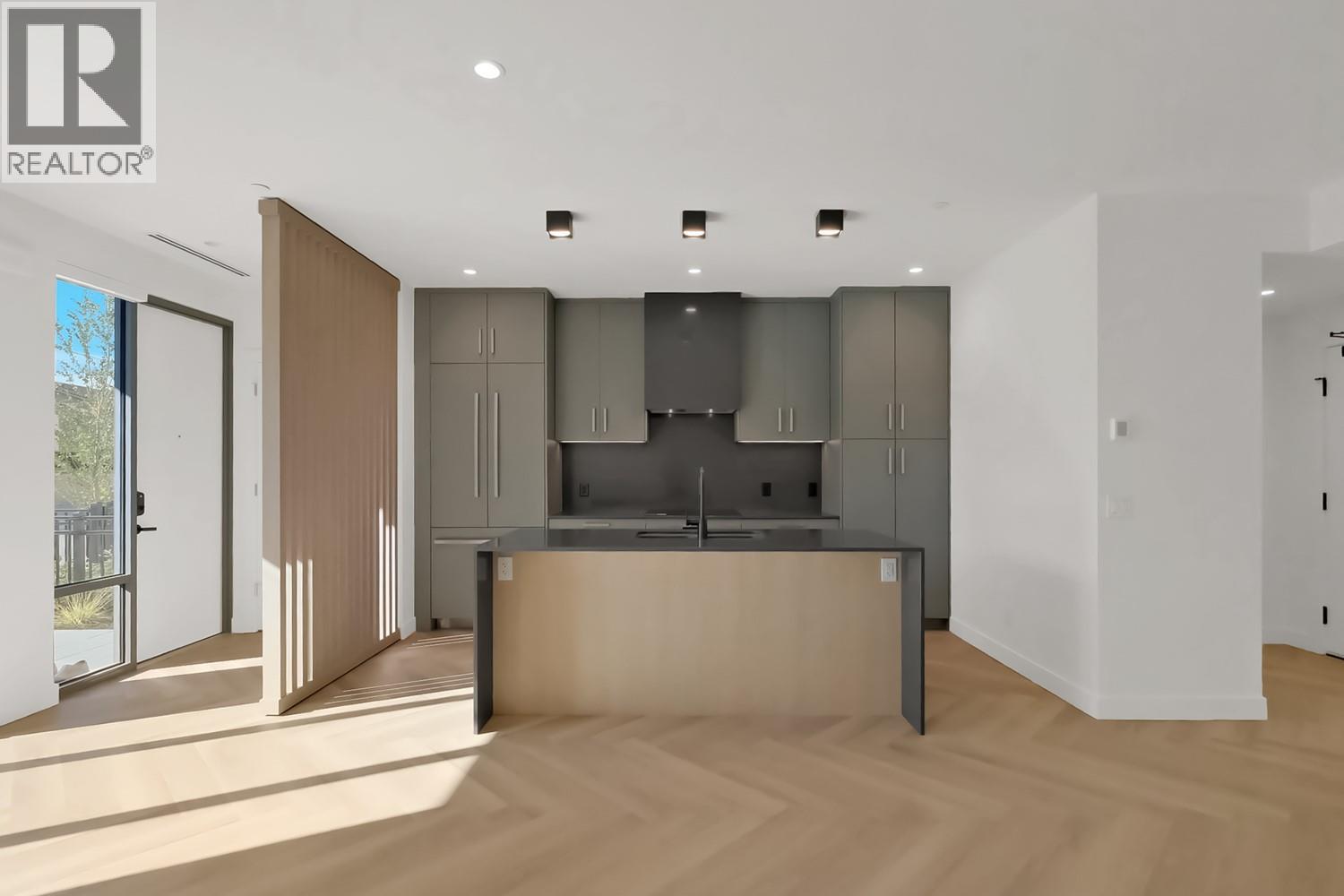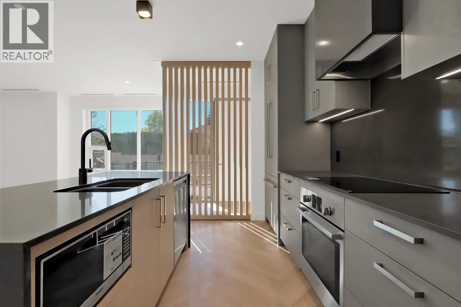 Luxury & Sophistication at Movala – Experience the pinnacle of modern living in this stunning 1,959 sq ft, 3 bedroom, 2.5 bathroom townhome nestled beside Kelowna’s beloved Gyro Beach. Every detail has been thoughtfully designed, from the herringbone hardwood floors and Hunter Douglas remote blinds to the soaring 9-foot ceilings and expansive outdoor balconies. The gourmet kitchen showcases modern flat chelsea grey cabinetry with brushed nickel hardware, quartz countertops with a waterfall edge island, premium appliance package including an induction cooktop, convection wall oven and a built-in beverage centre including a wine fridge. Bathrooms offer a spa-like retreat with polished porcelain tile showers, heated ensuite floors, elegant undermount sinks, and refined finishes. Enjoy the expansive private 3rd-floor terrace featuring breathtaking lake and mountain views, wired for a hot tub. The home comes with 2 secure parking stalls and a storage locker. Movala offers unmatched resort-style amenities, including a pool, hot tub, cabanas, fire bowls, outdoor dining and BBQs, plus indoor luxuries like a fitness centre, yoga studio, games lounge, library, private dining, work hubs, guest suites, and more. Located in the vibrant South Pandosy neighbourhood, this home offers incredible walkability to restaurants, shops, and all of life’s essentials – the perfect blend of sophistication, functionality, and timeless elegance.