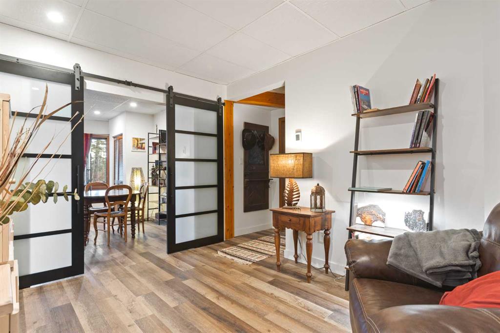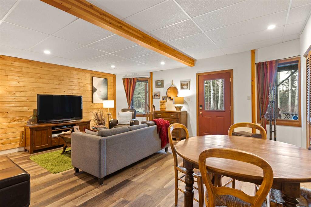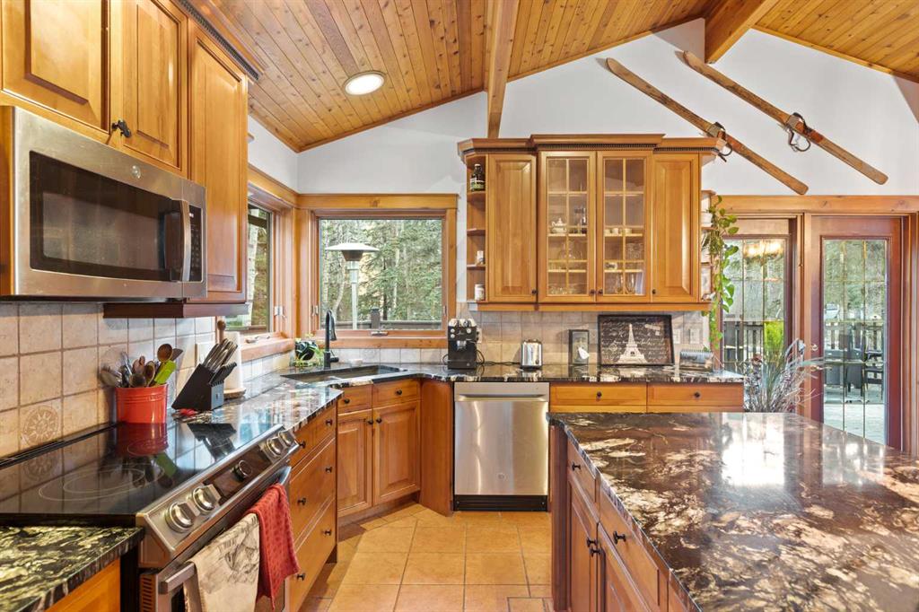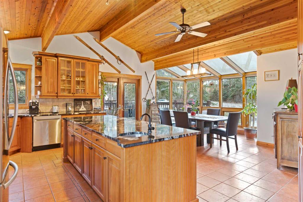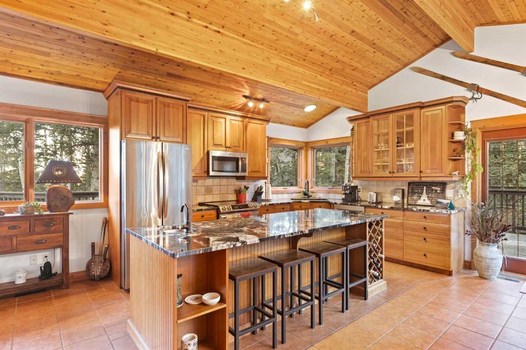 This half-acre walkout estate sits in the quiet hamlet of Lac des Arcs, framed by uninterrupted views of the Canadian Rockies. With over 3,400 sq ft of developed living space, it’s a warm, inviting mountain retreat built for comfort and connection to the outdoors. The bright open main floor features maple hardwood, vaulted ceilings, a welcoming living room with a custom river-rock fireplace, and a chef-inspired kitchen with cherry wood cabinetry and a massive 9-ft island. The attached solarium dining room offers incredible light and mountain views through its floor-to-ceiling windows. A spacious main-floor primary suite adds everyday convenience with its own 4-piece ensuite, generous windows, and nearby laundry. Upstairs, a second large primary suite includes a walk-in closet, full ensuite, and access to a broad balcony shared with the loft. The fully developed walkout level is ideal for guests, teens, or multigenerational living, complete with a second kitchen, huge recreation room, two additional bedrooms, a full bath, and plenty of storage. Enjoy the scenery from nearly every room or step onto the wrap-around deck with multiple access points. All of this sits steps from trails, climbing, the Bow River, and Grotto Canyon, with Canmore only 10–15 minutes away. A rare blend of space, privacy, and true mountain living.