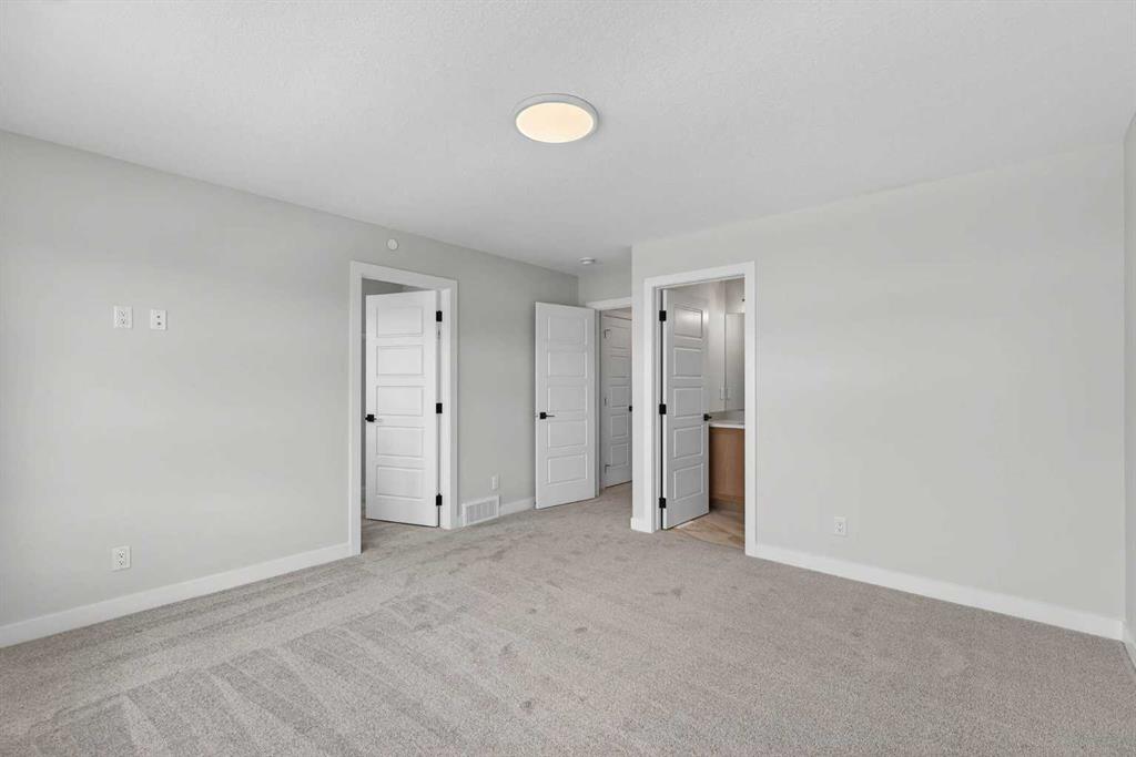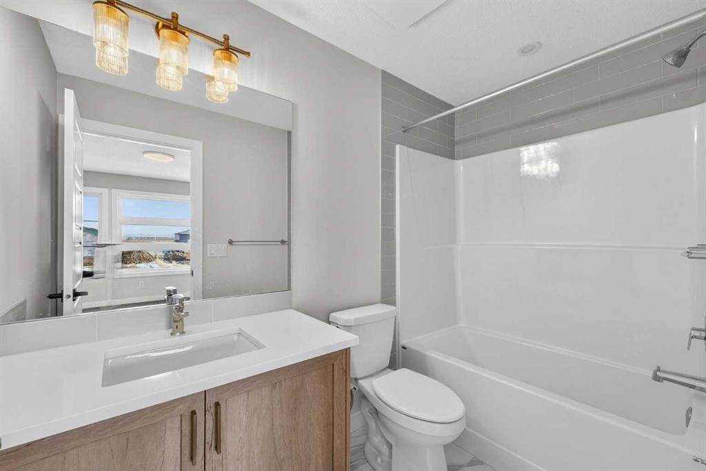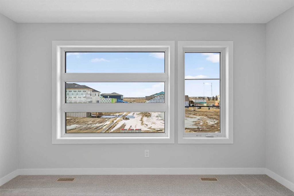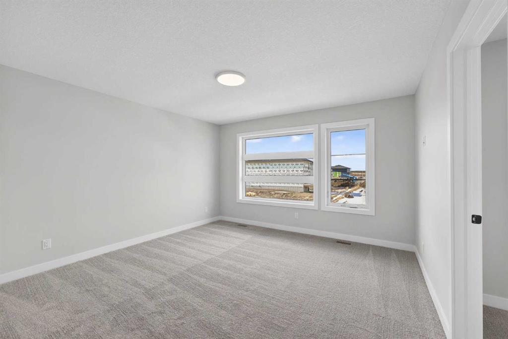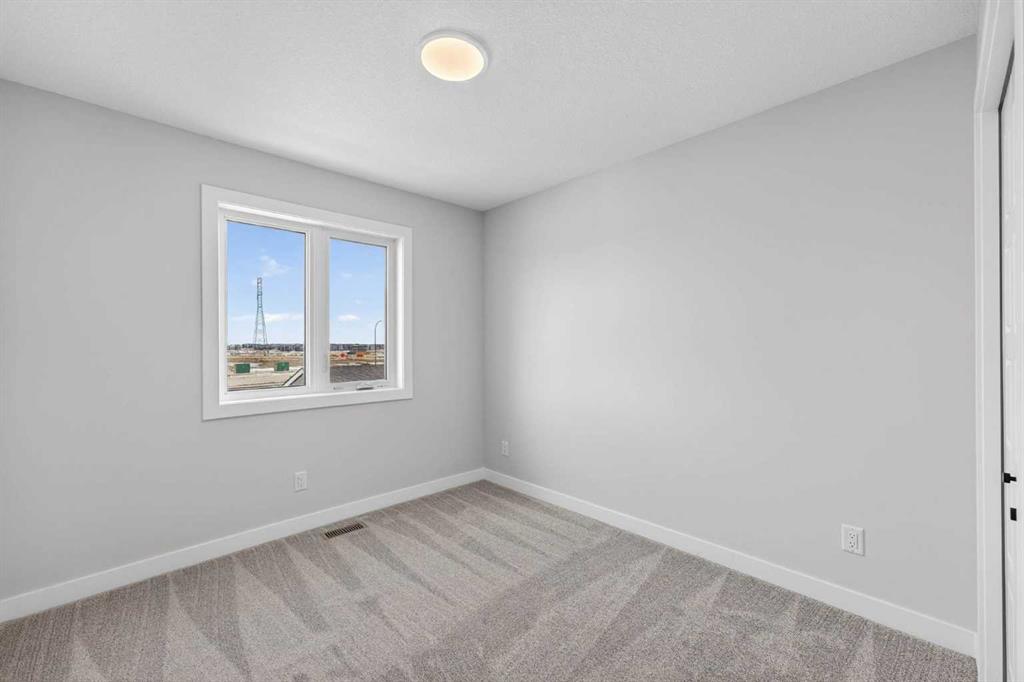Welcome to the Concord II by Broadview Homes in the growing southeast Calgary community of Hotchkiss. Offering 1,780 square feet above grade, this thoughtfully designed new home features 3 bedrooms, a central upper loft, an enclosed main floor flex room, and a separate side entrance with basement rough-ins for future development. A larger front porch enhances the curb appeal and provides a welcoming outdoor space at the front of the home, while a rear deck extends the living space outdoors. The main floor is designed for both functionality and flow. At the front of the home, the enclosed flex room offers a private and versatile space ideal for a home office, study, or quiet retreat. The kitchen anchors the open concept living area and features an island, built-in pantry cabinetry, and a stainless steel appliance package including a gas range, fridge, built-in microwave, and hood fan. The dining area connects directly to the great room, where an electric fireplace with floor to ceiling tile creates a striking focal point. Large windows bring natural light into the space while maintaining a comfortable connection between the kitchen, dining, and living areas, with easy access to the deck at the back of the home. Upstairs, the centrally located loft provides flexible living space that can function as a media area, lounge, or workspace. The upper floor also includes two additional bedrooms, a full bathroom, convenient upper floor laundry, and a linen closet for additional storage. The primary suite offers a walk-in closet and a well-appointed ensuite, creating a comfortable and private retreat. The basement includes rough-ins for future development and benefits from the separate side entrance, providing excellent potential to expand the living space over time. Located in Hotchkiss, residents enjoy access to scenic pathways, parks, and a planned 30-acre wetland designed to connect the community with nature. With convenient access to Stoney Trail and Highway 22X, Hotchkiss offers an easy commute to Seton, South Health Campus, the YMCA, and a wide range of shopping and amenities. This is an excellent opportunity to own a brand new Broadview home in one of southeast Calgary’s newest master planned communities.