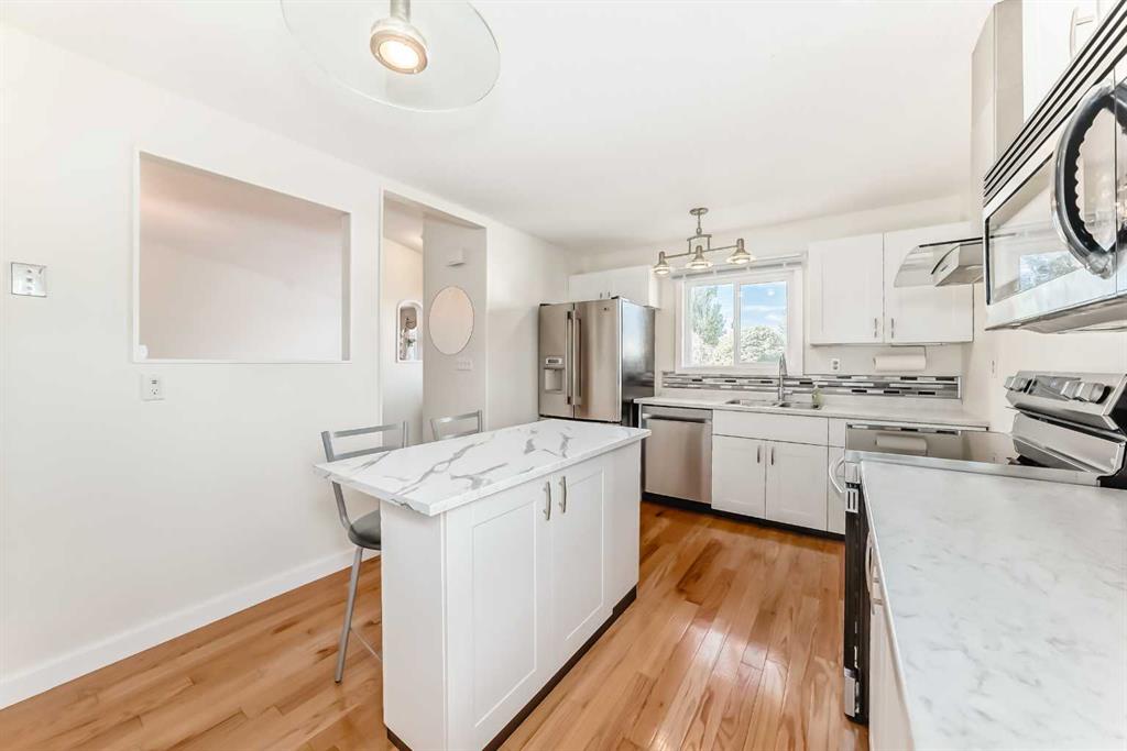 Tucked into one of Red Deer’s most welcoming, family-friendly neighbourhoods, is a beautifully updated four-level split with over 1,800 sq. ft. that radiates charm from the moment you arrive. Perched on an oversized corner lot, its classic lines, mature trees, and new siding create undeniable curb appeal—this is the kind of home that feels warm and familiar before you even step inside. Out front, an interlocking brick pad offers bonus parking in addition to the oversized, heated garage, while out back, a dedicated RV space and handy shed provide practical storage for all your gear. The fully fenced yard is a private retreat, wrapped in tall trees and anchored by a firepit—perfect for cozy evenings and weekend gatherings. Inside, freshly painted walls and refinished hardwood floors set a bright, welcoming tone. The vaulted ceiling in the living room adds volume and light, while the updated kitchen features stainless-steel appliances, sleek cabinetry, and a breakfast bar for those casual mornings. Upstairs, two peaceful bedrooms and a renovated bathroom offer comfort and style. The lower levels expand your living space with a generous rec room ready for movie nights, playtime or a home office, and adds even more space with a cozy family room and a practical mudroom/laundry area that keeps everything organized. A side deck offers a quiet spot to unwind, while the backyard is built for memory-making—whether it’s roasting marshmallows, chasing the dog, or hosting summer barbecues. With a newer roof and thoughtful updates throughout, this home blends character and reliability in equal measure. Located on a quiet, tree-lined street just minutes from schools, parks and shopping, 35 Ray Avenue in Rosedale Estates is more than a place to live—it’s a home that welcomes you in and makes you want to stay.