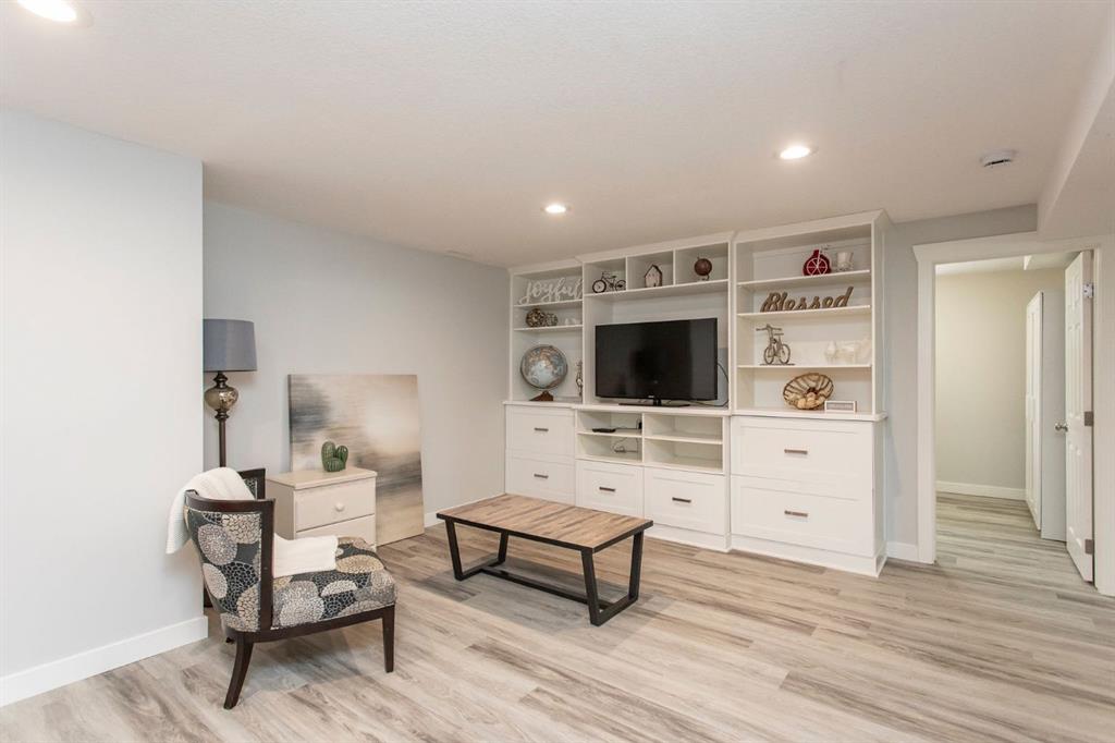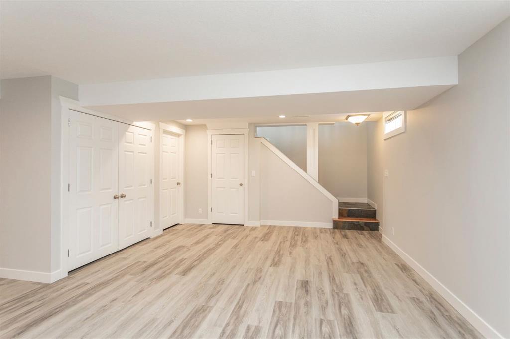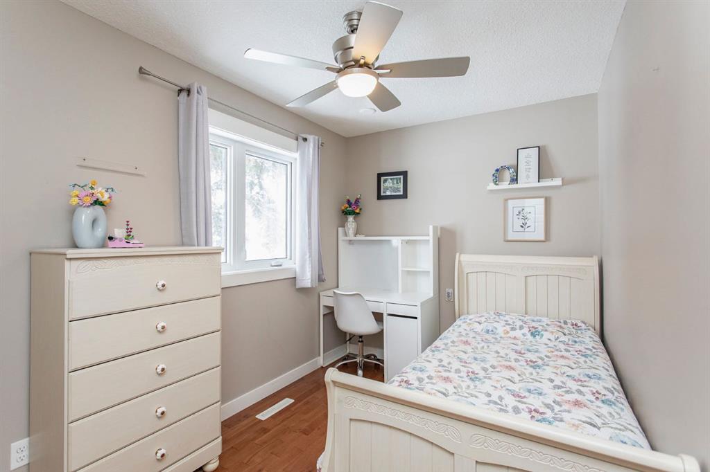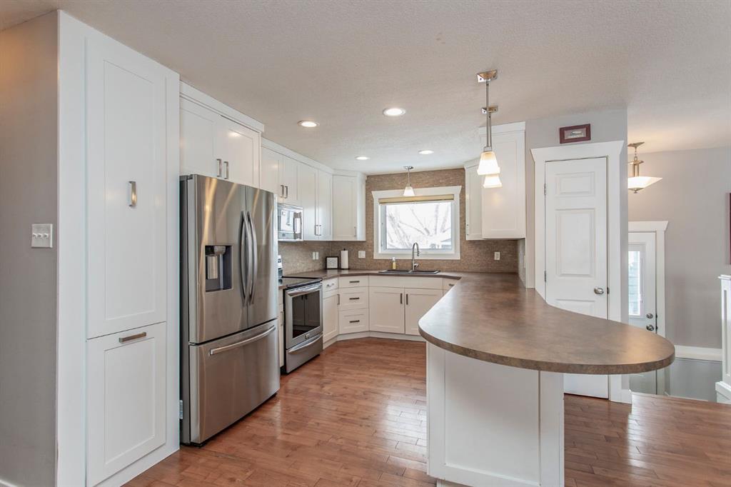 SUBSTANTIALLY RENOVATED! Tastefully re-done inside and out, this fully renovated bungalow in Morrisroe sits on a large, beautifully landscaped South facing lot. Starting on the outside, this home has all Hardi Plank siding with added styrofoam insulation underneath, updated soffits, fascia, and eavestroughs, 35 year shingles (2009), a pre-cast concrete front step, and beautiful low maintenance landscaping both front and back with mature trees. Step inside to a bright and open floor plan with tile and hardwood flooring throughout the main level, all updated finishing and railings, and a fully updated kitchen offering raised cabinetry, stainless steel appliances, a granite sink, and thoughtful pantry storage. This home offers a very hard to find 4 bedrooms on the main level which includes a spacious primary with a 2 pce ensuite, and 3 additional bedrooms that share a fully renovated 4 pce bath. One bedroom is currently in use as an office and features built in cabinetry which can stay or be removed. As you head downstairs, there's built in coat lockers at the back door, and stairs that lead into a stunning basement family room and rec room space that has been totally re-done with vinyl plank flooring, a built in entertainment centre, and two additional bedrooms that share a fully renovated 3 pce bath that includes a custom tiled walk in shower. The fully finished laundry room offers a sink and cabinets for added storage. Other upgrades in the home include a high efficient furnace (2010), updated electrical including the panel, plumbing (all upgraded to pex), windows, and exterior doors. Outside you'll find a huge fully finished and heated 24x30' garage with a double overhead door at the back and a single overhead door to access the front driveway which is a great place for RV storage or additional off street parking. The South facing backyard offers shade from large trees, beautiful paving stone walkways, and low maintenance landscaping with mulch beds.