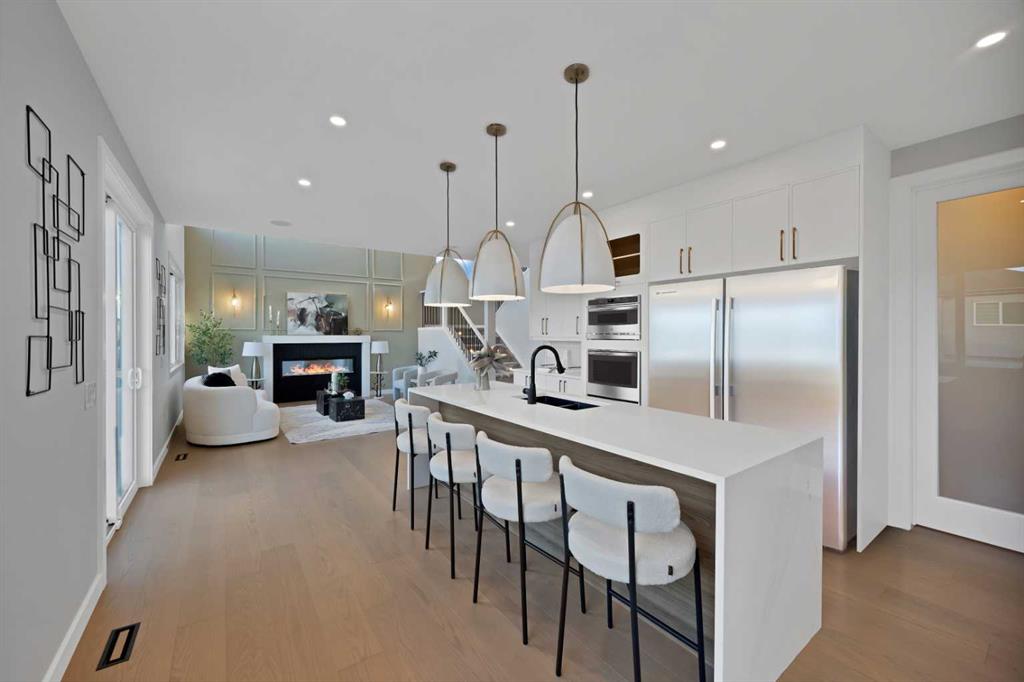 This remarkable semi-estate property offers an exceptional blend of luxury, space, and functionality, designed to impress from the moment you arrive featuring LEGAL BASEMENT SUITE, 2 Primary bedrooms, SPICE Kitchen, Built-in appliances, feature walls, bedroom and a full bathroom at the main floor, 2 Living areas, OPEN TO BELOW and a lot more to explore. Situated on a conventional lot, the home boasts a 3 car garage and features 9-foot ceilings on all three levels, enhancing the sense of openness and sophistication throughout. As you step inside, you're greeted by a dramatic open-to-below foyer with custom feature walls that set the tone for the elegance found across the home. The main floor is thoughtfully designed with a full bedroom and full bathroom, perfect for guests or multi-generational living. A large living area centers around a beautiful gas fireplace with built-in features, while a spice kitchen adds functionality and convenience. The heart of the home is the gourmet kitchen, complete with built-in appliances and a massive island — an ideal space for entertaining and culinary creativity. Upstairs, you’ll find two spacious primary bedrooms. The main primary suite offers a luxurious 6-piece ensuite and a generous walk-in closet, while the second primary features its own elegant 5-piece ensuite. Two additional bedrooms share a third bathroom and are complemented by a huge bonus area, perfect for a media room or play space. A conveniently located laundry room completes the upper floor. The walkout basement has a LEGAL SUITE featuring 2 bedrooms, a kitchen, living area and a 4pc bathroom . With its thoughtful layout, upscale finishes, and room to grow, this home truly offers a lot to explore and even more to love.