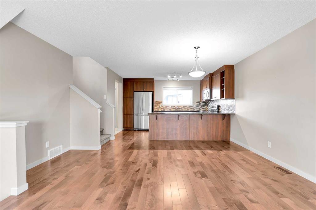Welcome to this stylish 3-bedroom, 2.5-bath townhouse nestled on a unique tapered rectangle lot with an uninterrupted view of the mountains in Legacy SE Calgary. This lot design offers an extra-spacious fenced backyard, perfect for outdoor living, and playtime with kids and pets. Inside, you’ll find a bright, southwest-facing main floor featuring hardwood floors, granite countertops, stainless steel appliances, and an open-concept layout ideal for entertaining. Upstairs includes three comfortable bedrooms, with a primary suite offering ample closet space and a private 4-pc ensuite. The partially finished basement provides flexibility for a rec room, gym, or home office—tailor it to your needs. Located across from the new high school and close to parks, walking paths, and shopping, this home combines comfort, style, and convenience in one of Calgary’s most desirable family communities.