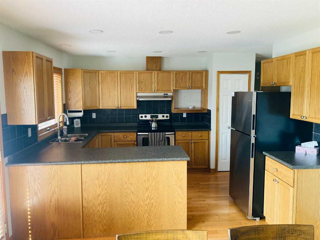 There is something for everyone here. How about starting with a great location in the Hilltop area, backing onto a large playground with the new playground set right behind your yard. That yard is fully landscaped and fenced and features 3 raised planters, a matching garden shed and a large rear deck off the kitchen PLUS a private sunken patio at the end of an 11' x 61' RV parking pad. Inside the 1,305 sq.ft. bungalow you first see a large living room with hardwood floors and a wood burning fireplace. The kitchen and eating are combined with access to the rear deck, such great views. There are 2 bedrooms, plus an office that has direct access to the garage. And you should see the garage, WOW! Pretty cool. The basement is all developed with recent renovations, including 2 more bedrooms and a big office, 4 pc bathroom and utility/storage room, as well as a Family room with it's own fireplace. And although you missed the season, there is also Central Air Conditioning too. Come check it out.