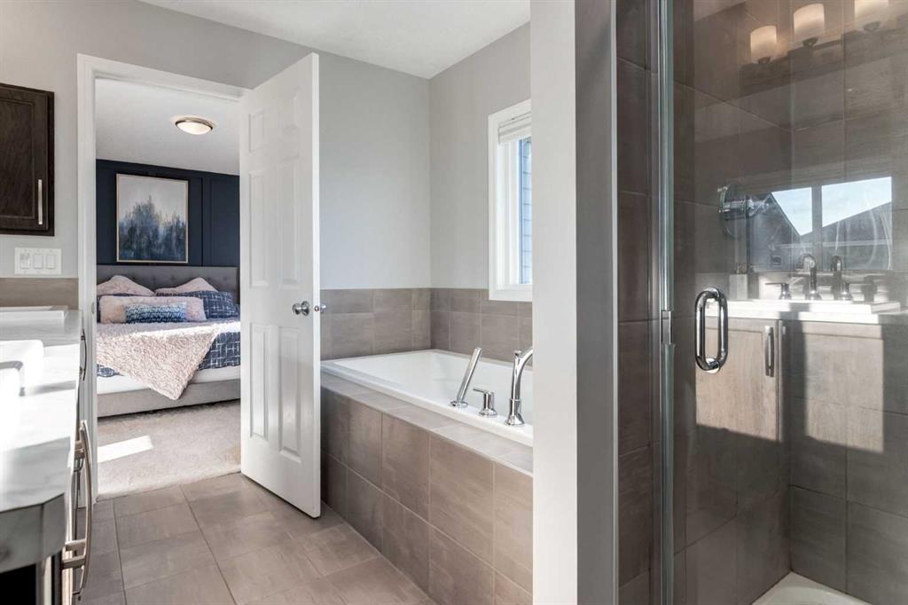 OPEN HOUSE: Saturday January 24th between 1-3pm. Welcome to this beautiful two storey home located in the desirable community of Sunset Ridge. This fully finished detached home offers over 2500sq ft of developed living space, featuring four bedrooms and three and a half bathrooms, perfect for families of all sizes. A bright, open-concept main floor showcases hardwood flooring and expansive windows that fill the space with natural light. The well appointed kitchen boasts dark maple cabinetry, gas cooktop, quartz countertops, stainless steel appliances with built-in microwave and oven, and a spacious walk-in pantry. The adjacent dining area opens to sliding patio doors leading outside to the fully landscaped, south-facing backyard, complete with a two-tiered deck; ideal for entertaining, relaxing, or enjoying sunny afternoons. An inviting living room features an electric fireplace framed by a stone surround, adding warmth and character to the space. Completing the main level is a convenient two-piece bathroom and direct access to the double attached garage. Upstairs, enjoy a spacious bonus room with vaulted ceilings, perfect for movie nights or family game nights. The primary suite is a true retreat, offering a luxurious five-piece ensuite with soaker tub, separate shower, double vanity, and a generous walk-in closet. Two additional bedrooms, a full bathroom, and convenient upper-floor laundry complete this level. The fully developed basement adds even more living space, featuring a recreation area, wet bar, three-piece bathroom, and an additional bedroom with a murphy bed; ideal for guests or a home office. Designed with sustainability in mind, this home is solar-ready for future energy efficiency and cost savings. Located just a short walk to the K–8 school and steps from parks and scenic pathways. Everyday conveniences, including a gas station, pub, and corner store, are close by, while quick access to Calgary and the Rocky Mountains adds to the appeal. Offering the perfect blend of comfort, style, and convenience, this is a fantastic opportunity in one of Cochrane’s most sought-after communities. Don’t miss out on this exceptional home!
