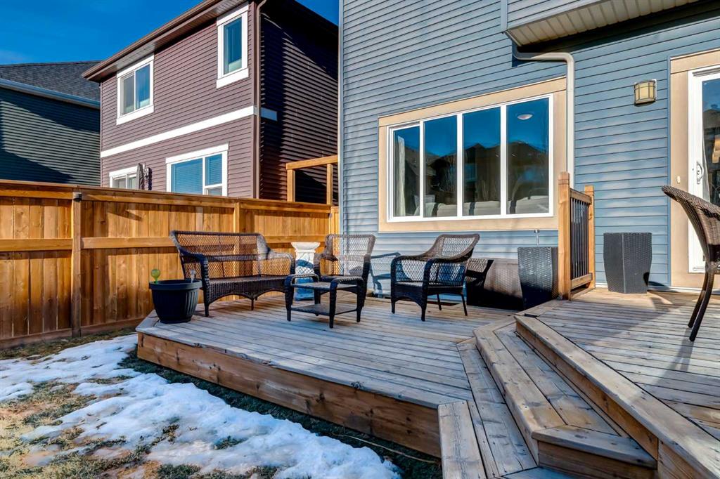 Welcome to this beautiful two storey home located in the desirable community of Sunset Ridge. This fully finished detached home offers over 2500sq ft of developed living space, featuring four bedrooms and three and a half bathrooms, perfect for families of all sizes. A bright, open-concept main floor showcases hardwood flooring and expansive windows that fill the space with natural light. The well appointed kitchen boasts dark maple cabinetry, gas cooktop, quartz countertops, stainless steel appliances with built-in microwave and oven, and a spacious walk-in pantry. The adjacent dining area opens to sliding patio doors leading outside to the fully landscaped, south-facing backyard, complete with a two-tiered deck; ideal for entertaining, relaxing, or enjoying sunny afternoons. An inviting living room features an electric fireplace framed by a stone surround, adding warmth and character to the space. Completing the main level is a convenient two-piece bathroom and direct access to the double attached garage. Upstairs, enjoy a spacious bonus room with vaulted ceilings, perfect for movie nights or family game nights. The primary suite is a true retreat, offering a luxurious five-piece ensuite with soaker tub, separate shower, double vanity, and a generous walk-in closet. Two additional bedrooms, a full bathroom, and convenient upper-floor laundry complete this level. The fully developed basement adds even more living space, featuring a recreation area, wet bar, three-piece bathroom, and an additional bedroom with a murphy bed; ideal for guests or a home office. Designed with sustainability in mind, this home is solar-ready for future energy efficiency and cost savings. Located just a short walk to the K–8 school and steps from parks and scenic pathways. Everyday conveniences, including a gas station, pub, and corner store, are close by, while quick access to Calgary and the Rocky Mountains adds to the appeal. Offering the perfect blend of comfort, style, and convenience, this is a fantastic opportunity in one of Cochrane’s most sought-after communities. Don’t miss out on this exceptional home!