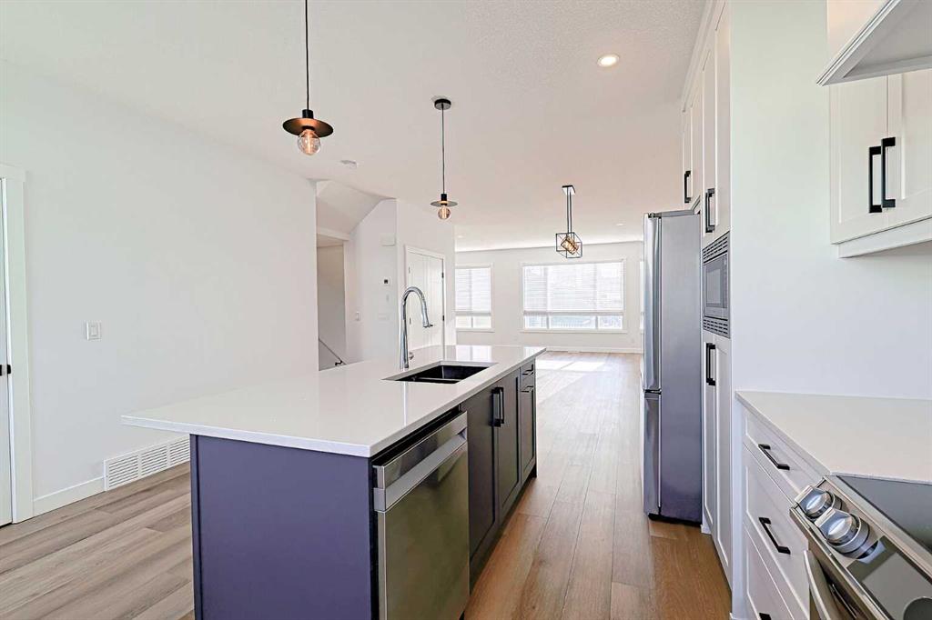 Welcome to elevated living in Sage Hill. This like-new 2022 half-duplex blends modern luxury with low-maintenance convenience, offering 2,126 sq ft of beautifully designed space in one of Calgary’s most sought-after communities of the Northwest. Step inside to a bright, open-concept layout featuring 9-foot ceilings on every level, sleek vinyl plank flooring, and upscale finishes throughout. The gourmet kitchen is appointed with quartz countertops and upgraded stainless-steel appliances, creating a stylish yet functional space ideal for both everyday living and entertaining. Boasting 4 bedrooms and 3 full and a half bath, walk-in closets and a master ensuite will satisfy needs of those looking for space and privacy. Designed with professionals in mind, this home offers a rare combination of elegance and practicality — including a full-size attached double garage and an oversized driveway accommodating up to four vehicles. The crown jewel of this property is the spectacular rooftop patio, where breathtaking 360-degree views of the mountains and city skyline set the stage for unforgettable evenings and elevated urban living. Still under new home warranty and meticulously maintained, this residence delivers peace of mind along with contemporary sophistication — all in a low-maintenance package that lets you focus on living, not upkeep. A refined opportunity for those who appreciate quality, style, and panoramic views. All of that located within a walking distance to the grocery stores, coffee shops, restaurants and a quick access to major highways. Book your private showing today and make it your home before it gets sold! Immediate possession available!