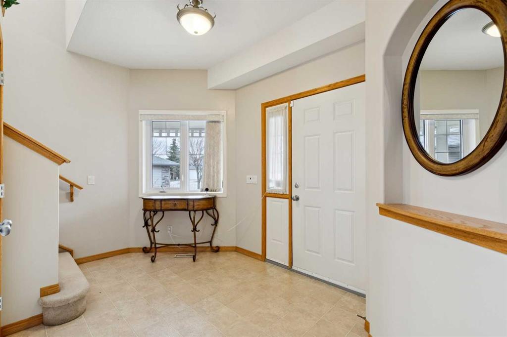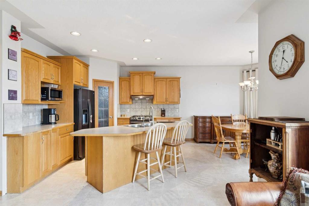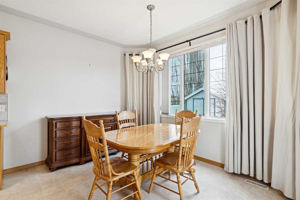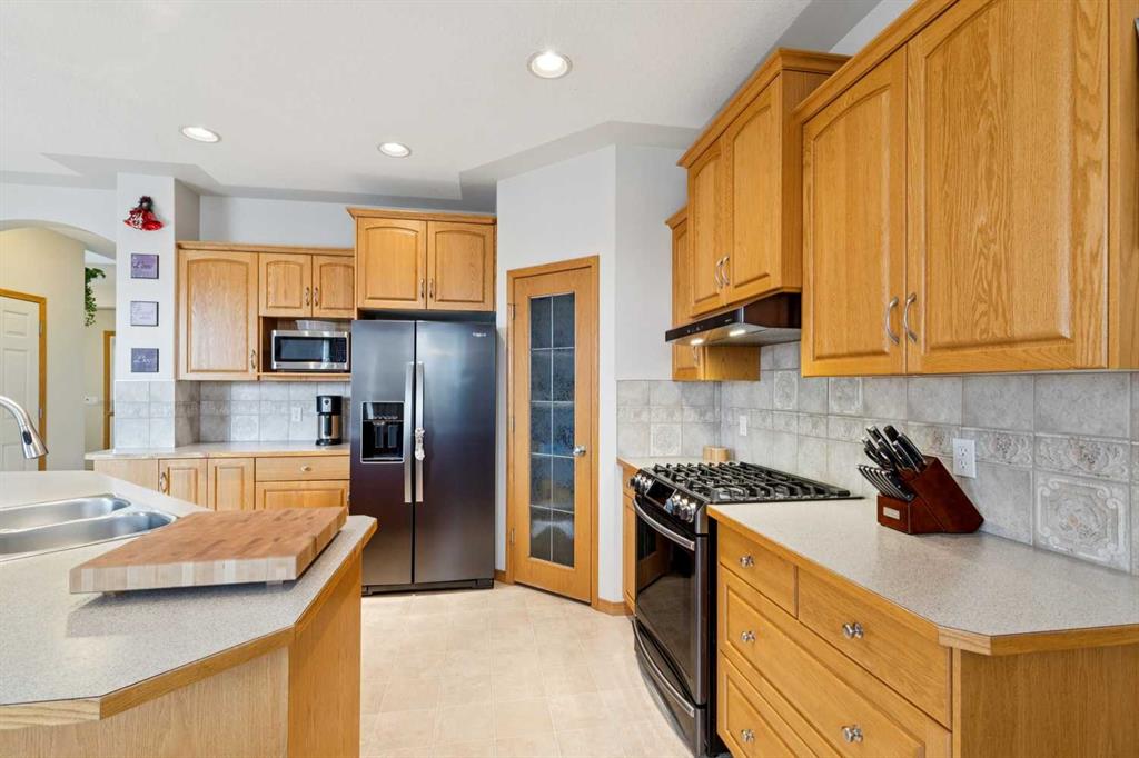 The well maintained home is located close to schools, shopping, and the river walking paths. The main floor features 9-foot ceilings, large windows for plenty of natural light, and a convenient main floor laundry. The kitchen is equipped with newer black stainless steel appliances, including a gas stove, over height cabinets, and lots of counter space. The home backs onto a schoolyard and greenspace providing open views, with a west-facing backyard to enjoy afternoon and evening sun. Step outside to a back deck, and included storage shed. Upstairs and living spaces are complemented by a partially finished basement, offering flexibility for future development or additional living space. Additional features include a reverse osmosis water system, water softener, and a double attached heated garage. The roof was replaced approximately 10 years ago. A solid home with a great location.