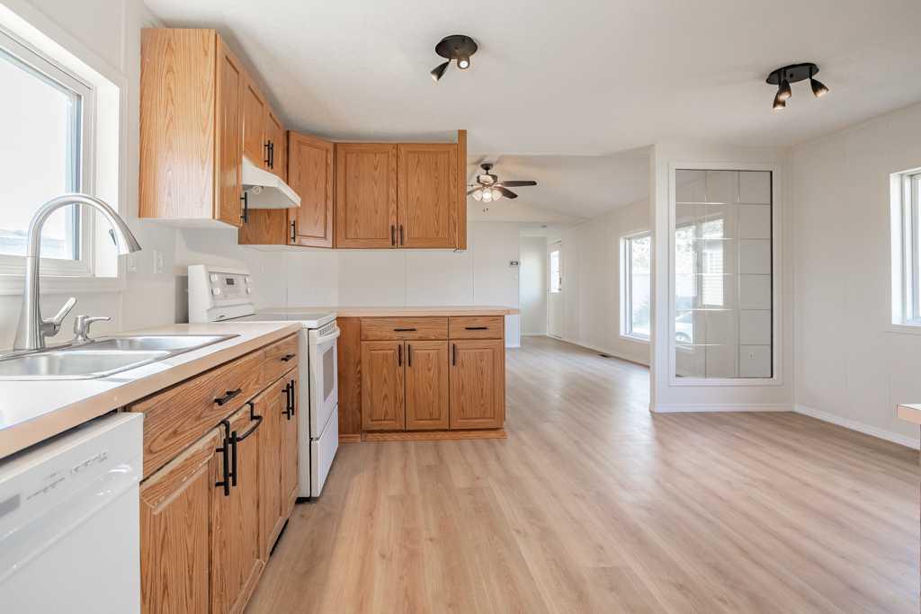 Near the gentle ripples of Lake Stafford, there stands a home that glows with kindness and quiet confidence. It isn’t grand or showy, but it has heart — the kind of heart that welcomes sunlight, laughter, and the scent of something warm baking in the oven while someone hums along to their favorite tune. Built in 1994 and lovingly refreshed for a new chapter, this three-bedroom, two-bath home holds 1216 square feet of comfort and light. Inside, the brand-new vinyl plank floors shine in a sun-kissed blonde tone, stretching through every room like a golden thread tying the story together. Fresh paint and crisp new baseboards give every wall a sense of renewal. In the kitchen, warm oak cabinets line the walls, offering space for every pot, pan, and recipe card. An eat-up bar invites company to linger while something delicious simmers on the stove, and newly updated handles add just the right touch of a new era. A built-in hutch in the dining room serves as part display and part heirloom keeper, holding the treasures of yesterday and the promises of tomorrow. A glass divider between the dining room and living room holds the stillness of a moment, clear and quiet, allowing the beauty of the rooms to reflect through one another. The living room rises tall with a vaulted ceiling and a window that seems to smile upon the room. It feels like the kind of place where a cozy chair, a warm blanket, and a quiet sigh can turn an ordinary afternoon into something special. Just beyond the kitchen, the primary suite awaits — a graceful suite for the understated, undiscovered princess. It is designed for rest and a touch of royalty, with an updated ensuite that feels modern and serene. One full wall is devoted to built-in storage, ready to cradle gowns, sweaters, and everyday favorites, while the walk-in closet offers even more space for treasures waiting to be worn. Opposite the primary suite, near the main bathroom, two additional bedrooms bring balance to the layout, each bright, clean, and ready for their own little adventures. Outside, a soft pink exterior with green shutters gives the home a gentle personality. The fenced yard provides privacy and space for pets or potted flowers, and a shed stands quietly by, ready to hold garden tools and a few secrets of its own. With the right mix of imagination and story, who’s to say it’s only a shed? Perhaps it’s the doorway to somewhere else entirely. For the sweetheart who cherishes the small details and quiet comforts, this is the home that’s been waiting — a place for someone who may not wear a crown yet, but has always carried the heart of royalty. Updates and Features: New vinyl plank flooring (2025); fresh paint and new baseboards (2025); dishwasher (2025); microwave (2019); furnace (2017); updated ensuite (approx. 2016).