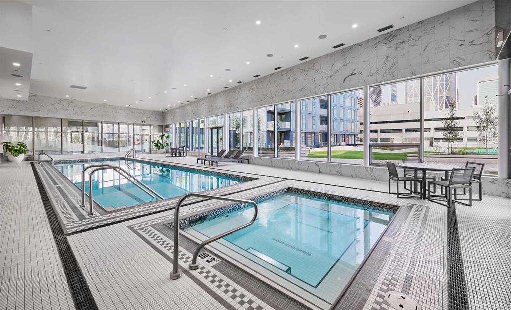 Experience the epitome of urban luxury living at Arris Residences! Immerse yourself in a world of unparalleled convenience, sophisticated comfort, and top-tier amenities. Set your sights high as you journey through this magnificent building, where a pristine 2-bedroom, 2-bathroom CORNER unit, with a sprawling balcony awaits, offering BREATHTAKING UNOBSTRUCTED RIVER VIEWS from the 39th floor. As you step through the entrance, a welcoming foyer ushers you in, providing easy access to your front closet and in-suite laundry. Moving into the expansive main living area, you're greeted by floor-to-ceiling windows that reveal a panoramic spectacle. The open-concept layout features large kitchen, dining, and living spaces, all adorned with premium finishes, including abundant pot lights and wide plank flooring. The gourmet kitchen is graced with a high-end European appliance package, featuring a built-in 30” Blomberg stainless steel refrigerator and a Fulgor Milano stainless steel 5-burner gas cooktop and wall oven. Quartz countertops, sleek soft-close cabinetry, and an expansive kitchen island with a built-in dishwasher and microwave create an inviting space for gatherings. The dining area accommodates a generous table, while the living area beckons for relaxation as you take in the captivating river views. The primary bedroom boasts ample space and a generously sized closet. Mornings are a delight in the 4-piece ensuite, which features double sinks, vanity drawers, and a spacious step-in shower enclosed by a glass door. The second bedroom offers versatility, and serves as an ideal workspace or guest retreat. To top it all off, this unit includes an underground parking stall and a storage locker. EV parking options available. Within the building, the modern structure houses a wealth of amenities centered around 'Club Arris,' offering an impressive 25,000 sq. ft. of both indoor and outdoor facilities. Enjoy our state-of-the-art fitness center equipped with spin, weight, yoga, and TRX options, featuring top-of-the-line fitness equipment that rivals any gym. The four-season indoor heated pool, complete with a hot tub, sauna, and steam room, provides an unparalleled relaxation experience. The social lounge, private dining area, video conferencing rooms, and the lush outdoor terrace serve as the ultimate VIP social spaces, expanding your living area and enhancing your social connections. These executive-style residences sit atop a sprawling podium of essential services, including the new urban-format Real Canadian Superstore, ensuring all your needs are met right at your doorstep.