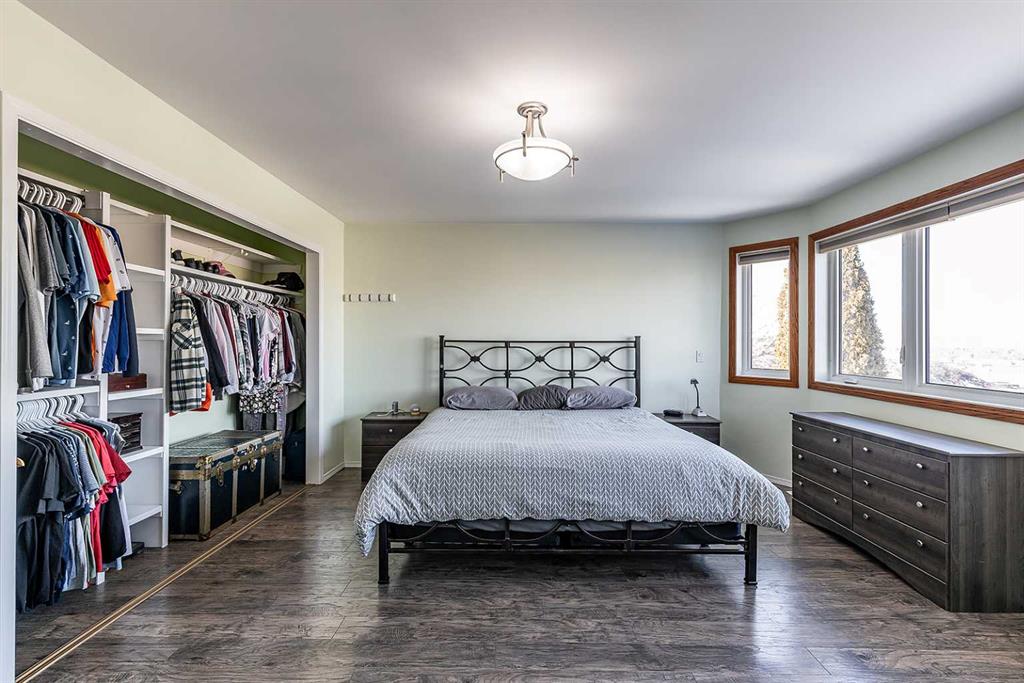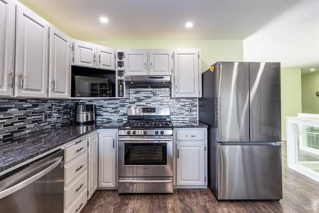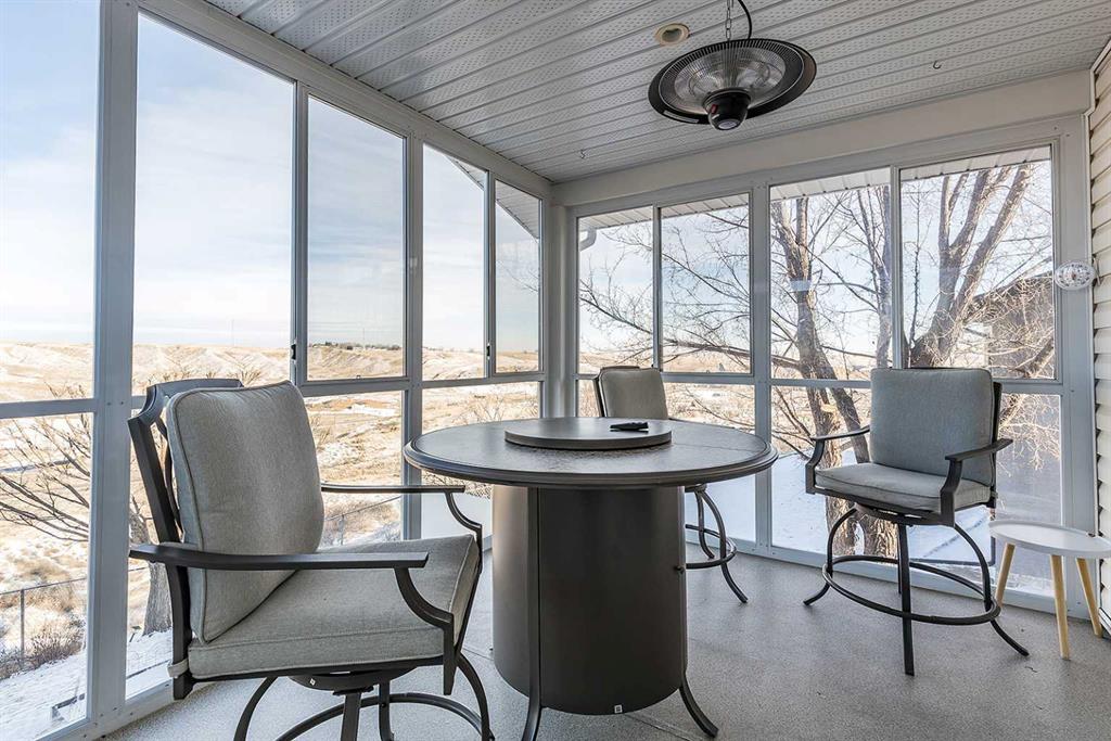 38 Cook Court SE | Walk-Out Bungalow with Sweeping Views. Enjoy breathtaking, unobstructed views of Medalta, Strathcona, and clear across Medicine Hat from this beautifully positioned 1,635 sq. ft. walk-out bungalow, tucked away on a quiet court and filled with natural light throughout. This well-designed home offers 5 bedrooms and 3 bathrooms, making it ideal for families or those who love extra space. The main floor welcomes you with a large front sunken living room, anchored by a massive picture window filling the space with natural light. A generous dining room flows seamlessly into the updated kitchen, featuring painted grey-toned cabinetry, granite countertops, under-cabinet lighting, and an eat-in area with access to the enclosed sunroom/deck—the perfect spot to relax and take in the scenery year-round. The primary retreat is truly a standout, offering plenty of space, a 4-piece ensuite, and your very own sauna for spa-like relaxation at home. Two additional bedrooms (one currently used as a main floor laundry) and a full 4-piece bathroom complete the main level. Downstairs, the fully finished walk-out basement expands your living space with a huge rec room, two more bedrooms, another 4-piece bathroom, and a large unfinished area with laundry hookups—ideal for storage, a workshop, or future development. Step outside to a fully fenced backyard designed to impress, featuring stunning views, four garden areas, and a gas line to the patio—perfect for summer entertaining. Additional highlights include two furnaces, a water softener, a brand-new hot water tank and RV Access/Parking! A rare combination of space, views, and location—38 Cook Court SE is a home you won’t want to miss.