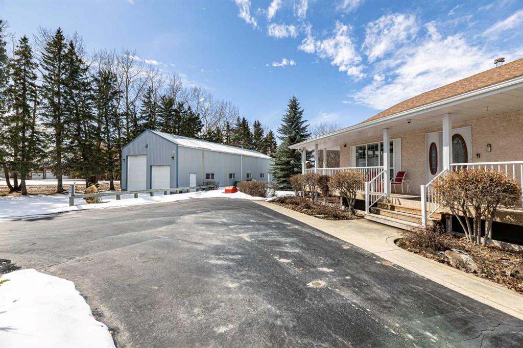 Welcome to a place where life slows down, with lots of peace & quiet & privacy making every day feel a little more meaningful and laid back. Situated off of the pavement from Hwy 11 and within minutes from Sylvan Lake,where there are lots of activities for young families & retired individuals, a community center and NexSource Centre, plus Pogadl Park (Gulls Ballfield) & so much more. Something for everyone! Within walking distance if you want to get your steps in everyday! All the perks of Country living but having a close proximity to the convenience of town living. This charming 1,694 sq ft bungalow offers 3 bedrooms,office,main floor laundry and 4 bathrooms, creating a warm and comfortable space to gather, relax, and call home. The primary bedroom accommodates a Queen size bed, a spacious walk-in closet ,spa like 4 piece ensuite & a patio door for easy access to the wrap around deck. You are also going to love the main bathroom!! It’s Gorgeous!! Enjoy the bluejays that come to visit every morning as you sit having breakfast in the dining area or while sipping your hot drink as you read your favorite book on the spacious deck. Picture cozy evenings by the wood burning wood stove, and also soak in the sunshine in the living room as natural light fills the home during the day through the generous amount of windows looking out to the picture perfect treed back yard & wildlife. The fully finished basement will be a favourite gathering place for games or movie night when family and friends come to visit. The mature trees wrap the property in privacy, spacious lawns, with a parklike setting, variety of beautiful perennials and shrubs, and the paved circular driveway that welcomes you and accommodates all the extra vehicles & RVs when guests come to visit. (You might even be able to set up your very own pickleball court if desired!!) At the rear of property the land attaches to the peaceful farmland with views of—endless skies, gentle breezes, and a true sense of calm. Relax by the fire with friends and loved ones as you enjoy country living at its finest. The IMPRESSIVE 30 x 68 ft shop,14’ & 10’ high doors,and with radiant heat and mezzanine,2 pce bath & back office adds incredible flexibility, whether for work, hobbies, or storage. This is more than just an acreage—it’s a place to unwind, reconnect, and take in the simple beauty of rural living, all just minutes from the lake and everything that Sylvan Lake has to offer your family. This summer in the quietness of your acreage amid the bird calls you drift off to sleep totally relaxed in your own gazebo! No this isn’t heaven but it’s close.