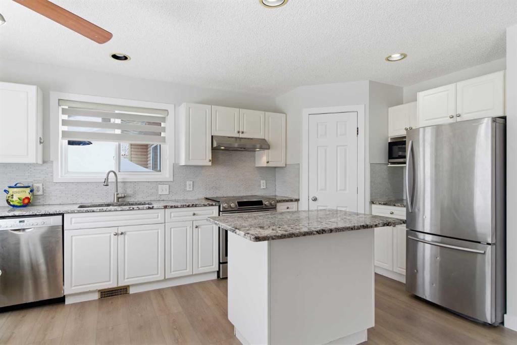 Home Sweet Home in the Lake Community of Arbour Lake! Welcome to this spacious 5-bedroom family home offering nearly 3,000 sq.ft. of total living space, ideally located on a quiet cul-de-sac and just minutes from the lake and nearby amenities. This well-maintained property features many major upgrades, including Roof (2020), Furnace (2021), Tankless Hot Water Tank (2021), Windows on the main and upper levels (2022), fresh paint, new flooring throughout the home, and updated bathrooms. The main floor showcases soaring vaulted ceilings in the formal living and dining area, creating a bright and open atmosphere. The kitchen features white cabinetry, granite countertops, glass tile backsplash, and newer stainless-steel appliances, and opens to the cozy family room—perfect for everyday living and entertaining. A private den and convenient main-floor laundry complete the level. Upstairs you will find three generous bedrooms, including a spacious primary suite with a walk-in closet and a fully updated 5-piece ensuite featuring heated floors, modern vanity, granite counters, freestanding tub, and a tiled shower with body jets. The fully finished basement offers two additional bedrooms and a large recreation room, making it ideal for larger families or guests. Set on a beautiful lot with a sunny WEST-facing backyard, the outdoor space includes an exposed aggregate patio, gazebo, storage shed, mature trees, and a fully fenced yard—perfect for relaxing or entertaining. Located in the desirable Arbour Lake, this home provides lake access, and is conveniently close to shopping, schools, parks, baseball diamonds, soccer fields, public transit, and easy access to Crowchild Trail. A fantastic opportunity to live in one of NW Calgary’s only lake communities—book your private showing today!