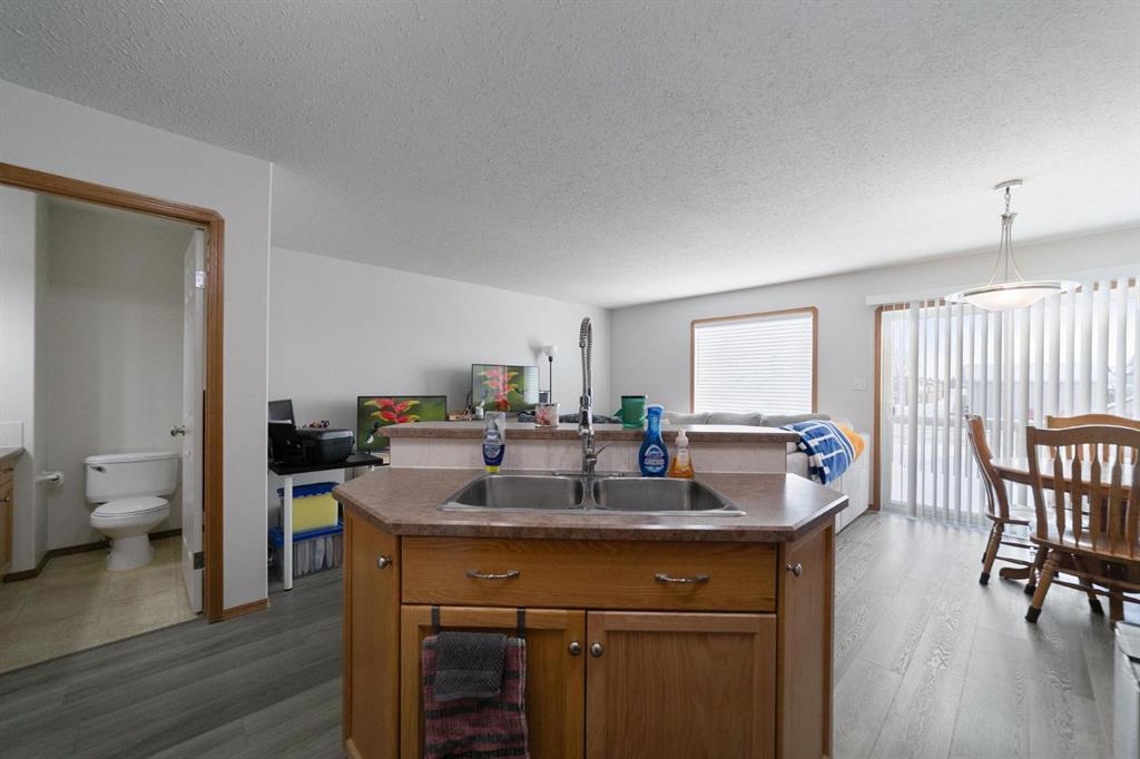 This well-maintained two-storey duplex side is ideally located near the amenities of Duggan Park and within easy walking distance to Camrose's west end shopping. The main level offers an open floor plan that creates a bright spacious feel, featuring a functional kitchen with a centre island, convenient 2-piece bathroom, and a cozy living room perfect for relaxing. Upstairs, you’ll find two generously sized bedrooms, including a primary bedroom with a 5-piece ensuite, along with an additional 4-piece bathroom for the second bedroom. The lower level is left open for future development, giving you the freedom to customize the space to suit your needs. An attached single garage adds both parking and storage, making this an excellent opportunity for investors or first-time home buyers.