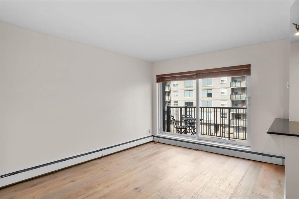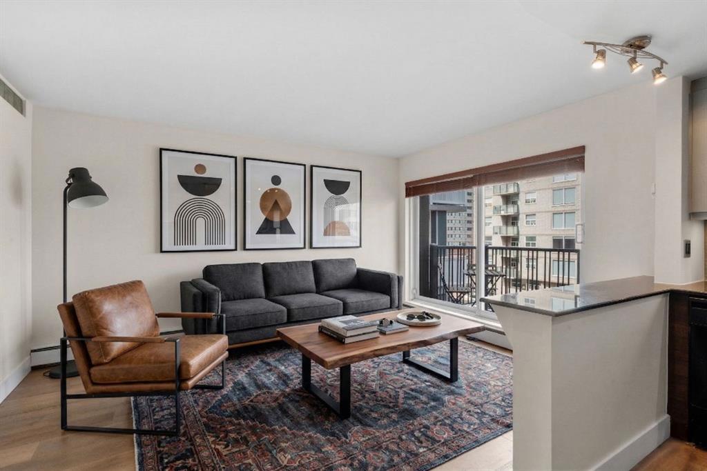 TOP-FLOOR CORNER UNIT - IN ONE OF DOWNTOWN'S BEST LOCATIONS - STEPS TO 17TH AVE! Set on one of the most desirable streets in the Beltline area, this location delivers unbeatable walkability. Just steps to 17th Avenue!! You will be surrounded by Calgary’s top restaurants, cafés, fitness studios and boutiques - all within a 5-minute walk. Quiet, tree-lined and incredibly central, this building is on a street that offers both energy and calm. Located in a well-maintained small (only 16 units!) CONCRETE building, this TOP FLOOR, corner unit offers added privacy with no neighbours above you. This 4-level walk-up is known for its solid construction and quiet living. Secure FOB access gets you in the building. Inside, you’ll find NEW HARDWOOD floors throughout, BIG closet at front entrance. This unit maximizes the space - 484 sq ft - and feels big and open! Functional 1 bedroom, 1 bathroom layout with TONS of natural light. Enjoy cooking in your kitchen with lots of counter space (GRANITE!) PLUS a great sized window above the sink! Open concept. BALCONY. Nice sized bedroom with AWESOME closet space and glass sliding doors. Barn doors, baseboards, lighting, handles and cabinet coloring - truly make this unit feel updated and modern! LAUNDRY IN THE UNIT! Brand new washer/dryer. Soaker tub. PET-FRIENDLY building (with board approval) - no size or breed restrictions - makes this a rare find for pet owners in the inner city!!! Condo fees include heat and water. An ideal opportunity for those seeking inner-city living with exceptional walkability, privacy and long-term value. Don't have a car? You can literally WALK/BIKE everywhere....But this unit comes with assigned parking! Work downtown? Enjoy the benefits of inner-city living - with reduced commute times = come home for lunch or to take the dog out!! Transit is also close - 2 bus stops are within a two min walk. Perfect for young professionals, first-time buyers or investors! STOP renting - pay your own mortgage instead!!!! NO POST TENSION CABLES!