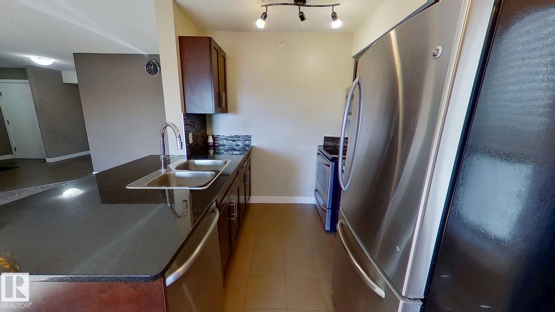 Make yourself at home in this beautiful open-concept TOP FLOOR CORNER UNIT conveniently located in the highly desirable Rutherford NBHD! Large Primary BR incl 3pc EN-SUITE and a his & her walk through closet. 2nd BR is located across the dining area for privacy. 2nd 4pc bath incl an UPGRADED SOAKER TUB. All CHROME fittings & QUARTZ countertops. Kitchen boasts espresso soft-close cupboards, GE STAINLESS STEEL appliances and a spacious breakfast bar. Den perfect for an OFFICE SPACE. Spacious utility room w/ IN-SUITE HIGH-EFFICIENCY washer & dryer. Bright Living Room w/ over-sized windows & AIR CONDITIONING. Large COVERED BALCONY for relaxing or entertaining. HEATED TITLED UNDERGROUND PARKING with sealed & secured STORAGE ROOM. Energized TITLED SURFACE PARKING by main entrance. ELEVATOR and easy STAIR access. Ample visitor parking. Well managed and maintained condo with a HEALTHY RESERVE FUND. Walking distance to shopping, schools, and other amenities. Quick access to AHD & HWY 2.