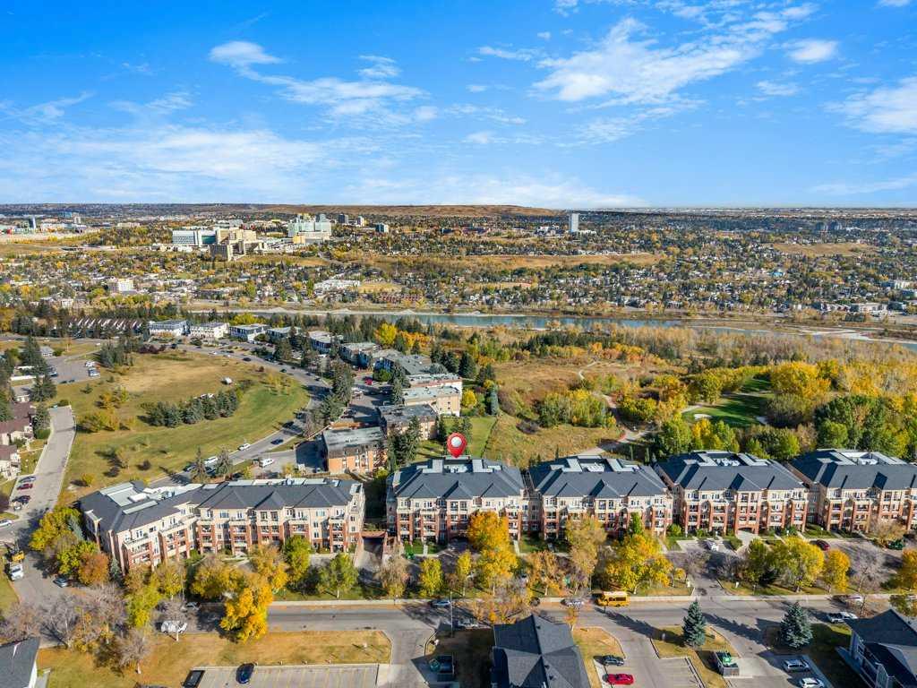 --> OPEN HOUSE: Sat, Feb 21 from 1:00 to 4:00pm <-- The top of the building is a small club. And membership is limited. Perched above the walking paths, stretching over the golf course and into the city skyline beyond, this 2,084 sqft penthouse isn’t just space — it’s presence. The sheer size checks the boxes and the 3 bedroom layout seals the deal. Transition from a life of cutting grass + shovelling snow to a lifestyle of sitting back + enjoying the ease of condo living. Over $100,000 has been invested with intention and refinement. Every upgrade curated - every finish deliberate. Step foot into a gourmet kitchen dressed in quartz, anchored by a gas range, stainless steel appliances, wine fridge, full pantry and customized pull-out drawers throughout. The heart of the home boasts seamless sight lines across the open-concept layout will be the desired spot for many gatherings in the years to come. The connected living + dining spaces invite celebration — whether it’s dinner for twelve or a quiet glass of wine by the gas fireplace. This is where new memories with those closest to you commence. From 10-foot ceilings to immersive built-in audio and your own projection theatre, every detail was designed for effortless living — complete with a full Hunter Douglas blinds package and phantom screens for year-round comfort. Retreat to your nearly 300 sqft primary suite, wrapped in a wall of windows. The ensuite elevates daily ritual with dual sinks and a steam shower with bench, while a fully built-out walk-in closet keeps life organized. With three rooms on hand, it provides flexibility for guests and potential for a den, lounge or library. Let's move on to the statement piece - your 600 sqft outdoor terrace. Morning coffee above the fairways - sunset cocktails over the city lights. This exterior haven provides you the space to entertain + exhale. The purchase will come with two underground, side by side parking stalls and a separate storage locker for seasonal goods. You will also find a car wash bay + bike storage onsite. The community amenities include a large fitness facility along with recreation room which hosts several resident meet ups + gatherings throughout the year. A location close to all your daily requirements, mere blocks to the c-train, walkable to the golf course and minutes into the downtown office core. This Penthouse more than an address - it's a statement piece, a vantage point and a lifestyle reserved for those who prefer privacy. Your opportunity to live where others look up.