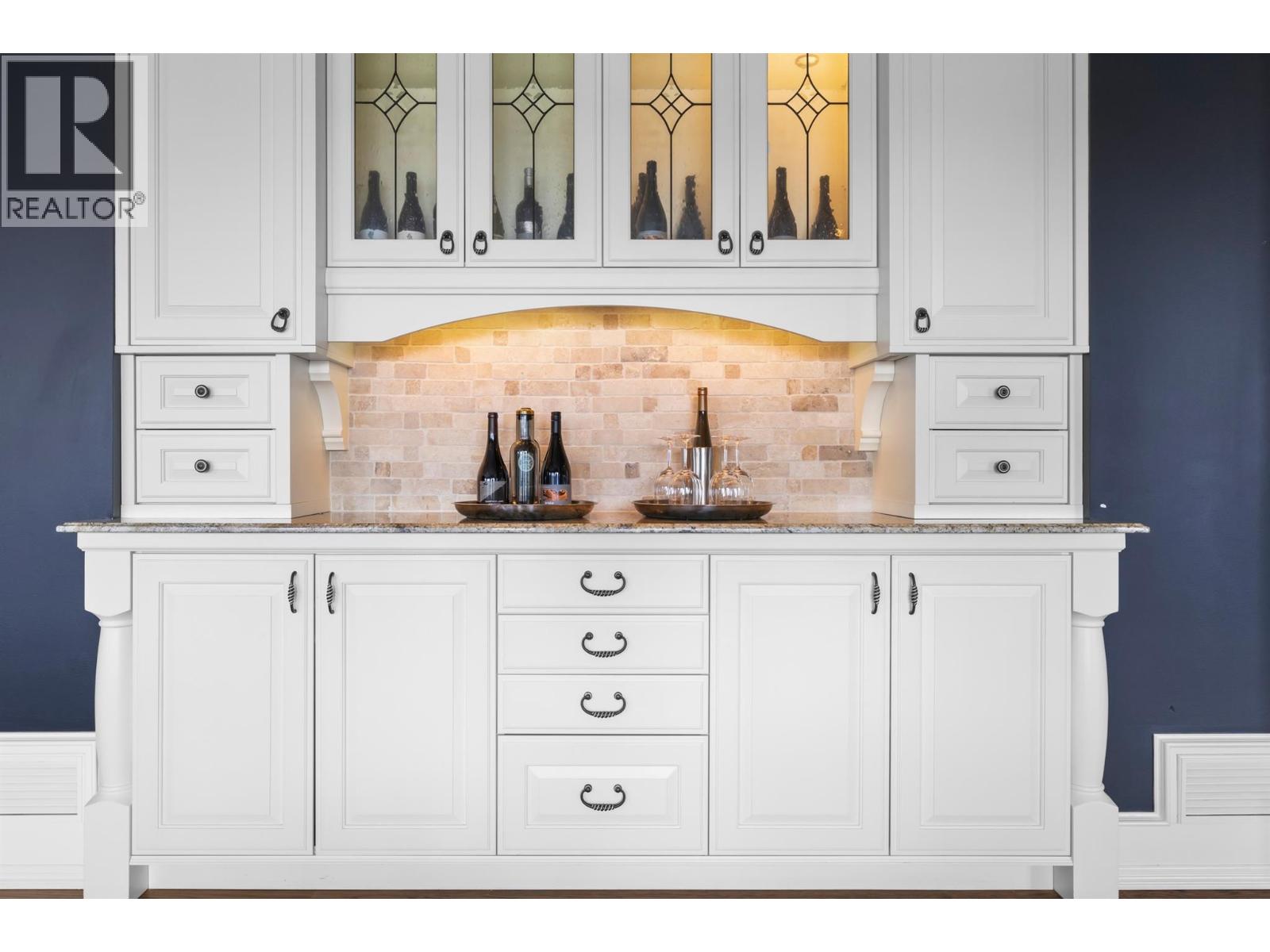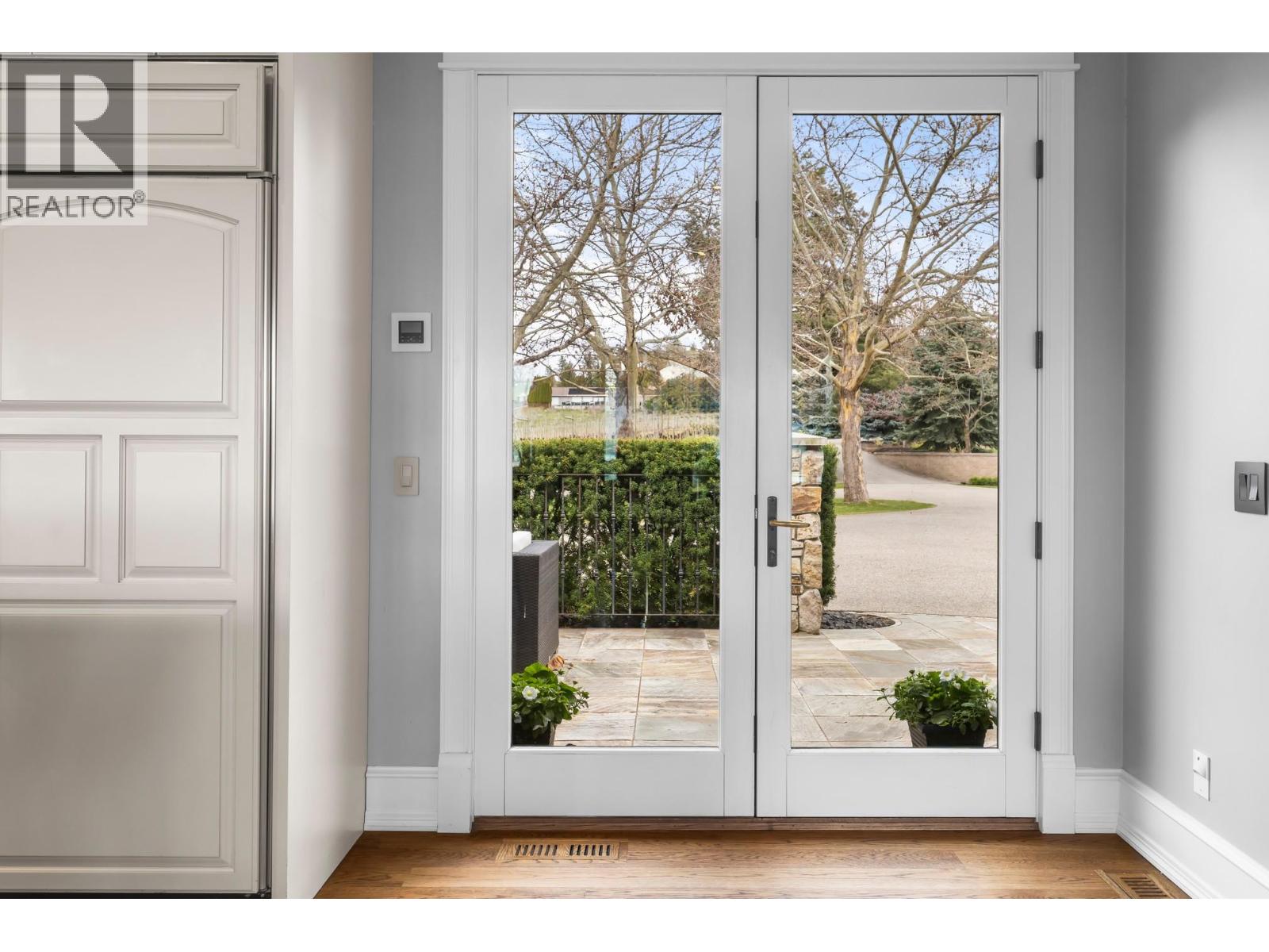 A rare and remarkable estate opportunity, this scenic 9.23-acre property is set just 10 minutes from the heart of Kelowna, offering privacy, scale, and breathtaking lake and city views. Surrounded by manicured gardens, the main residence is thoughtfully positioned to overlook rolling farmland below, with a poolside setting designed to capture the beauty of the Okanagan landscape. The luxury home spans over 13,000 sq. ft. and is complemented by a detached 2 BR guest house, ideal for extended family or guests. A grand front entry opens to an expansive main living area where open-concept living, formal and casual dining, and a gourmet kitchen that flow seamlessly to the outdoor kitchen and pool, creating an exceptional setting for entertaining. The main-level primary suite is a private retreat, offering all the features expected in a home of this calibre. The lower level is accessible from two separate points and includes additional living rooms, multiple bedrooms, and a beautifully finished wine room. An oversized double garage is paired with a lower-level garage, while a separate outbuilding provides ample space for equipment or storage. Approximately 2.5 acres are planted in vineyard, with potential for an additional 5 acres, supported by an artesian well for irrigation. This estate blends luxury living with agricultural potential—an extraordinary offering in one of the region’s most desirable settings.