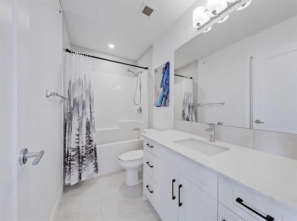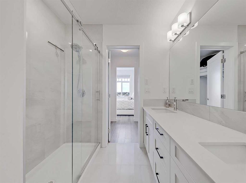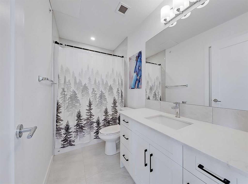Welcome to Auburn Rise! Here’s your rare opportunity to own THE BEST UNIT in the building in one of Calgary’s few LAKE communities; A TOP FLOOR, CORNER UNIT featuring TWO BEDROOMS, TWO FULL BATHROOMS, AIR-CONDITIONING and underground parking for TWO VEHICLES! This beautiful building is part of a well-managed complex offering modern style and contemporary finishes that rival most condos in the City, and built only 4 years ago. Step into Unit 406 and you’re welcomed with tall 9-foot ceilings and wide-plank LVP flooring that flows throughout, leading to large windows that completely fill the open-concept living space with BRIGHT natural light. With classic shaker style cabinets in crisp white, and a huge 6-person island with double-waterfall quartz counters and undermount composite sink, the kitchen is a host’s dream come true for guests and family gatherings alike. A suite of quality stainless appliances include a built-in stove and microwave oven, along with a glass countertop range promising quick and easy cleaning once the cooking is done. Step outside and you’ll find a gracious patio, extending nearly 20 FEET along the front of the unit, giving incredible PANORAMIC VIEWS clear to the skyscrapers of the downtown core, and even to the mountaintops to the West, where you’ll get to watch Calgary’s famous SUNSETS! The master bedroom is found tucked away around the kitchen, with an east window offering bright and sunny mornings (and cool evenings), then leading to a walk-through closet which gives way to a private 4-pc ensuite bathroom with dual-sink vanity. The second bedroom also benefits from this east exposure but also offers private access to the shared 4-pc bathroom thanks to a convenient pocket door, meaning guests don’t need to leave the bedroom for access. With so many condos, parking is always an issue, but this unit comes included with an extra large TITLED underground parking stall, allowing for TWO VEHICLES to be parked in tandem. If you need more storage, a storage space is also assigned to the unit and located only steps away from the parking stall, the perfect place to store seasonal items or sports equipment. Finally, location, location, location! Imagine NEVER having to drive to the grocery store again! With Co-op located ACROSS THE STREET, as well other shops, TIM HORTONS, and even the local community pub/restaurant, home can finally be a place where you park your car and take a walk instead. Don’t forget you’ll also get LAKE ACCESS where you can swim and soak up the rays on the beach just down the street from your home!