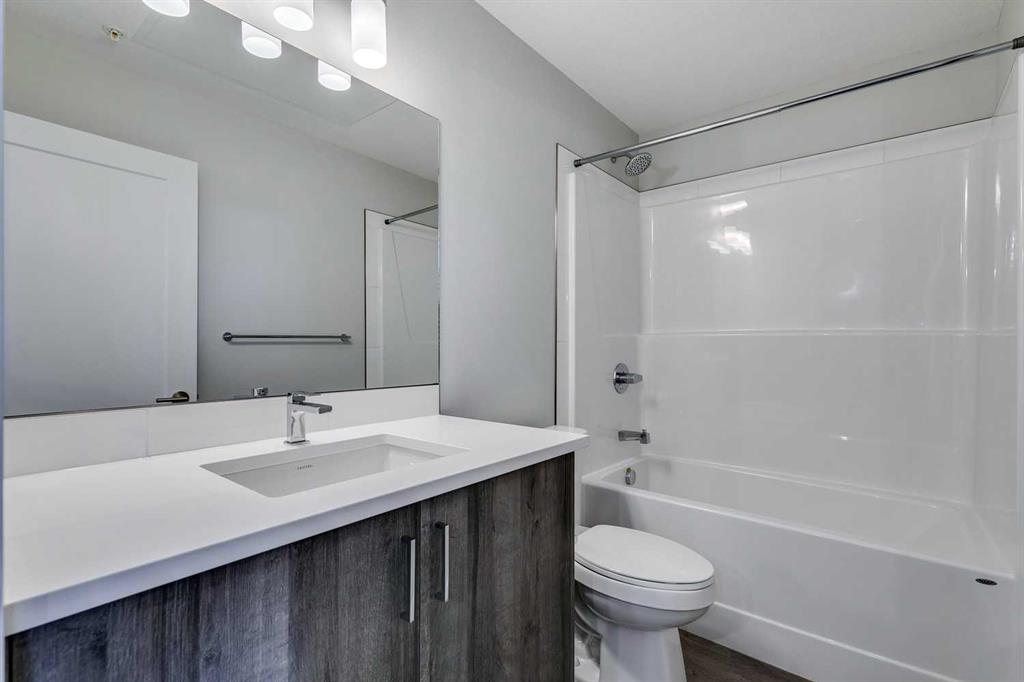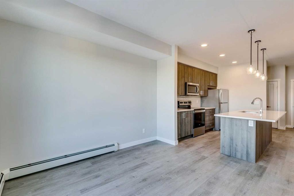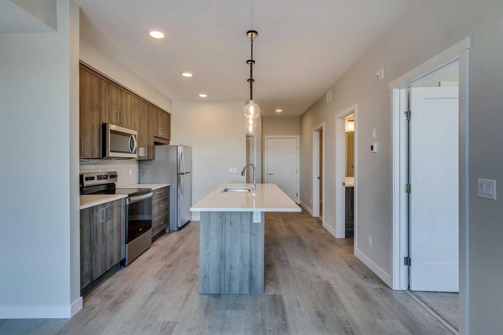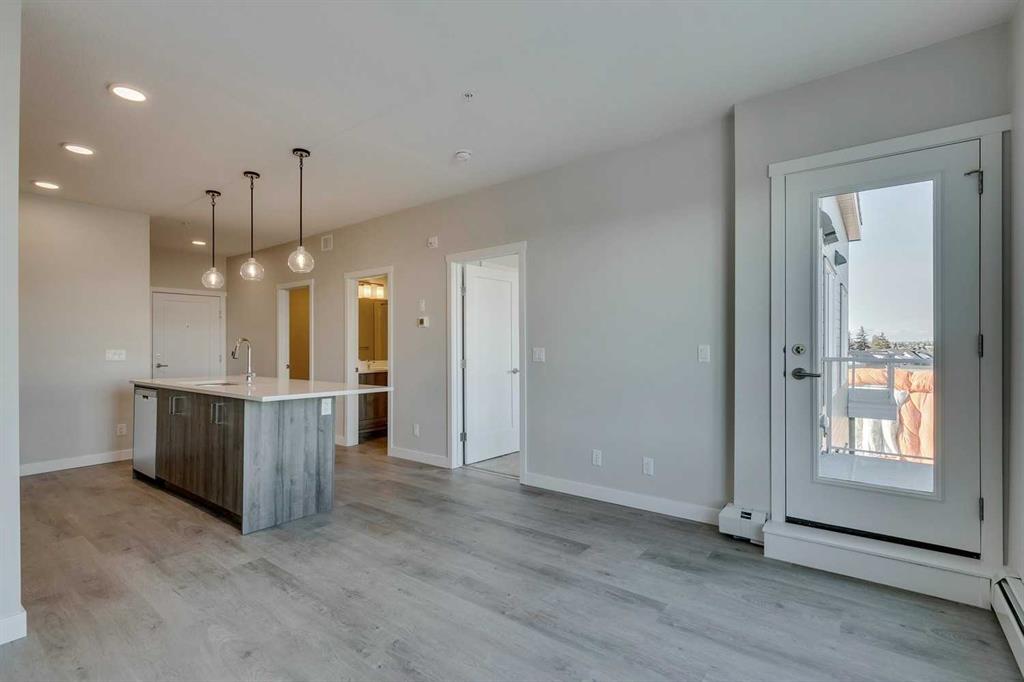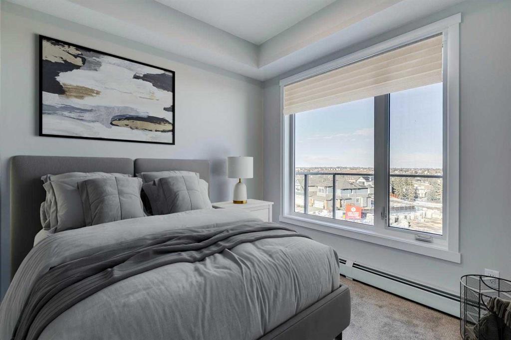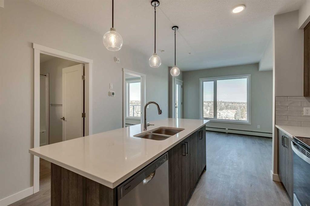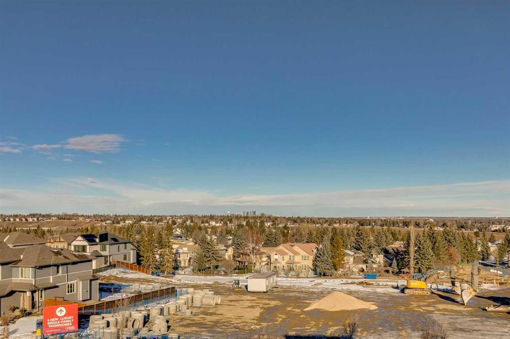 Perched on the TOP FLOOR in the heart of Shawnee Slopes with unobstructed views, this virtually brand-new 2-bedroom condo offers more than just a beautiful home - it offers a lifestyle defined by light, views, and effortless everyday living, with the added advantage of immediate possession available for those ready to make a seamless move. Imagine starting your mornings with coffee while taking in SWEEPING VIEWS of the downtown skyline and Rocky Mountains (best views in the building) on your private balcony, then stepping into a space that feels fresh, modern, and meticulously maintained, truly showing like new (only lived in for 6 months). Built in 2024, this thoughtfully designed home pairs elevated style with comfort, featuring luxury vinyl plank flooring and a stunning, contemporary kitchen with stainless steel appliances, quartz countertops, and a central island with breakfast bar seating - perfect for casual mornings or hosting friends in the evening. The primary bedroom feels like a peaceful retreat with elegant tray ceiling and stunning views, while the second bedroom offers flexibility for guests, a home office, or playroom as your lifestyle evolves. Located off the spacious and bright living room, step outside onto your private balcony and unwind while enjoying the quiet elevation of top-floor living. A beautifully finished full bathroom with quartz counters and tub/shower combination, along with convenient in-suite laundry, add to the ease of daily living. TITLED UNDERGROUND PARKING and titled storage provide practical luxury, while low monthly maintenance fees, visitor parking, and a PET-FRIENDLY building add to the appeal. Beyond your front door, Shawnee Slopes offers a rare balance of city convenience and natural beauty, with direct access to Fish Creek Provincial Park offering endless opportunities for walking, biking, and year-round outdoor recreation. The community is connected and convenient, with nearby LRT access, major routes like Macleod Trail, and quick connections to shopping, dining, and everyday essentials at nearby retail hubs including Shawnessy, while also being surrounded by parks, pathways, schools, and recreation facilities that make daily life feel easy and connected. Set among gently rolling landscapes along the Fish Creek valley, Shawnee Slopes is known for its quiet, established feel, strong sense of community, and seamless blend of nature and modern living, making this an exceptional place to call home. Low maintenance fees of $344.19/month include water, sewer, heat, garbage/recycling, exterior insurance and maintenance, underground parkade, maintenance of common areas, reserve fund contributions, snow removal, and professional management. Book your showing today!