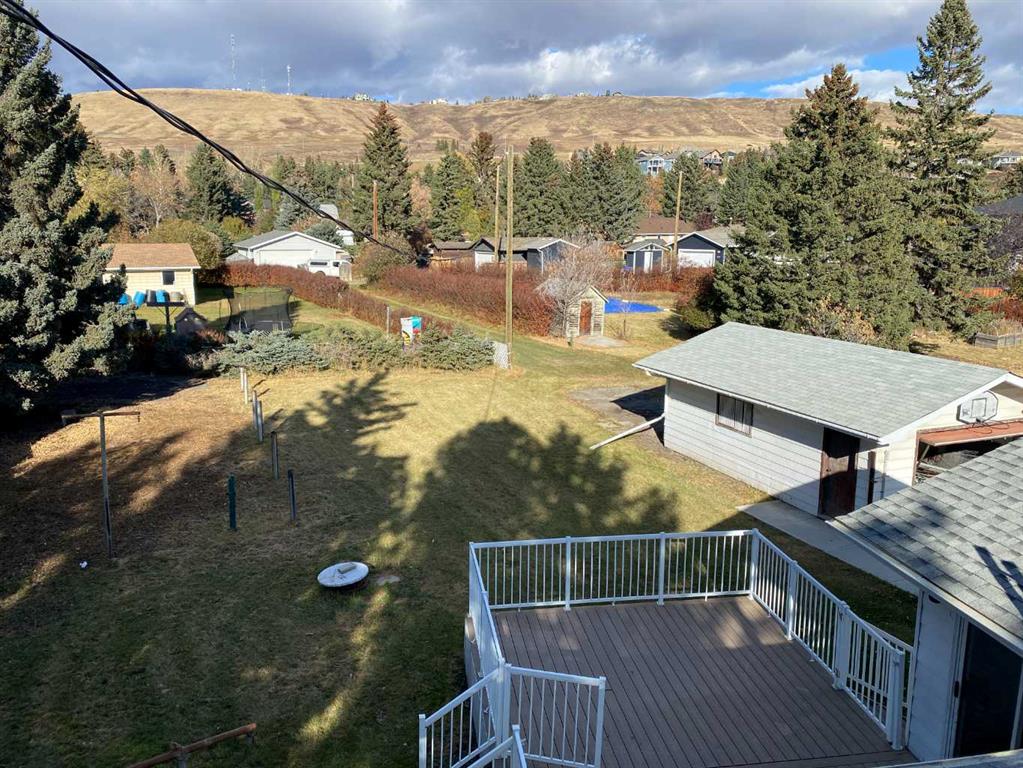 **Attention** Lots of Potential for this large lot in the East side of Cochrane. This 1962 home is situated on a huge 13,218 sq foot lot with back alley access, not many lots this big in Cochrane. The home will need some TLC but has a newer furnace (approximately 5 years old), hot water tank and asphalt shingles (approximately 2014). The upper level of the home has 3 entrances and consists of a Kitchen, dinning, family room, 3 bedrooms and a 4 pc bathroom. The lower level has 1 bedroom, recreation area, storage and laundry hook ups. From the kitchen patio doors is the large north facing composite deck, back yard and oversized single garage. The entrance to the property is a concrete driveway big enough for 5 cars. Property is close to (walking) downtown Cochrane old and new, with all the amenities needed. Across the street is a tennis court, close to a playground and Cochrane Christian Academy school. Zoned as Residential Low Density.