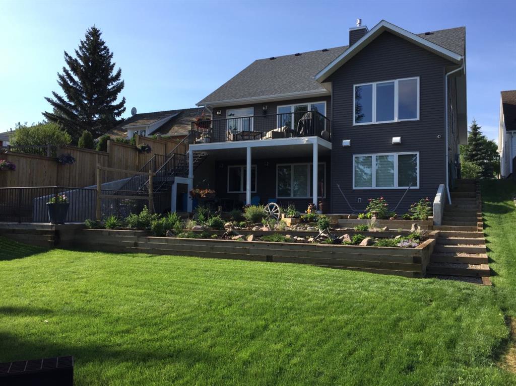 ONCE IN A LIFETIME OPPORTUNITY to own this stunning in-fill in Michener Hill! Built in 2016 by Larkaun Homes and perched overlooking Woodlea Hill on a 50’W x 490’L lot (over 25,000sqft lot!) - this is the definition of “one of a kind.” With impeccable street appeal - this south-facing grass-free front yard features low maintenance, low-water use foliage with natural stone wall and gravel path. You are welcomed into this bright and inviting home via a large entry hall, leading past the main floor office, half bath and laundry room and into your open concept kitchen / living area. The well appointed kitchen features a centre island, sleek appliances and corner pantry. The living room offers a gas fireplace, and an uninhibited view overlooking downtown Red Deer and Woodlea Hill. The Primary suite is secluded down a private hall and includes a full ensuite with stand alone tub, separate shower, dual sinks and a walk in closet. Upstairs offers an additional two oversized bedrooms and one bathroom, and a landing area currently walled off that could be opened up to offer an office or flex space. The walkout basement has another oversized bedroom, with its own walk through closet and cheater entry to the full bath. To top it all off, there is a massive storage room, with a cold room as well! Heated via a high-efficiency boiler feeding underfloor heat throughout the home, and featuring HRV and oversized hot water tank - as well as rough-ins for forced air heating and a/c install should a new owner prefer. As if this home isn’t enough, the property itself will stun even the most discerning buyer. Gently sloping for over 480’ you will transition from beautifully tiered and landscaped spaces featuring wood and gravel steps along both sides of the home, bringing you to beautifully tiered and landscaped perrenial flowerbeds with alpine and prairie themes. The gravel path and natural rock borders add to the charm of this space. A fenced in vegetable garden, fire pit and dog run area adds to this immaculate outdoor living space. Multiple sheds add to the already ample storage available throughout the property. From your own private forested oasis, you will be able to enjoy nature at its finest, with frequent visits from a plethora of wildlife, including but not limited to moose, deer, a wide array of birds (woodpeckers, flickers, blue jays, to name a few) and sometimes even fox and coyotes. Enough to keep everyone well engaged! Your attached double garage is roughed-in for heat, and there is an RV plug along the front drive as well. Words simply do not do this property justice, it must be seen to be fully appreciated!
