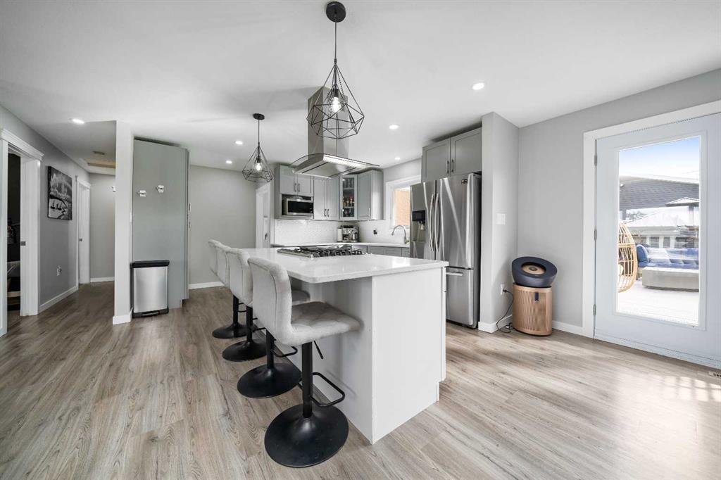 The main floor features a bright open concept layout with a spacious kitchen, living, and dining area—perfect for everyday living and entertaining. You’ll also find 3 bedrooms and a 4-piece bathroom on the main level. The fully developed basement offers a large family room, 2 additional bedrooms (one with a walk-in closet), a laundry room, and another 4-piece bathroom—ideal for relaxing and unwinding. Step outside to your private backyard oasis, complete with a huge deck, low-maintenance artificial grass, and plenty of space to gather with family and friends or enjoy a quiet evening. Don’t miss the oversized heated double garage (with storage loft above)—perfect for parking, storage, or a workshop. This home truly has so much to offer!