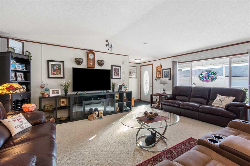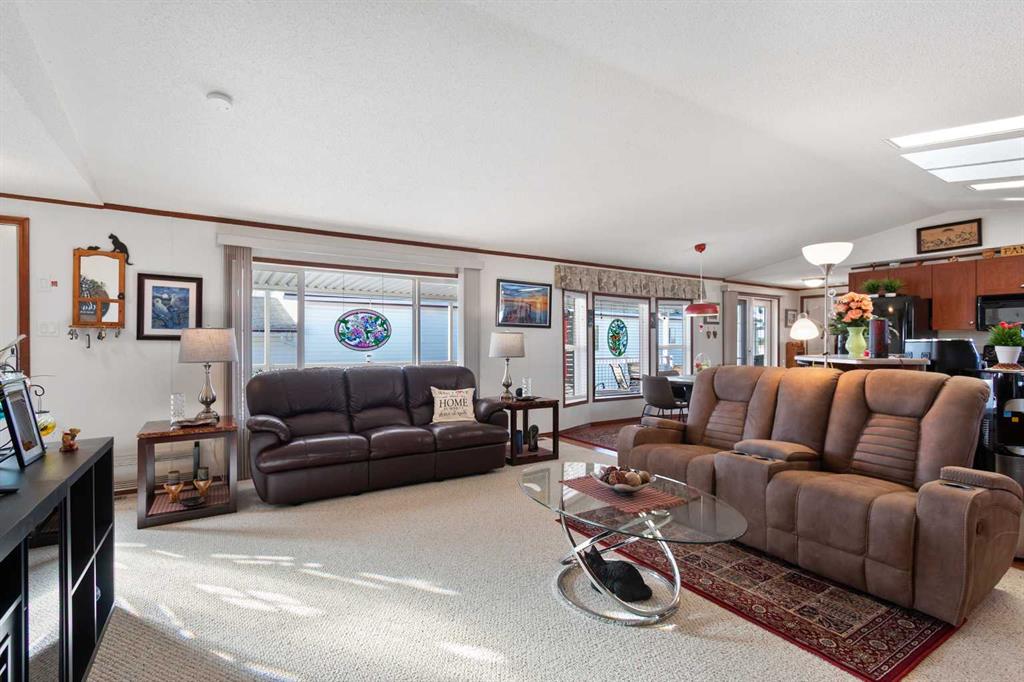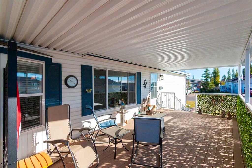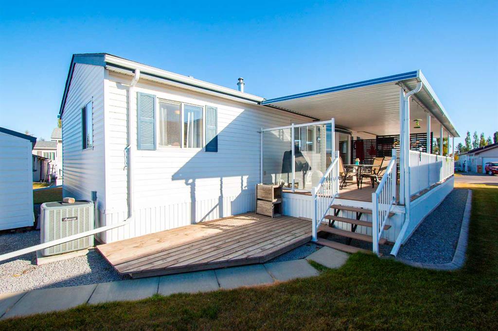 Move-In Ready 4-Bedroom Home in Silver Lynx Mobile Home Park! Welcome to this spacious and well-maintained 1,493 sq. ft. double-wide mobile home, perfectly situated in the desirable Silver Lynx Mobile Home Park. Offering 4 bedrooms, a 4-piece main bathroom, and a 3-piece ensuite off the primary bedroom. The bright, open kitchen features a skylight, pantry, and ample counter space — perfect for cooking and entertaining. The primary suite includes a walk-in closet and a private ensuite, providing a comfortable retreat. Step outside to enjoy the large covered deck with low-maintenance decking and railing, ideal for relaxing or hosting guests. The nicely landscaped yard includes a handy storage shed and west-facing views to enjoy beautiful sunsets. There's also potential to build a garage if desired. This home is move-in ready and offers both comfort and convenience in a well-kept community.