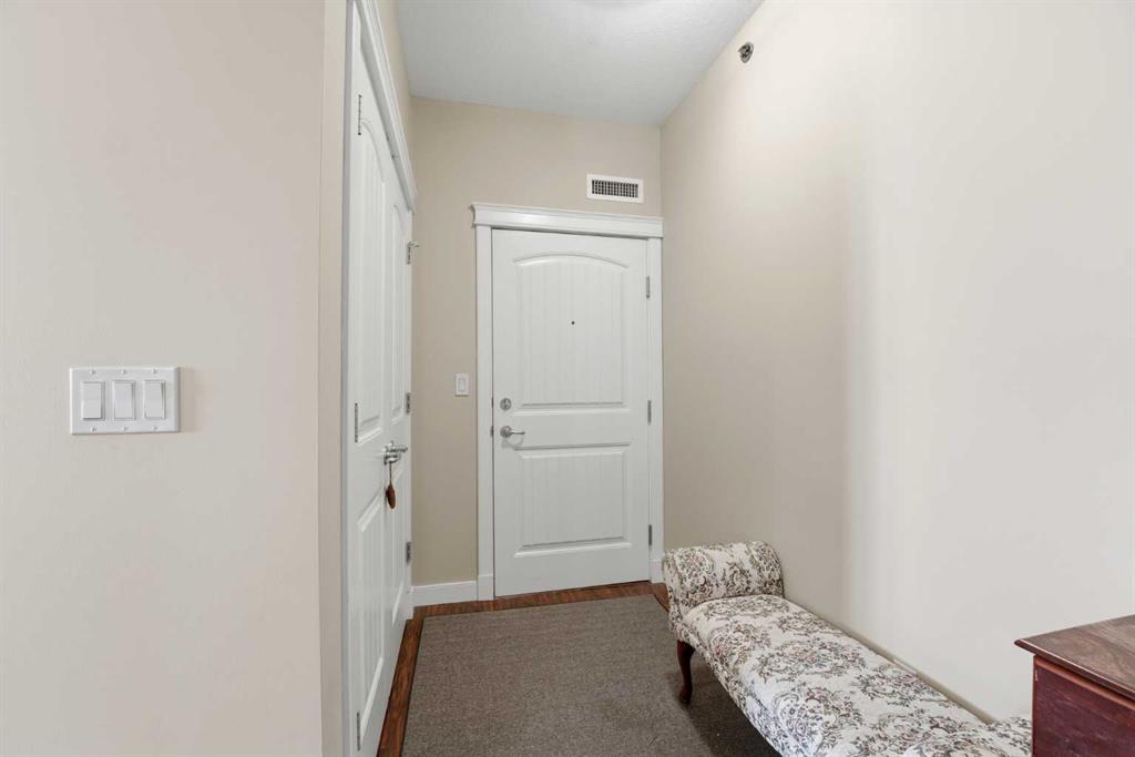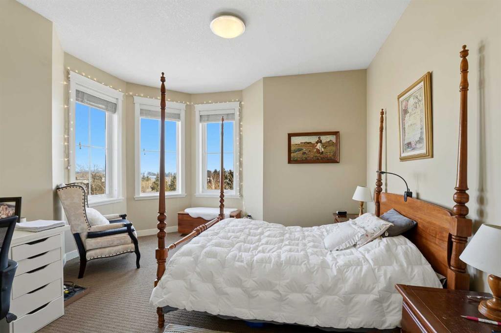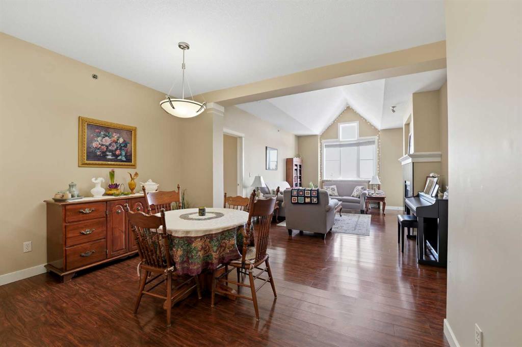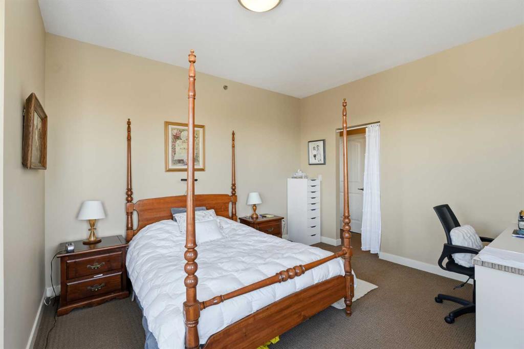 Experience the ultimate lakeside lifestyle in this sprawling 1,155 sq. ft. corner suite at The Watermark, one of the largest and most sought-after floor plans in the building. Perfectly positioned on the quiet northeast side of this upscale complex, this 2-bedroom, 2-bathroom residence offers a sophisticated blend of comfort and convenience in the heart of Sylvan Lake. The bright, open-concept interior is anchored by a gourmet kitchen featuring granite countertops, an eating bar, and newer stainless steel appliances, while the inviting living room boasts a cozy gas fireplace for chilly evenings. The primary retreat includes a spa-like ensuite with a large soaker tub, providing a private sanctuary after a day on the water. Functional perks abound, including in-suite laundry with extra space for a pantry or freezer, one titled heated parking stall, and condo fees that include heat. Located just blocks from the Lakeshore Drive Promenade, you are steps away from summer boating, swimming, and lakeside dining, as well as winter skating and ice fishing. Whether you are seeking a turnkey year-round residence or a high-end vacation getaway, this beautifully maintained condo delivers the very best of downtown living near the lake.