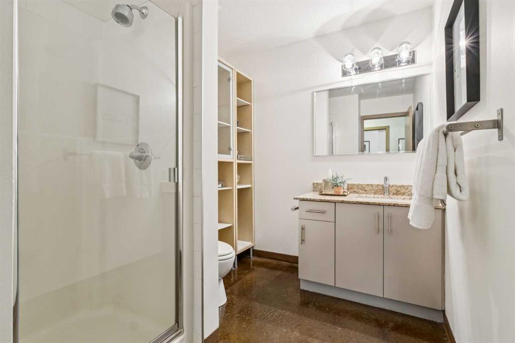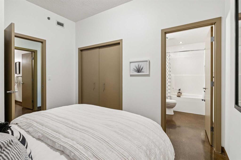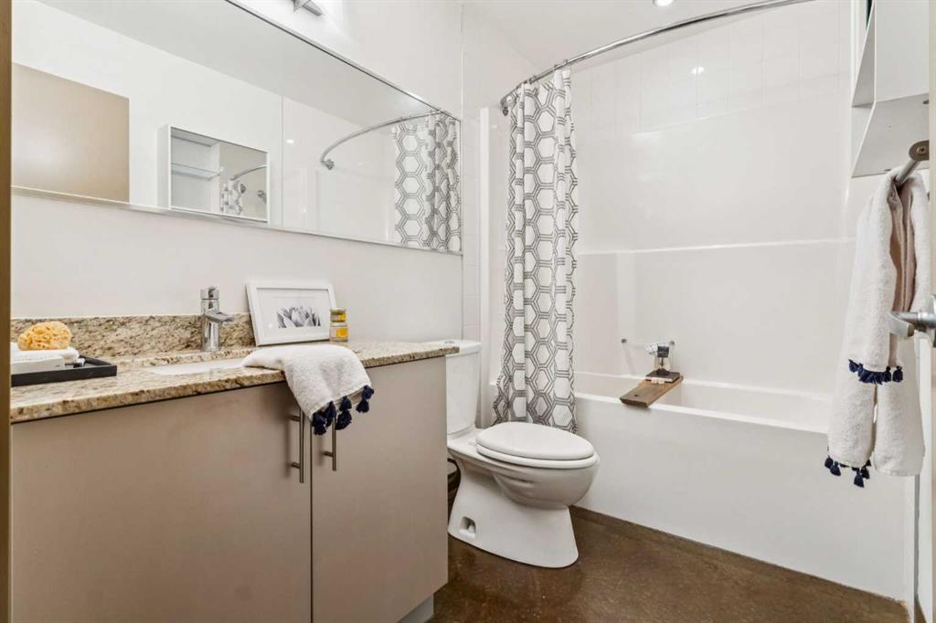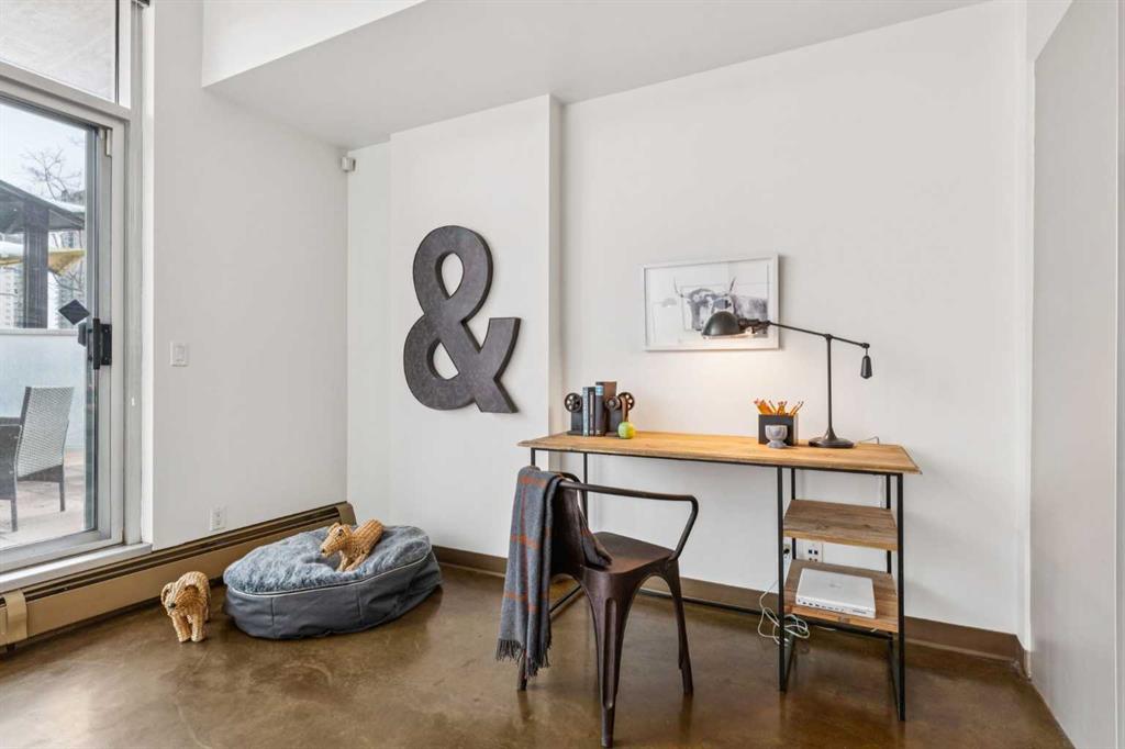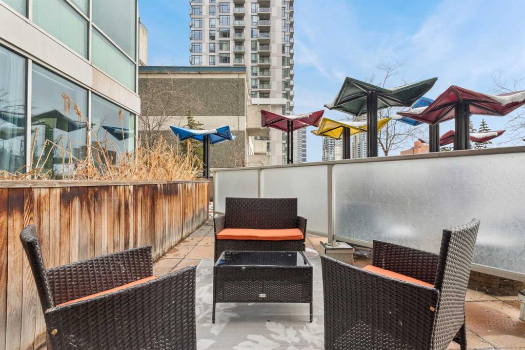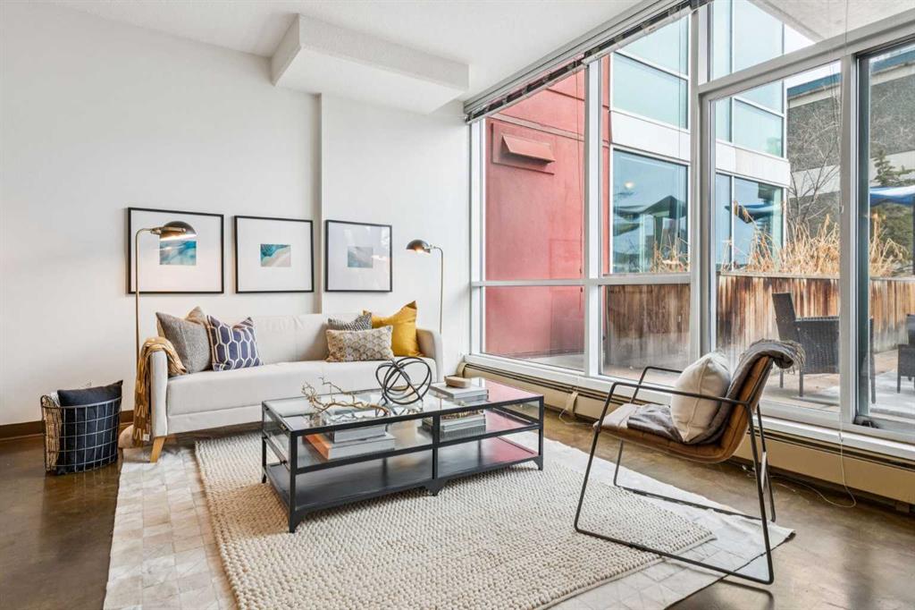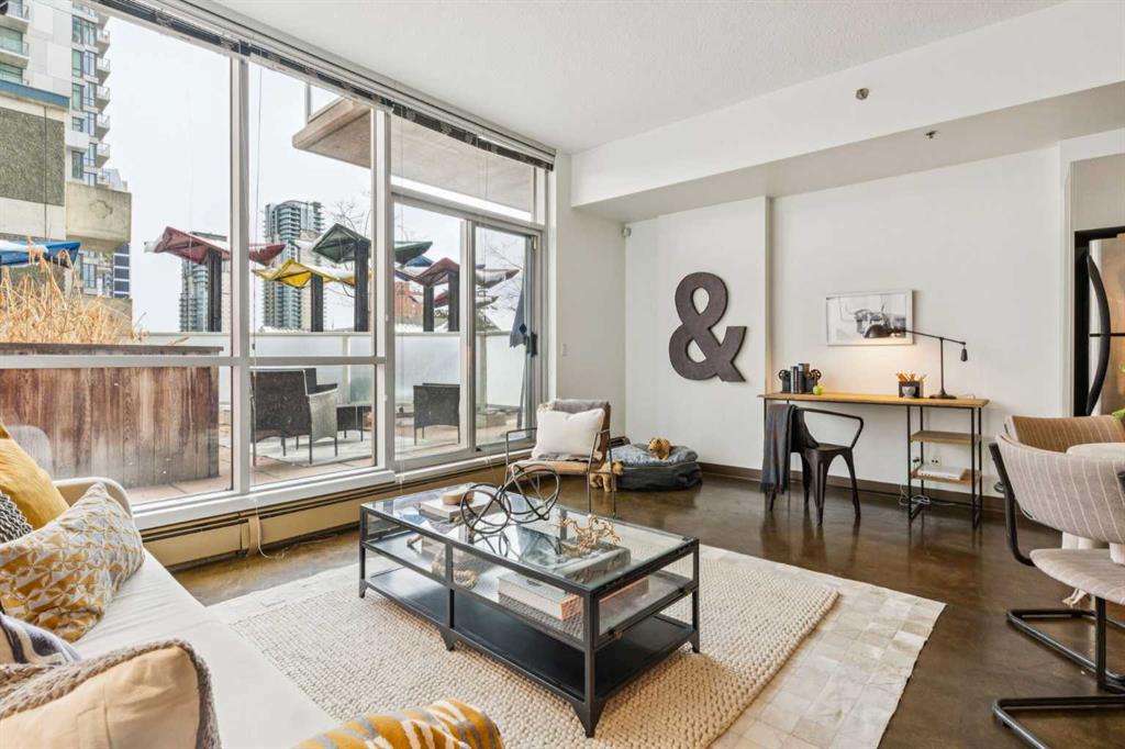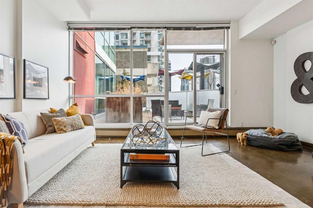 Welcome to one of the most unique and character-rich condos in the Colours building—an Airbnb-friendly, 2-bedroom, 2-bathroom terrace-level home with one of the largest private outdoor spaces the building has to offer. This is urban living with personality, flexibility, and serious lifestyle appeal in the heart of Calgary’s vibrant 1st Street District. Loft-inspired and effortlessly cool, the open-concept interior is grounded by striking polished concrete floors and expansive windows that flood the space with natural light. The modern kitchen is both stylish and functional, featuring stainless steel appliances, granite countertops, and seamless flow into the main living area—perfect for entertaining or everyday living. The true showstopper is the oversized terrace, which functions as your own private outdoor living and dining room. Complete with a beautiful raised planter, this space is ideal for hosting friends, gardening, relaxing in the sun, or unwinding after a long day—an exceptional feature rarely found in condo living. The bright primary bedroom offers sliding glass doors, built-in closet organizers, and a private ensuite with a deep soaker tub. The second bedroom is cleverly designed behind sliding glass doors, making it ideal as a guest room, office, or flex space. You’ll also appreciate the oversized in-suite storage room with ensuite laundry—providing exceptional functionality rarely seen in comparable units. A titled parking stall is included, and with short-term rental potential, this property offers outstanding flexibility for both end-users and investors alike. Just steps from cafés, restaurants, nightlife, and the downtown core, this home isn’t just a place to live—it’s a lifestyle. Whether you’re looking to settle in or generate income, this is your opportunity to own a slice of one of Calgary’s most exciting urban communities.