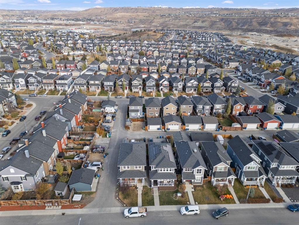 Welcome to 411 River Heights Crescent, a beautifully appointed home where timeless design meets modern sustainability. Thoughtfully designed with high ceilings, expansive windows, and a naturally flowing floor plan, this residence offers a perfect blend of light, space, and comfort. The main level features a bright and open living area anchored by a striking stone-surround gas fireplace and framed by large south-facing windows. The elegant kitchen is a true centerpiece showcasing timeless white cabinetry, a farmhouse sink, quartz countertops, hidden microwave, and a large uninterrupted island ideal for baking, entertaining, or family meals. Hardwood floating shelves add warmth and charm, while a 3rd rack dishwasher and spacious pantry enhance everyday functionality. Upstairs, the primary suite is a tranquil retreat with oversized windows, a large walk-in closet, and a spa-inspired ensuite with large vanity with generous storage, and a relaxing corner tub. Two additional bedrooms and a full bathroom with a large vanity complete the upper level. The fully developed basement extends the living space with a large, versatile recreation area perfect for hobbies, fitness, or family movie nights along with an additional bedroom and tons of storage space. This home stands apart with its professionally installed 7.36 kW Net Zero Solar System, designed for peak efficiency and long-term savings - generating over 40,900 kWh of energy in its first 5 years. Over its lifetime it will offset 151,000 lbs of coal; this system delivers near net-zero electricity costs averaging under $100/month for a family of six. Environmentally, it’s equivalent to planting 3,600+ trees or removing a vehicle from the road each year. Outside, the beautifully landscaped yard features raised garden beds, established perennials, and both north- and south-facing outdoor living spaces, a sunny front veranda and a private back deck off the dining room that has double sliding doors to extend the space naturally for summer gatherings. It has a great size yard with a playhouse for the kids to enjoy. Located in a quiet, low-traffic section of River Heights Crescent, this home offers quick access to parks, playgrounds, schools, and walking paths, with easy routes to downtown Cochrane and Calgary. It’s a rare opportunity to enjoy timeless craftsmanship, a smart layout, and modern energy independence all in one remarkable home.