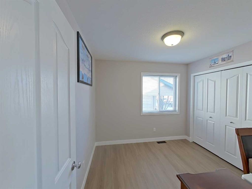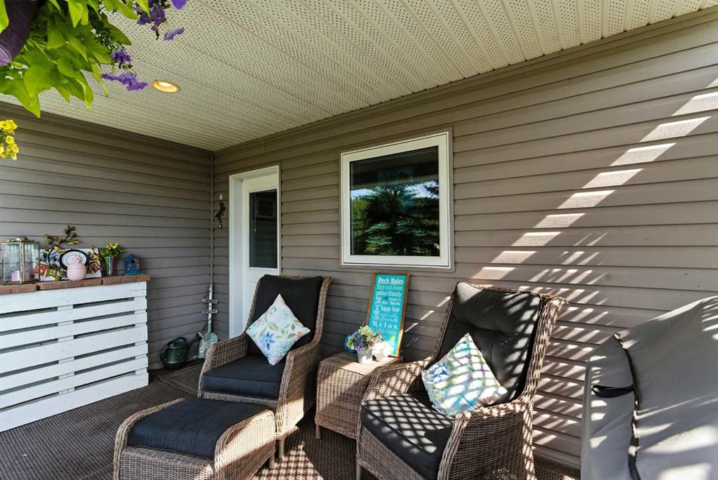 *Original Owner* *10/10 Curb Appeal!! Enter through the Archway, past the Apple trees, to the Covered Front Deck and into this Fully Finished Bi-Level with 3 Full bathrooms and 4 Bedrooms(total). This very Bright & Open plan welcomes you with lofty Vaulted Ceilings. The main floor has 2 bedrooms, 2 full bathrooms and a main-floor laundry. Upon entering you will discover all NEW VINYL PLANK FLOORING & BASEBOARDS(December 2025)on the main level, a good-sized living and dining room combo plus a spacious kitchen with Hickory cabinetry, a large island and a Walk-in Pantry! The fully finished basement offers 2 more bedrooms, a 3rd full bathroom, an enormous rumpus room and a big utility room with plenty of storage. You can choose Sun or Shade because this home has a FRONT DECK and a REAR DECK with gas barbecue hook up. The Covered rear deck offers plenty of storage underneath and is overlooking the park-like South-west facing rear yard. The Sunny, nicely treed yard can offer some shade also and you will be sure spend plenty of time on the big, lower patio. You could make this a great place for entertaining friends & family or simply relaxing. This family home is nicely located in a great community with ponds and paved walking trails all just steps away. There are no neighbours behind and yes there is a rear alley if you need off street parking..
