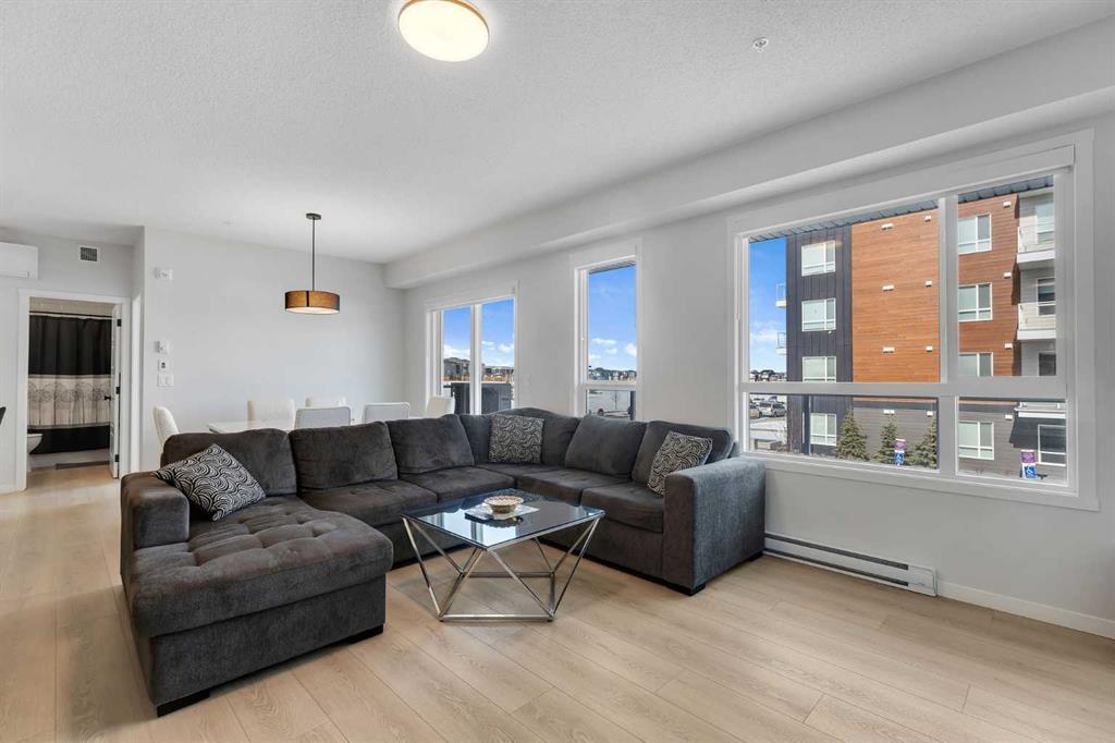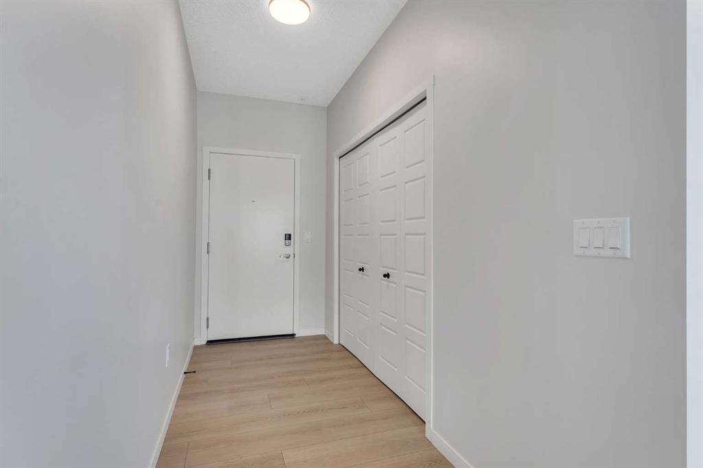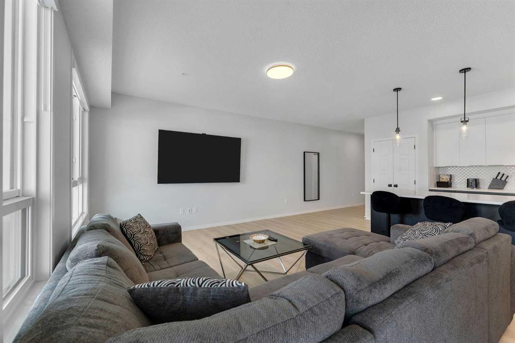 Stylish Corner Unit with Expansive Balcony and Premium Upgrades (L4 Floorplan). Welcome to this spacious 1,092 sq ft corner unit, offering a bright and modern layout with 2 bedrooms and 2 full bathrooms. With 9-foot ceilings and large windows throughout, the home feels open, airy, and filled with natural light—especially in the west-facing bedrooms, perfect for enjoying warm afternoon sun. The gourmet kitchen upgrade is a standout feature, showcasing an extended granite island, elegant two-tone cabinetry, chimney-style hood fan, stainless steel appliances, and a built-in microwave. This well-designed space is ideal for both everyday cooking and entertaining guests. Durable luxury vinyl tile flooring with sound-reducing membrane adds both comfort and style to the living areas. The primary bedroom offers a functional retreat with a large walk-in closet and a private ensuite bathroom. Additional highlights include air conditioning, electric baseboard heating, triple-pane windows for energy efficiency, and a large in-suite storage room with stacked washer and dryer. Step outside onto the impressive 23-foot balcony, complete with a BBQ gas outlet, providing the perfect space for outdoor dining and relaxing. The home also comes with a titled underground parking stall, adding convenience and security year-round. A rare combination of space, upgrades, and a prime corner layout, this home is perfect for comfortable modern living. Close to shopping, and all amenities!
