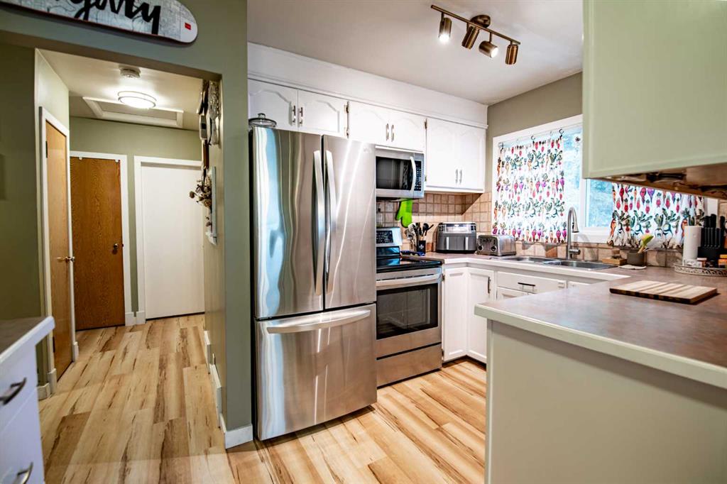 Prime location in Grandview — close to parks, schools, and shopping — this updated 3-bedroom, 2-bathroom bungalow sits on a large 50x123 (6152sq/ft) lot with plenty of yard space and parking. The home has seen a long list of improvements, including a brand-new full bathroom in the basement (2025), refreshed lighting and appliances (2019), and new main-floor flooring (2023). Outside, the oversized 28x26 heated garage (built in 2021) features 12-ft vaulted ceilings, full insulation, and 240V power, making it ideal for tools, workshop use, and extra storage. Inside you’ll find a functional main-floor layout with a bright living room (Picture Window Replaced 2025), spacious kitchen and dining area, two bedrooms, and a full bath. The finished basement adds a family room, additional bedroom, and the new second bathroom. Large front and backyards, mature trees, and ample off-street parking complete this solid property in one of Red Deer’s most established neighborhoods.