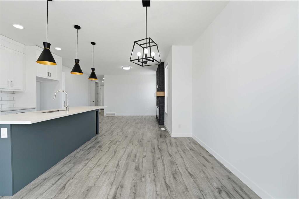 Be the first to call this modern bungalow home! Nestled on a premium corner lot in the serene and sought-after community of Bella Vista. Never lived in and built in 2022, this beautifully crafted home offers over 1,422 sq ft of thoughtfully designed living space, blending modern elegance with everyday functionality. Step inside to discover a bright, open-concept layout highlighted by soaring ceilings, oversized doors, and an abundance of natural light. The inviting living area is anchored by a striking fireplace feature wall, perfect for cozy evenings or entertaining guests. The modern kitchen is a true showpiece, complete with a large central island, ample full-height cabinetry, and a seamless flow into the dining and living spaces. Summer just got sweeter with a large deck off the dining room. The spacious primary suite offers a peaceful retreat, featuring a generous walk-in closet and a sleek ensuite with double vanity, and a floor to ceiling tile shower. A second well-sized bedroom, 4 piece bathroom, and convenient main floor laundry round out the main level. The unfinished basement provides endless potential—whether you envision a home gym, or expansive family room, the space is yours to design. A double attached garage adds both convenience and value. Builder is offering a $4,500 appliance credit, allowing you to customize your new home to your taste. With immediate possession available, this is a rare opportunity to own a pristine, move-in-ready bungalow in a welcoming community.