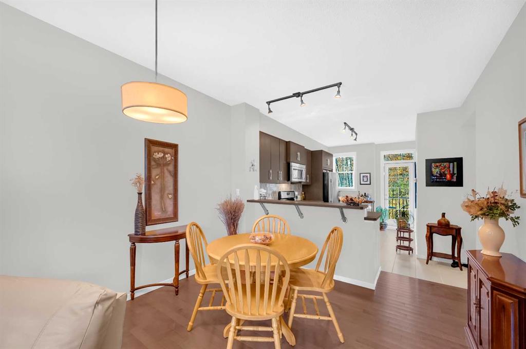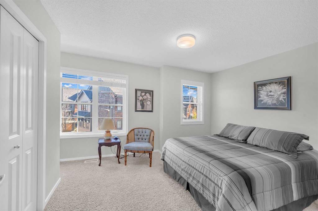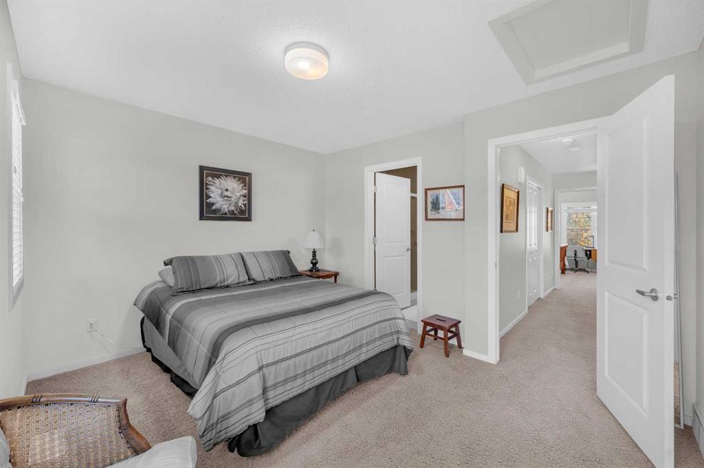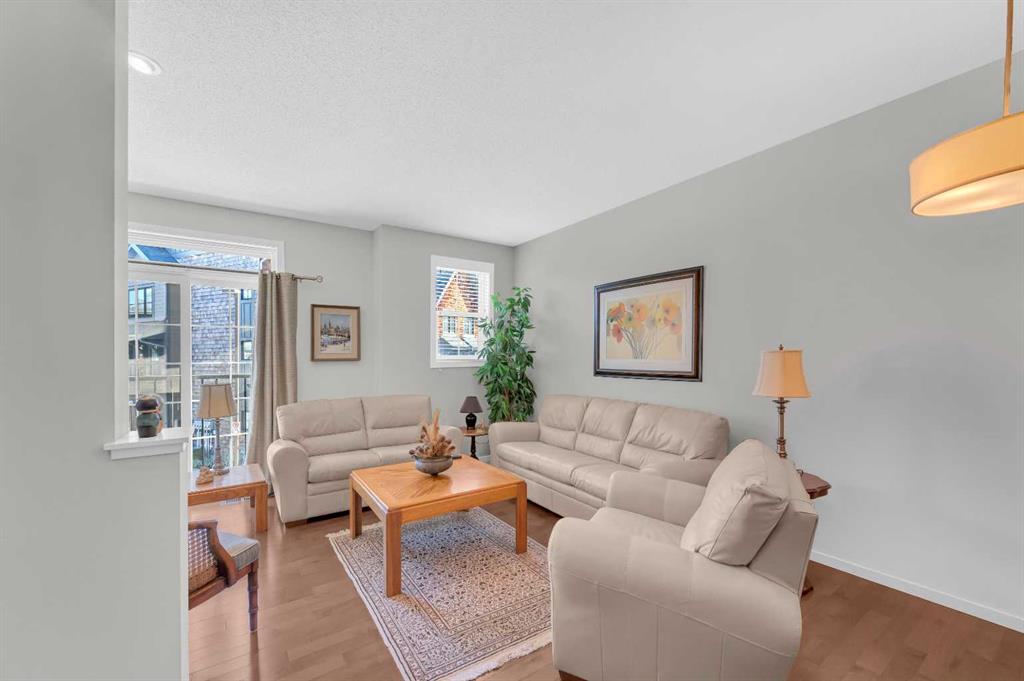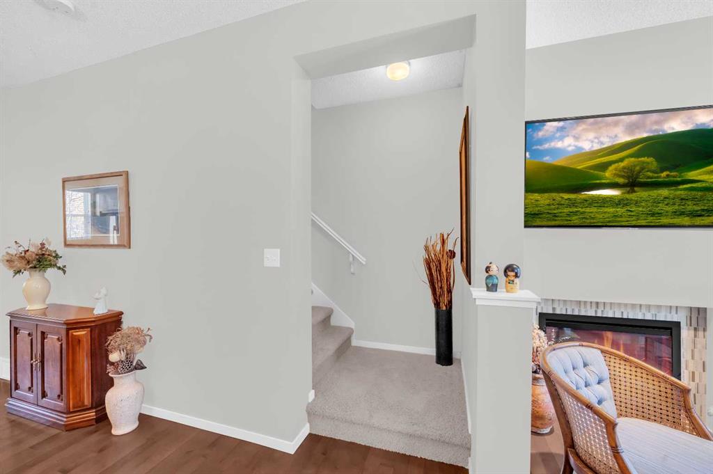 Welcome to this exquisite east-facing townhouse in Aspen Woods, one of the most desirable communities in Calgary. This property boasts extensive upgrades and one of the best features includes a Tandem double attached car garage, perfect for Alberta's cold, snowy winters, it will keep your car nice and warm. Its charming curb appeal is sure to captivate at first glance. Upon entering, you will be greeted by a bright, high ceilings and open layout concept. The well-designed living room seamlessly connects to the dining area and a stunning kitchen, which is equipped with high-end stainless steel appliances and laminated countertops. The second floor also includes a fire-place in the living room, convenient 2-piece bathroom, a decent-sized deck/balcony that faces the west, ensuring ample sunlight throughout the day and providing an ideal setting for evening BBQ gatherings with friends and family. The third floor comprises of TWO PRIMARY bedrooms with closets and ensuite 4-piece bathroom and an ensuite 3-piece bathroom. One of the most convenient features of the third floor is the laundry area, complete with a washer and dryer, eliminating the need to run up and down the stairs for laundry tasks. Notable upgrades include 9ft ceilings, hardwood flooring, tiles, stainless steel appliances, high-quality carpets, and an upgraded washer and dryer. The location of this townhouse is truly exceptional, being in close proximity to the mountains, a major highway Stoney Trail. It is also conveniently near a pond, children's parks, schools, bus stops, shopping complex, and various restaurants, all just a few minutes away. Do not hesitate; this townhouse is ready for you to move in.
