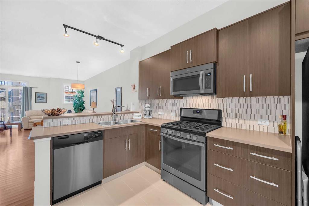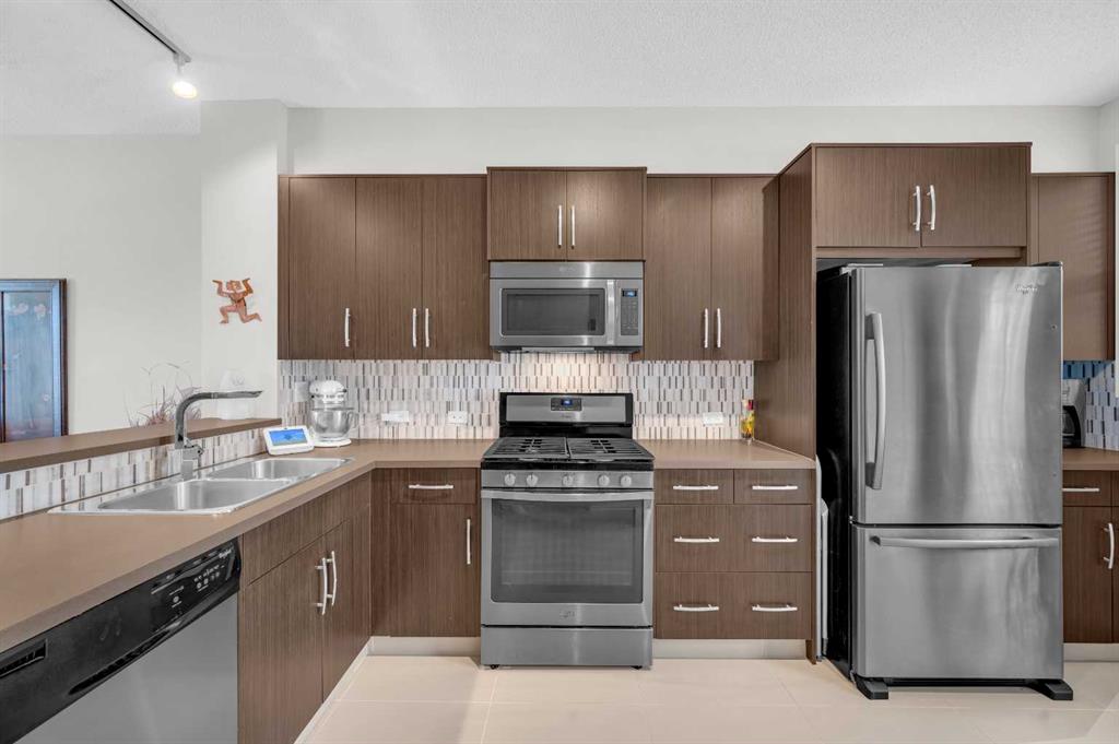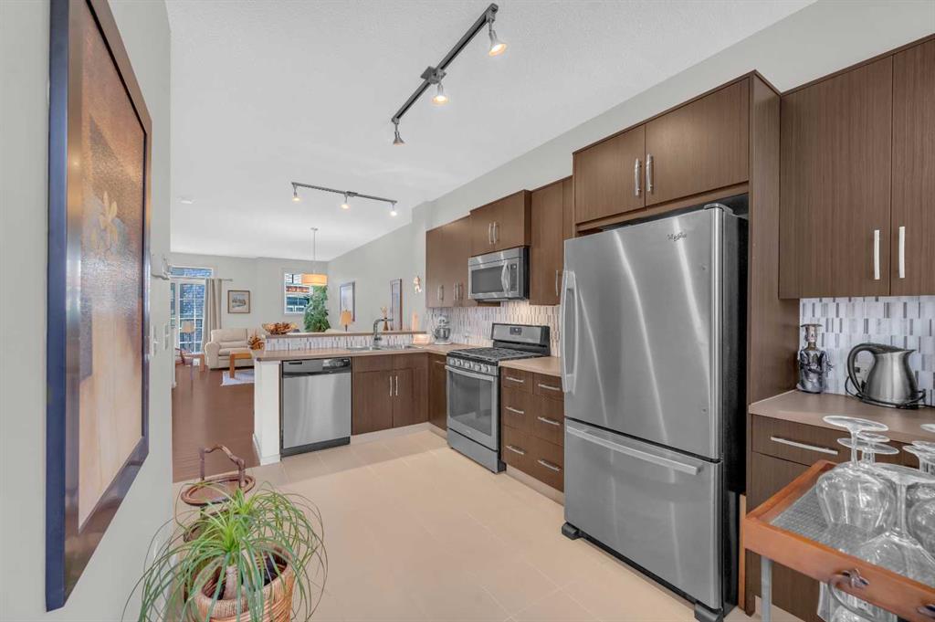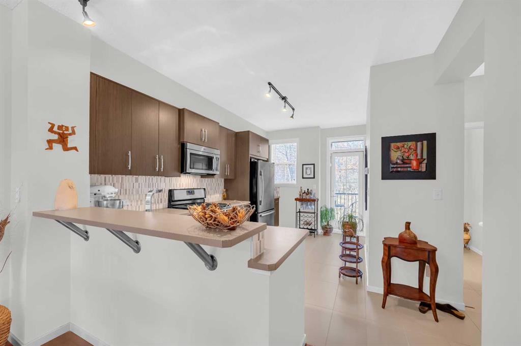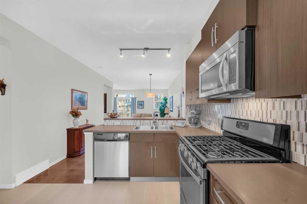 Welcome to this exquisite east-facing townhouse in Aspen Woods, one of the most desirable communities in Calgary. This property boasts extensive upgrades and one of the best features includes a Tandem double attached car garage, perfect for Alberta's cold, snowy winters, it will keep your car nice and warm. Its charming curb appeal is sure to captivate at first glance. Upon entering, you will be greeted by a bright, high ceilings and open layout concept. The well-designed living room seamlessly connects to the dining area and a stunning kitchen, which is equipped with high-end stainless steel appliances and laminated countertops. The second floor also includes a fire-place in the living room, convenient 2-piece bathroom, a decent-sized deck/balcony that faces the west, ensuring ample sunlight throughout the day and providing an ideal setting for evening BBQ gatherings with friends and family. The third floor comprises of TWO PRIMARY bedrooms with closets and ensuite 4-piece bathroom and an ensuite 3-piece bathroom. One of the most convenient features of the third floor is the laundry area, complete with a washer and dryer, eliminating the need to run up and down the stairs for laundry tasks. Notable upgrades include 9ft ceilings, hardwood flooring, tiles, stainless steel appliances, high-quality carpets, and an upgraded washer and dryer. The location of this townhouse is truly exceptional, being in close proximity to the mountains, a major highway Stoney Trail. It is also conveniently near a pond, children's parks, schools, bus stops, shopping complex, and various restaurants, all just a few minutes away. Do not hesitate; this townhouse is ready for you to move in.