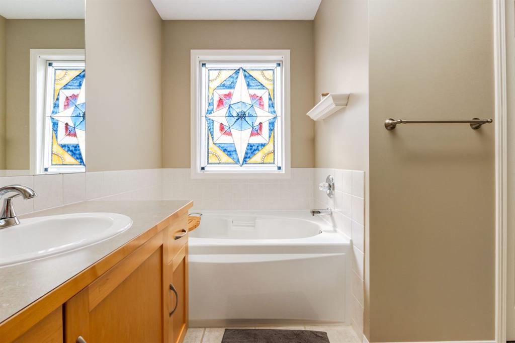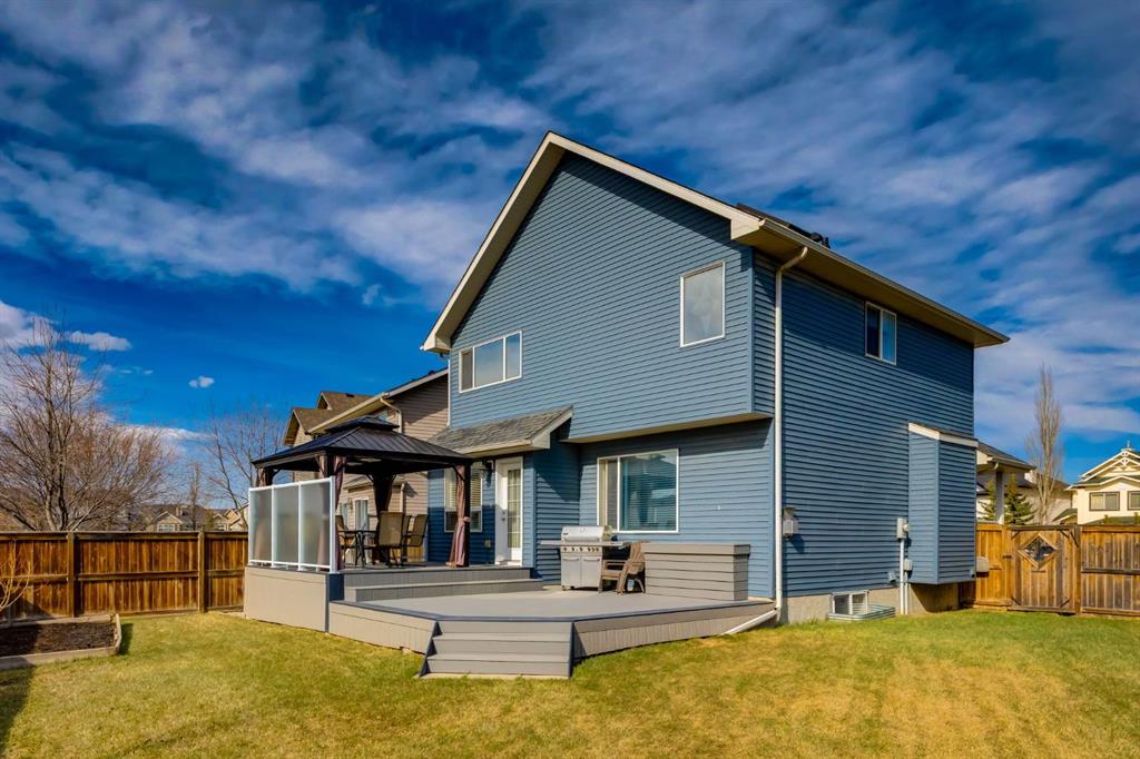 Located on a quiet cul-du-sac within the master-planned community of Bayview, this incredible family home blends timeless updates and turnkey living in a community known for its flawless blend of urban living and nature. This beautiful 4-bedroom home features over 2,500sqft of living space, a huge pie-lot, a west facing backyard oasis, has been tastefully updated with a stunning kitchen and is mere steps from the relaxing serenity of nature, the canal system, and walking paths. This location showcases a safe cul-du-sac, and provides worry-free, family friendly living with an amazing community feel. As you enter, you are greeted by a spacious front entryway with soaring ceilings and room for bench seating. The entryway leads to your open concept main living space, which boasts a newly renovated kitchen with timeless white shaker cabinetry, stunning quartz counters, pendant lighting, a corner pantry, subway tile, a coffee station, and an enormous kitchen island with accent colour. This kitchen leaves nothing to be desired and has all the storage and prep space required for your culinary endeavours. The main living space is flooded with natural light through multiple, large west facing windows that bring warmth to the home. The living room overlooks your enormous west facing back yard, and features a cozy fireplace with mantle, which creates the perfect place to stay warm and relax on cold winter days. Step outside from your kitchen onto your quality, sprawling two-tier composite deck that features privacy glass, a modern gazebo with lighting, and plenty of space to dine, BBQ and relax. The west yard features tons of space for family to play, is drenched in sun throughout the day, has garden beds, a shed, and provides a unique place to watch Canada Day fireworks from the privacy of your own deck. The main floor boasts new vinyl flooring, a spacious laundry room/mud room off the garage and is completed with an updated powder room. Upstairs boasts a huge bonus room with high ceilings and provides the perfect place to read a book, relax, or entertain friends. The expansive primary bedroom features tons of space for king-sized furniture and contains a spa-like ensuite with a massive skylight, a large soaker tub, stand- up shower and two walk-in-closets. Upstairs is completed with two additional large bedrooms, and a wonderful 4-piece bathroom. Downstairs contains an amazing media space with projector screen and hook-ups, a media tower with surround sound speakers, and plenty of room for seating. The expansive basement bedroom includes a large office nook, which is perfect for working from home or for a studious family member. The basement is completed with a large storage room, and a stunning 3-piece bathroom with warm cork flooring, an updated vanity and a large stand-up shower. This incredible family home has been meticulously maintained throughout the years and showcases stunning updates, new front steps, composite decking, and more. Don’t miss out on this opportunity.