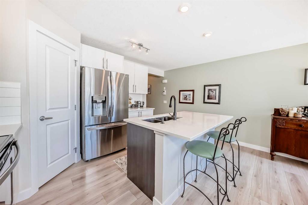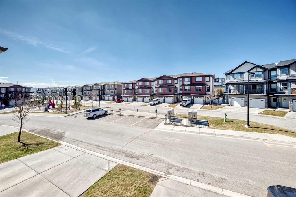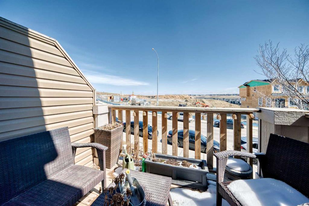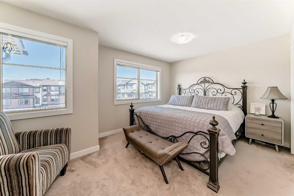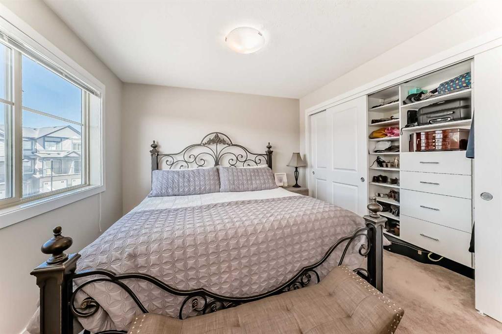 This stunning 2-bedroom, 2.5-bathroom townhome at 434 Sage Hill Grove NW truly shows better than a showhome. Impeccably maintained and fully upgraded, it offers 12-foot living room ceilings and a peaceful natural backdrop that creates a sense of light, space, and serenity. The kitchen features stainless steel appliances, while the upper level includes two spacious ensuite bedrooms with custom California closets, an ideal setup for professionals, guests, or shared living. You’ll also appreciate the convenience of upper-floor laundry and generous storage throughout. The fully finished lower level adds a bright third bedroom or Flex Room, perfect for a home office, guest suite, or fitness space. Comfort and style come together with central air conditioning, modern railings and doors, and a clean neutral palette that feels fresh and move-in ready. An attached garage and private driveway provide parking for two vehicles, with ample visitor parking right outside the door for friends and family. Located just minutes from Sage Hill Crossing, schools, grocery stores, coffee shops, and major routes, this home combines everyday convenience with a serene setting.