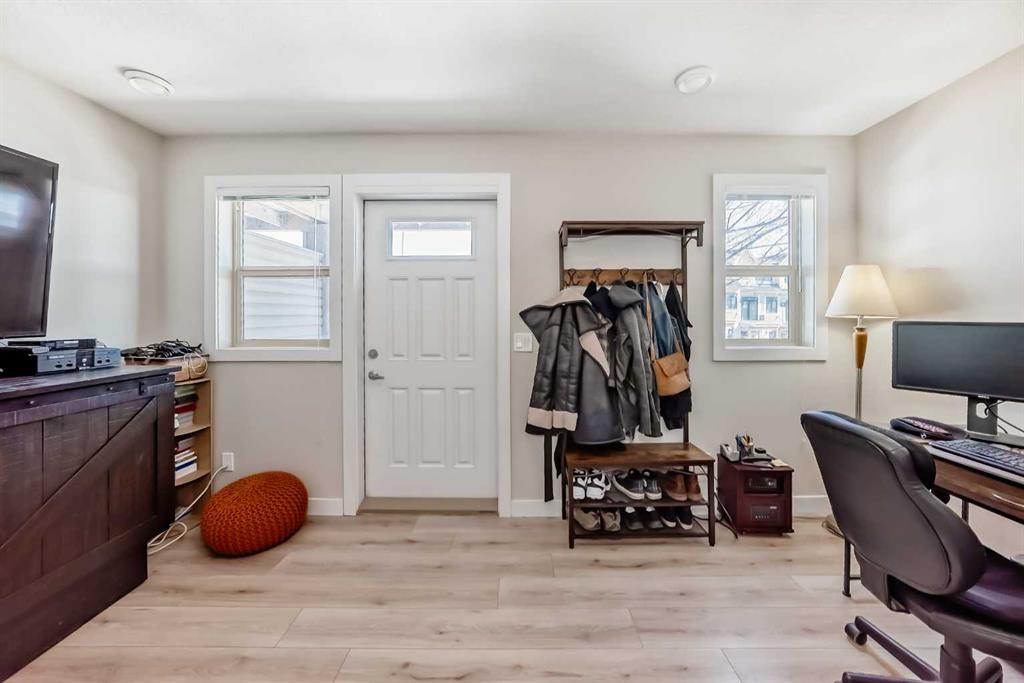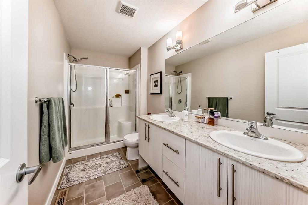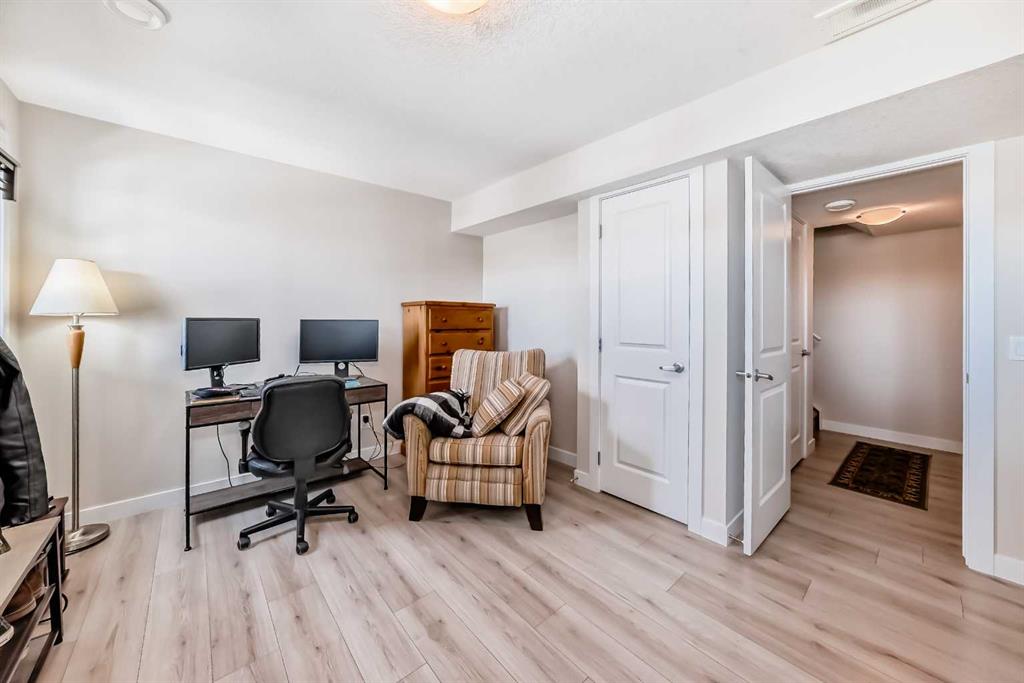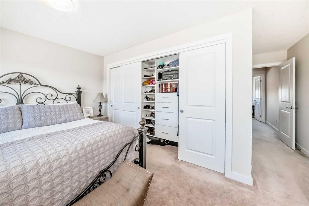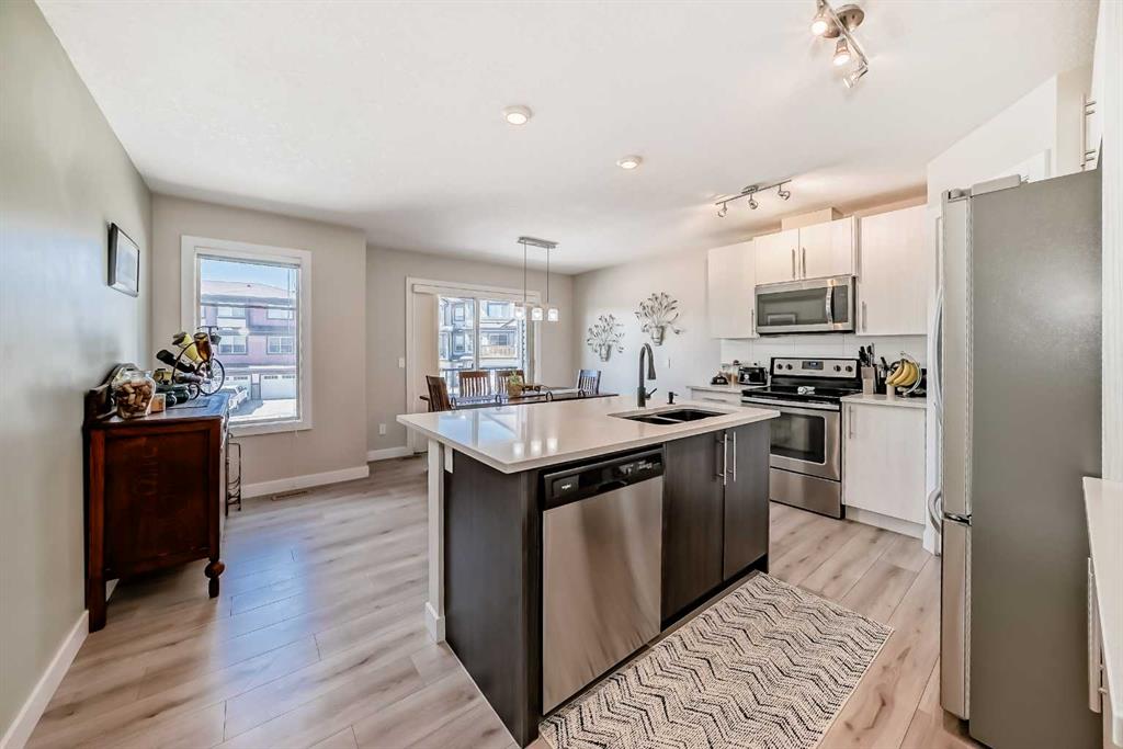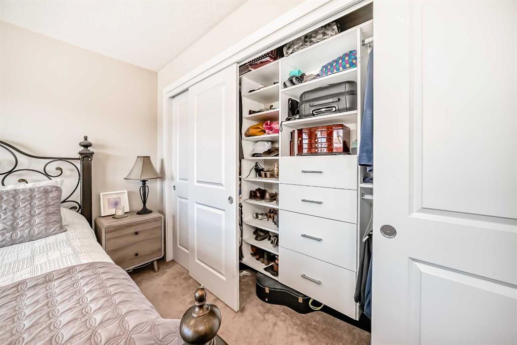 This stunning 2-bedroom, 2.5-bathroom townhome at 434 Sage Hill Grove NW truly shows better than a showhome. Impeccably maintained and fully upgraded, it offers 12-foot living room ceilings and a peaceful natural backdrop that creates a sense of light, space, and serenity. The kitchen features stainless steel appliances, while the upper level includes two spacious ensuite bedrooms with custom California closets, an ideal setup for professionals, guests, or shared living. You’ll also appreciate the convenience of upper-floor laundry and generous storage throughout. The fully finished lower level adds a bright third bedroom or Flex Room, perfect for a home office, guest suite, or fitness space. Comfort and style come together with central air conditioning, modern railings and doors, and a clean neutral palette that feels fresh and move-in ready. An attached garage and private driveway provide parking for two vehicles, with ample visitor parking right outside the door for friends and family. Located just minutes from Sage Hill Crossing, schools, grocery stores, coffee shops, and major routes, this home combines everyday convenience with a serene setting.