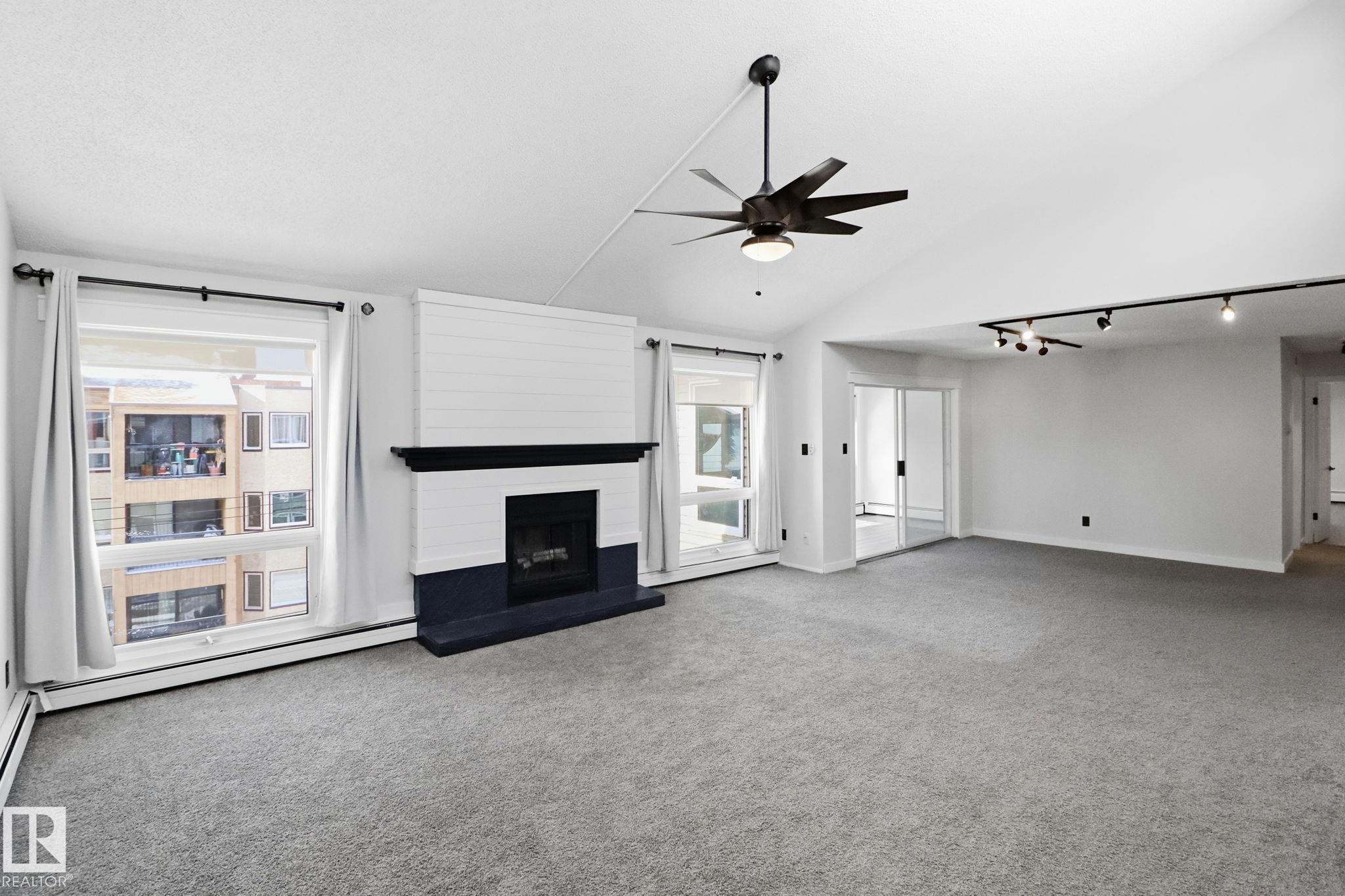Unique architectural design that offers plenty of growing space, all in the heart of Oliver. Vaulted ceiling and abundance of windows bathing the unit in sunlight throughout the day. 3 large bedrooms, plenty of storage in this top-floor unit with over 1722 ft2 of living space. Inviting foyer has convenient built-in storage bench. French doors open to adjacent bedroom, den or office. Huge livingroom anchored by a Decorative fireplace, side-opening windows. Enclosed sunroom, surrounded by windows, ideal for pets, plants or soaking in the sun. Plenty of room for a large dining room table. White galley kitchen, granite countertop, S/S appliances and undermount sink. Laundry room has extra shelving and adjacent storage room. Porcelain tile flooring in main bath, long vanity sink unmounted in granite top. Bright master bedroom has 3 large windows, room enough for a King-sized bed, large walk-in closet, built-in shelving, relaxing ensuite bath, soaker tub set in granite surround. Unique design that must be seen.