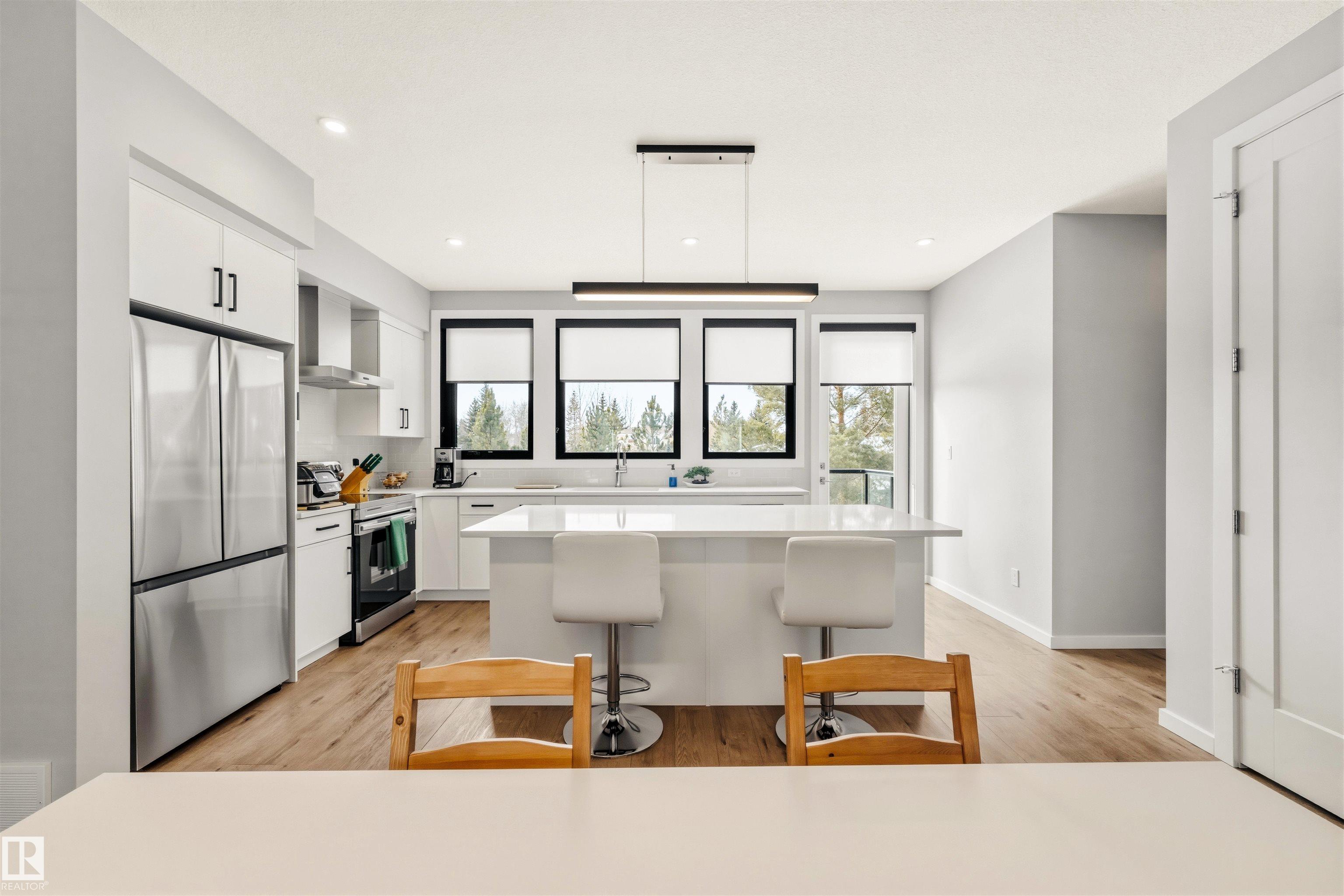 Welcome to Pivot, Avertons award winning townhouse complex. This modern 3-bedroom, 1,821 sq ft unit has it all: a spacious kitchen with a granite island, a dining room, a large living room, plenty of natural light from floor-to-ceiling windows, and vinyl flooring throughout the main floor. On the upper floor, you will find the primary suite with a 3-piece ensuite, second and third bedrooms, laundry, and stairs to the large rooftop patio, perfect for watching sunsets on warm summer nights and air conditioning to cool you off. Now, the big surprise: this unit has a 4-car garage with endless storage options, or even a workout area.