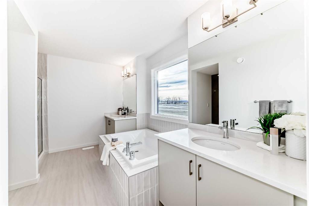 This is a move-up home that knows EXACTLY what it’s doing… A FULL BEDROOM AND FULL BATH ON THE MAIN FLOOR set this home apart—ideal for guests, aging parents, or anyone who benefits from a private space without having to use the stairs. It’s a layout choice that adds real-world flexibility without interrupting the effortless flow of everyday life. The heart of the home is the kitchen, where thoughtful design meets purposeful details. A 36” GAS COOKTOP anchors a generous island, paired with a CHIMNEY-STYLE HOOD FAN AND BUILT-IN WALL OVEN AND MICROWAVE to keep countertops clean and uncluttered. Cabinets reach to the ceiling, the layout connects seamlessly to dining and living areas, and an electric fireplace feature wall gives the great room a refined focal point. Upstairs, a BRIGHT BONUS ROOM adds space for homework, movie nights, or quiet retreat. The primary bedroom offers a polished FIVE-PIECE ENSUITE, and two additional bedrooms and a well-appointed LAUNDRY ROOM—WITH BUILT-IN CABINETRY, COUNTERTOP, AND SINK—add function where it matters most for daily family life. Set in Sirocco at Pine Creek, this address pairs quiet, elevated living with easy access to everyday essentials and recreation. WINDING PATHWAYS AND PARKS thread through the neighbourhood, and the nearby Sirocco Golf Club and surrounding green spaces give every day a getaway feel—yet schools, shopping, and dining in Silverado, Walden, Legacy and Shawnessy remain just minutes away. Outside, the WIDER FRONTAGE AND GENEROUS LOT footprint offer breathing room that’s rare in new builds, while the double attached garage, side entry to the basement, TANKLESS HOT WATER and thoughtful upgrades throughout make this a home that delivers both polish and practicality. Here, refined living and smart design come together in a community that feels like home from day one. If you’re considering a move-up home, this one belongs on your shortlist. It’s an easy one to say yes to once you’ve seen it in person. • PLEASE NOTE: Photos are of a DIFFERENT Spec Home of the same model – fit and finish may differ. Interior selections and floorplans shown in photos.
