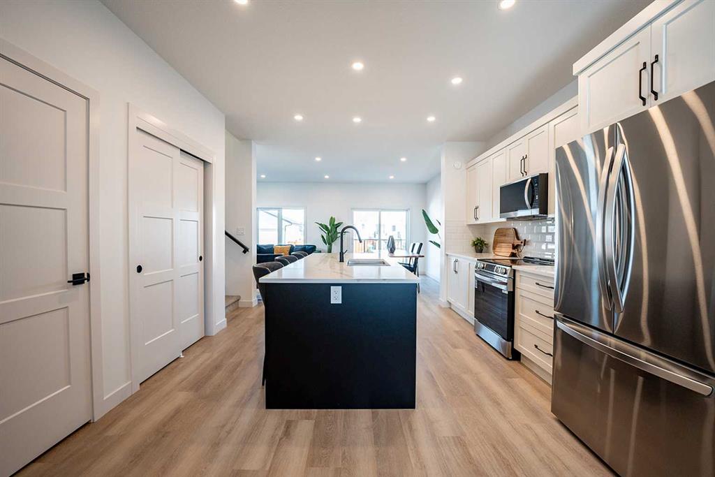 Welcome to this beautifully finished 3-bedroom, 2.5-bathroom home in the highly sought-after community of Evergreen. Built by Abbey Platinum Master Builder, this modern two-storey home showcases high-end craftsmanship with a thoughtfully designed open-concept layout. You’ll love the quartz countertops, sleek modern cabinetry, and brand new LG appliances, including washer and dryer. The upper level offers three spacious bedrooms, convenient upper-floor laundry, and a stunning primary suite featuring a walk-in closet and private ensuite. This home also includes an attached garage with a front driveway for extra parking, a backyard with a deck and alley access, as well as central vacuum and water softener rough-ins for future comfort and convenience. Evergreen is one of Red Deer’s most desirable communities—offering over 4 km of scenic walking paths, parks, and a tranquil water feature. With its family-friendly atmosphere and close proximity to schools, shopping, and amenities, it’s the perfect balance of nature and convenience. These homes boast modern open-concept living and contemporary finishes designed to suit today’s lifestyle. Enjoy peace of mind with Abbey Platinum’s comprehensive one-year builder warranty, along with ten-year coverage on select components through the Alberta New Home Warranty Program. This is modern living at its finest—move in and enjoy!
